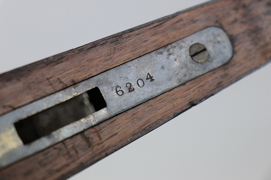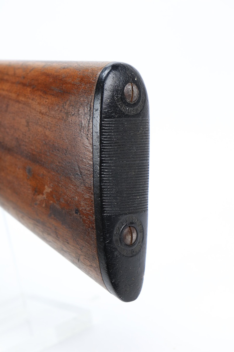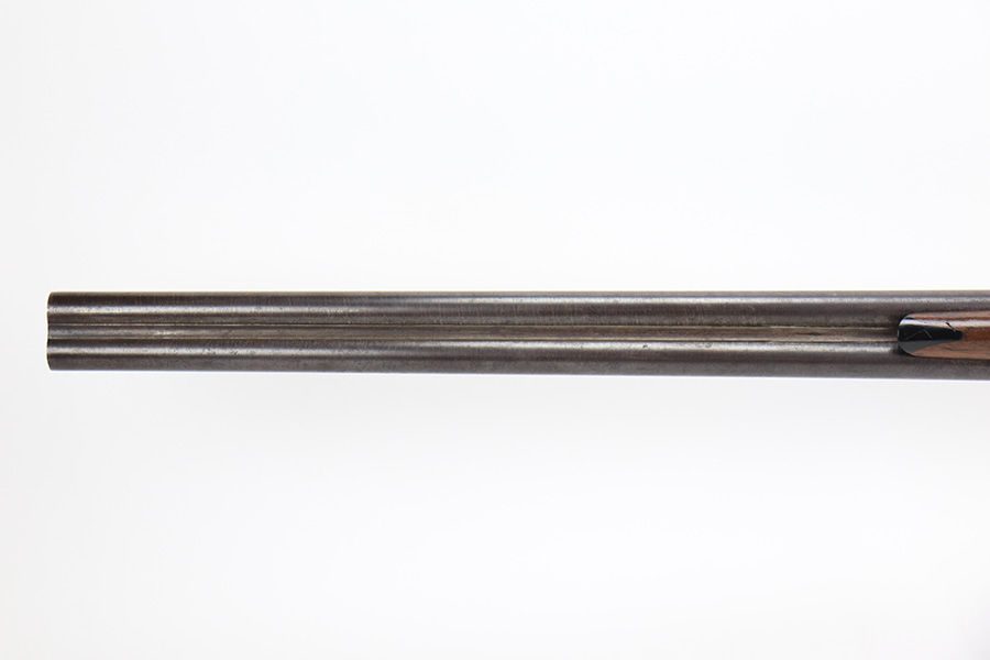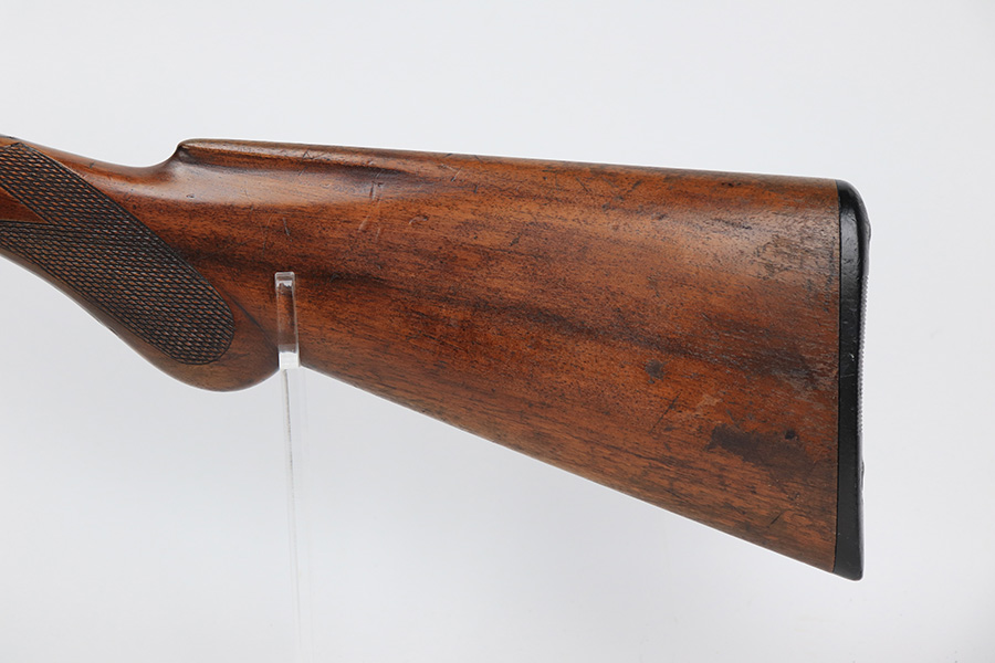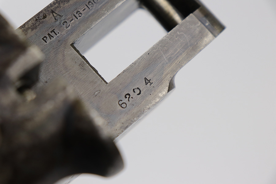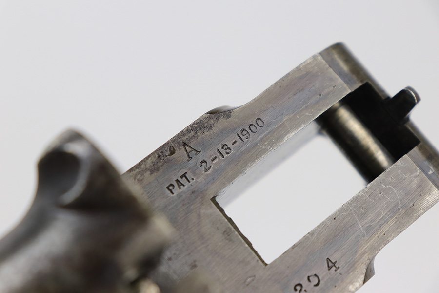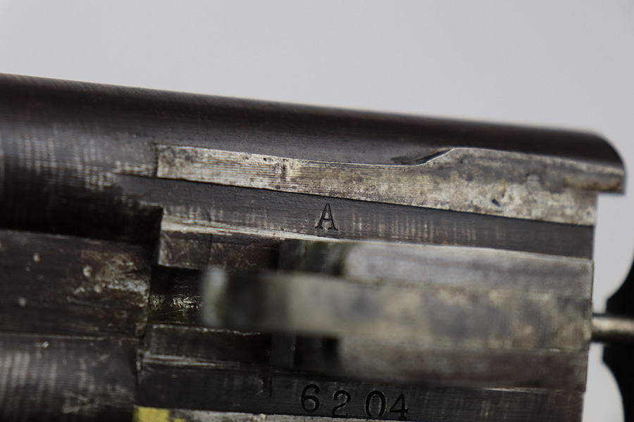6/7/23 – This is a nice example of a Baltimore Arms Model 1904 Side-by-Side Shotgun, manufactured in the early 1900’s and chambered in 12 GA. All matching. The barrels are Damascus steel, and the receiver is case-hardened. There is thinning on the underside of the receiver and on the trigger guard, but there isn’t a ton of actual finish loss overall. However, there is noticeable brown “attic” patina and spotty oxidation throughout. The Damascus patterning on the barrels is still intact, and the case colors on the receiver are mostly visible under the spotty oxidation. The wood furniture is nice overall, but there are minor scratches throughout and a few small notches on the left side of the stock. Black bakelite butt pad is intact. Minty, shiny bores. Fully functional.