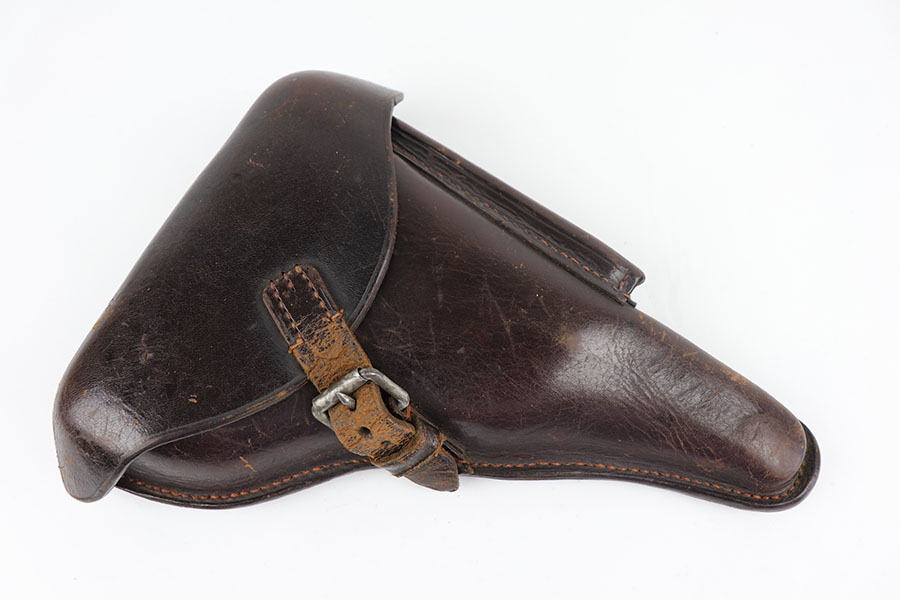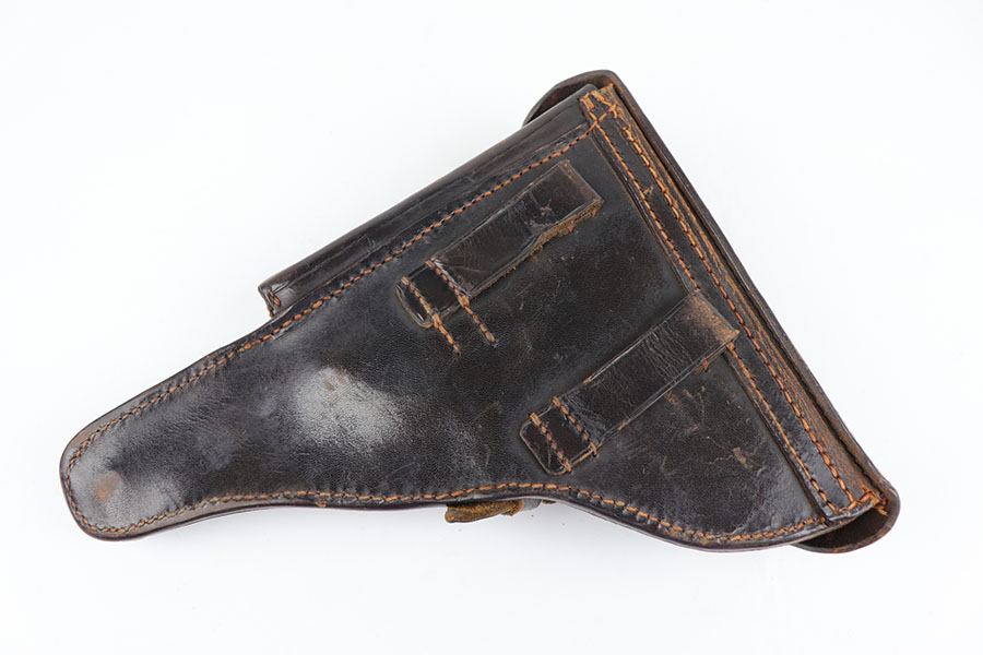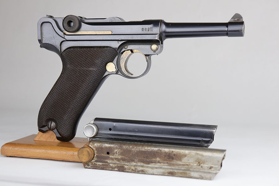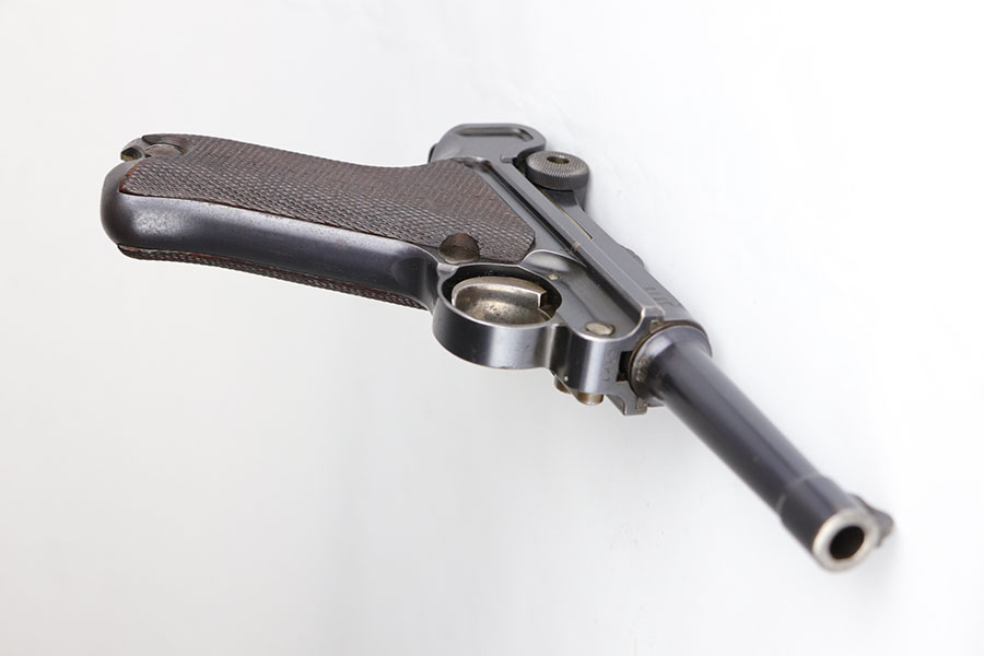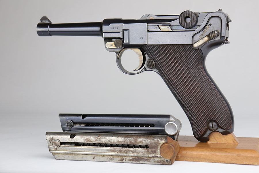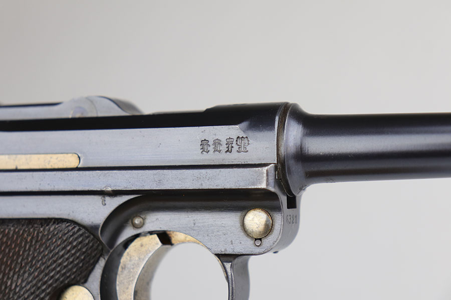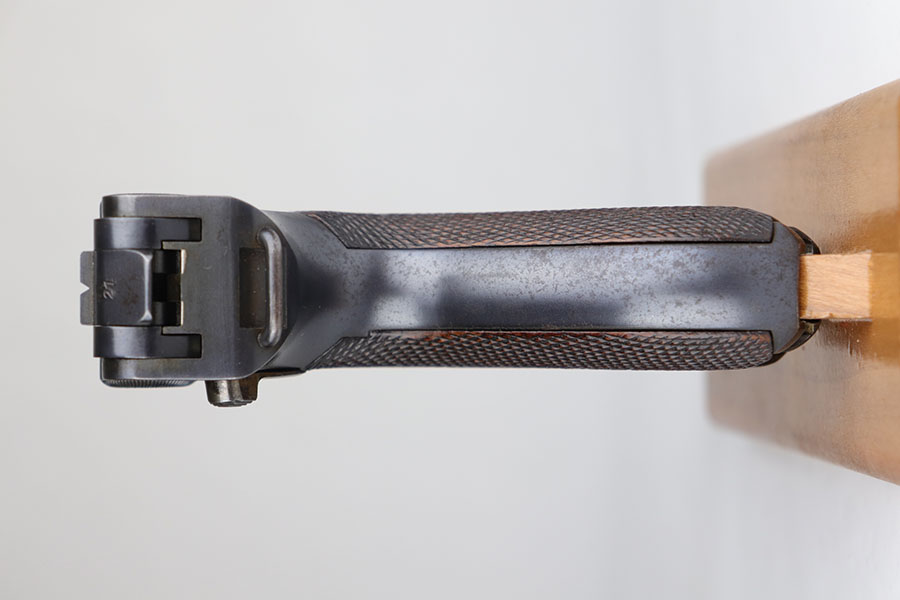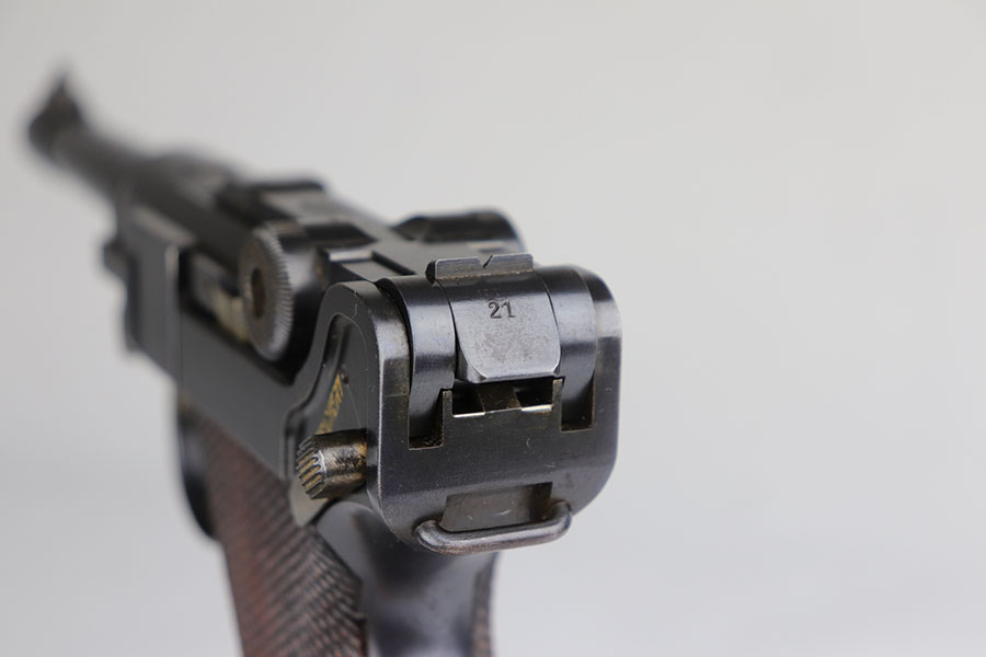 7/15/20 – This is a near-mint DWM Luger from 1913 with holster, tool and spare magazine. This example predates the addition of a stock lug, and has 98% of the original blue remaining. Just a bit of high point wear but hardly any finish loss overall, though there is some oxidation on the straps. All matching numbers throughout, including the original grips. Magazine in the gun is a commercial example with Germany marking on the bottom, and there is a fair amount of surface rust on the tube. The spare magazine is a wartime example from WW2. Original imperial marked tool. Excellent commercial holster that is unmarked. Pistol bore shows some smoothing of the rifling and some freckling throughout.