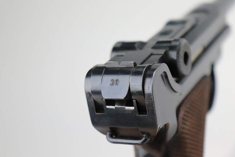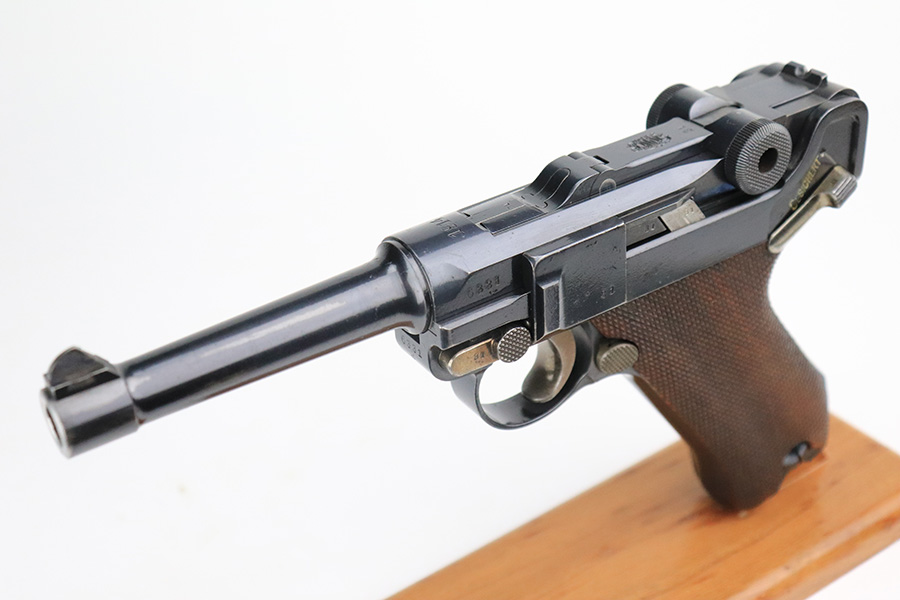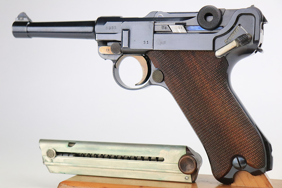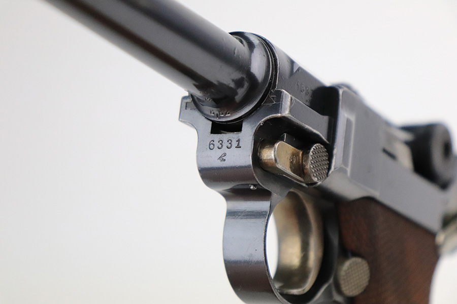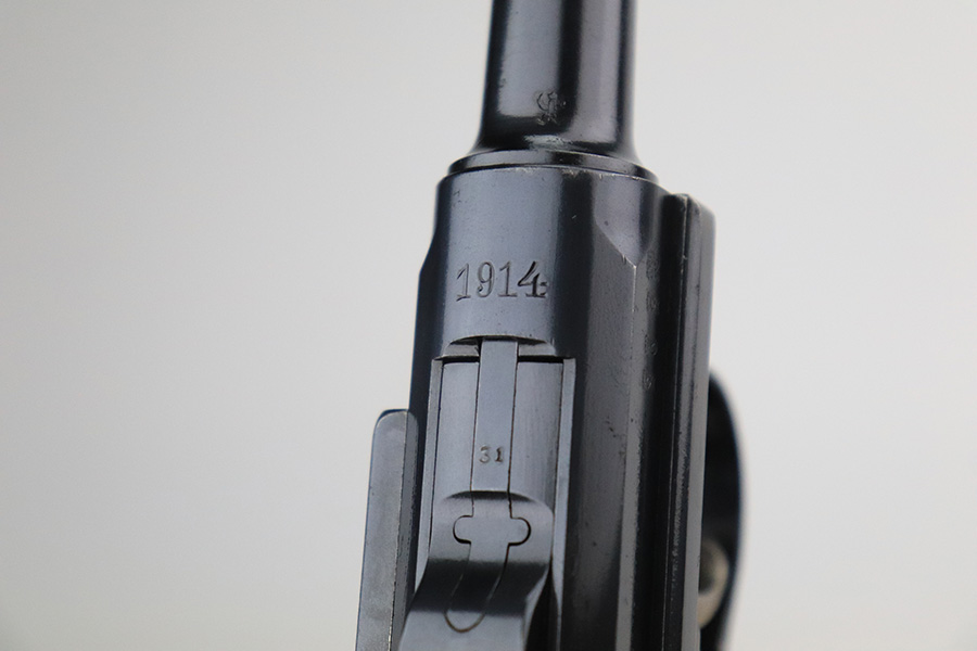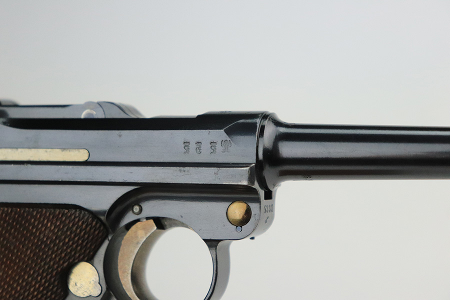 7/13/22 – This is a beautiful example of a DWM Luger issued to the Imperial German military in 1914. It is all matching and has the proper Imperial military acceptance proofs. It has retained nearly all of its original finish with hints of wear on some of the high edges and around the muzzle. A few tiny dots of oxidation here and there. Excellent fire-bluing and straw-coloring on the small parts. Comes with minty matching-numbered wood grips and a mismatched magazine. Very nice bore with good rifling.