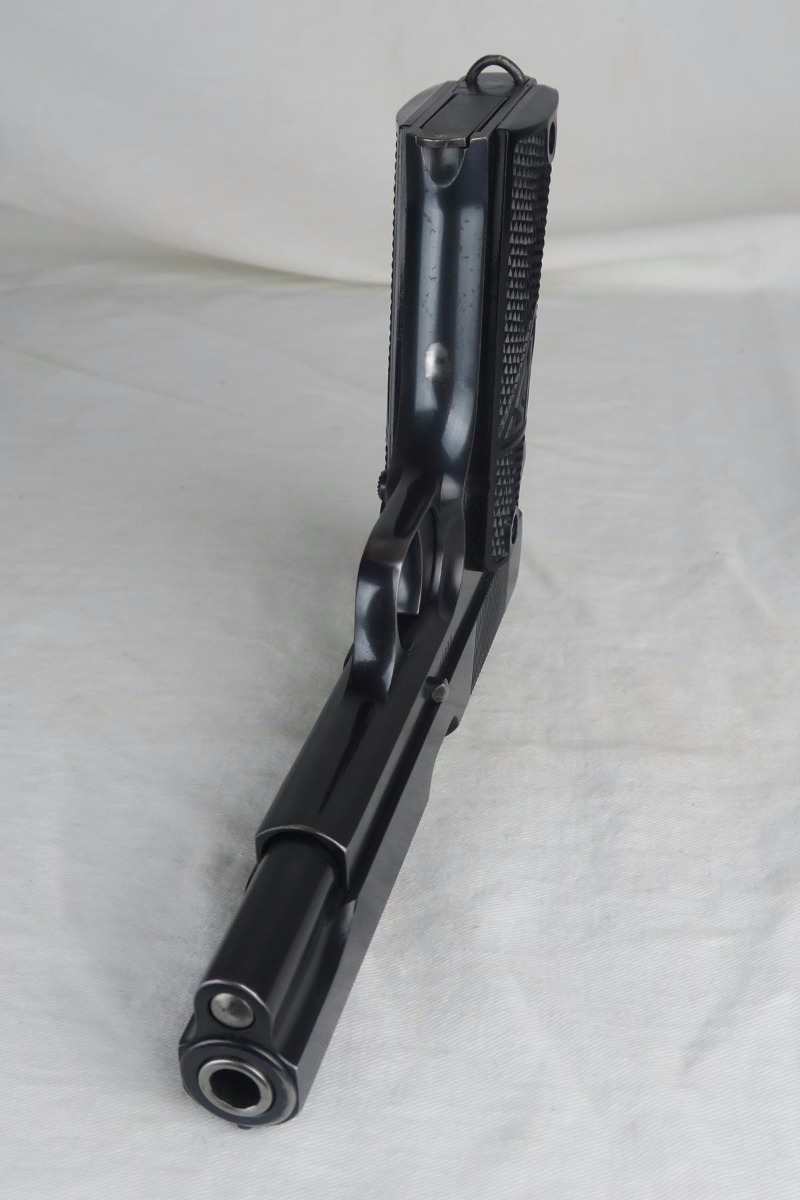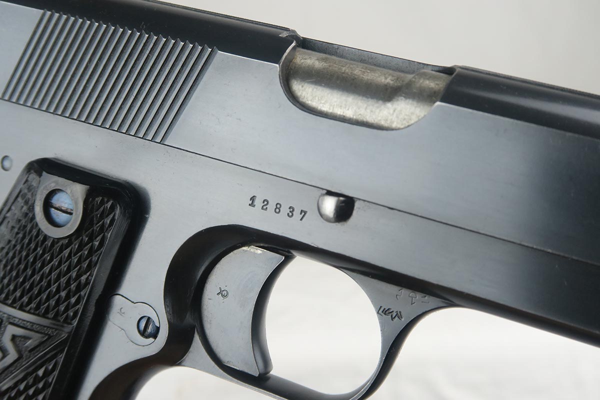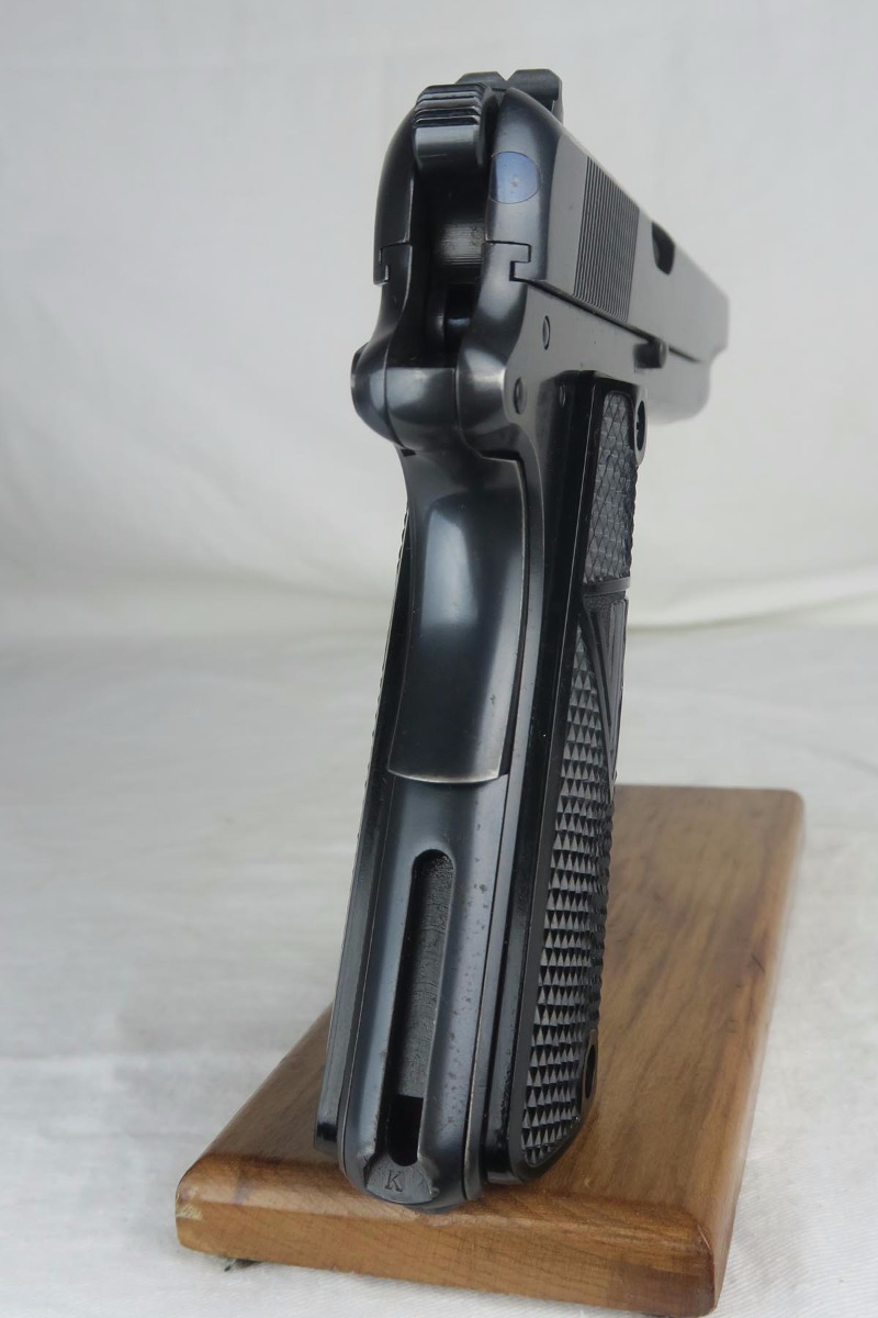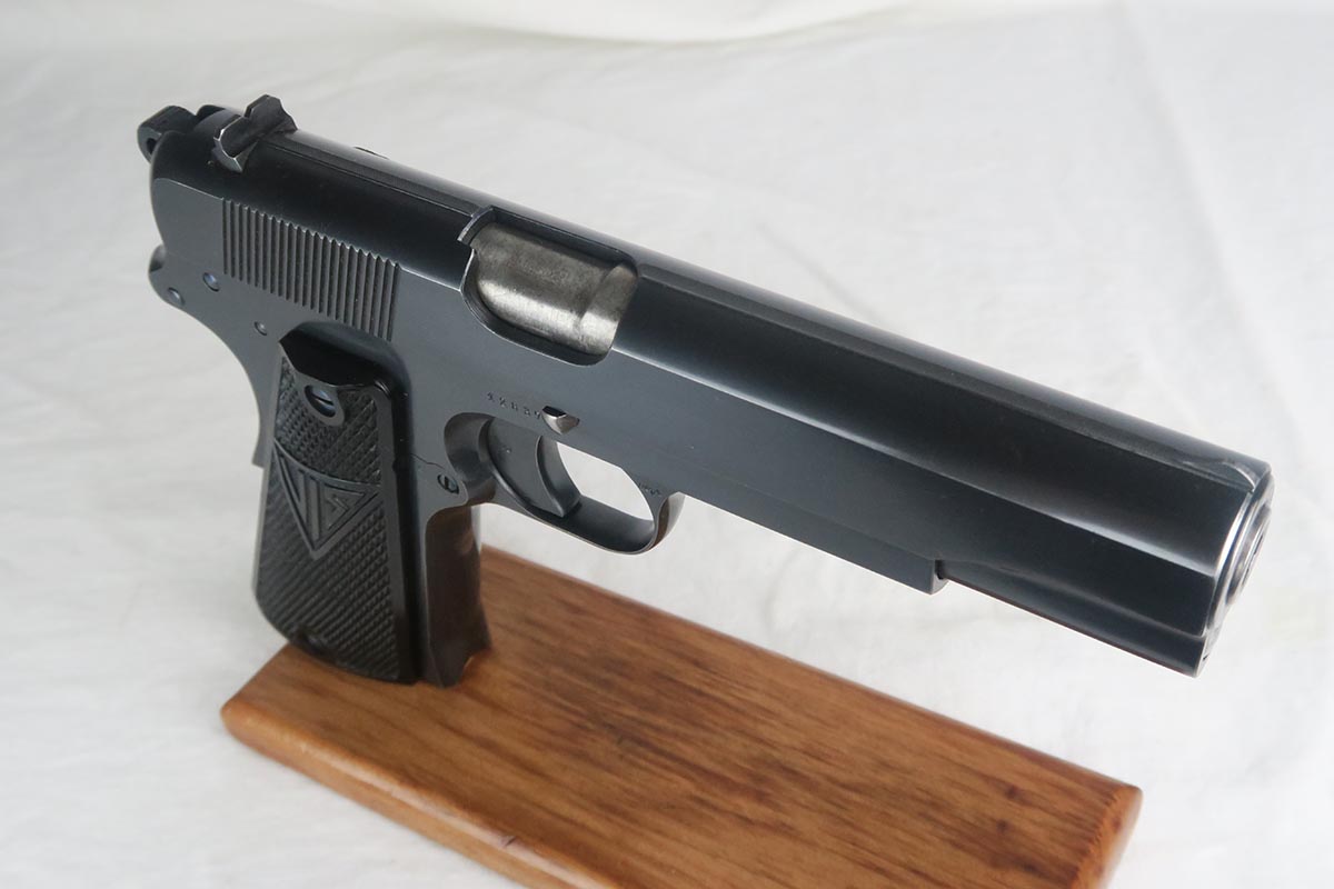11/24/17 – This is a beautiful and rare Radom vis 35 with Polish Eagle on slide.  Manufactured in 1938, this pistol is all original and matching with about 97% blue remaining.  There is a spot of finish loss on the front strap and another on the left side of the slide.  Rare G2 proofed magazine.  Excellent black grips.  Fantastic bore.