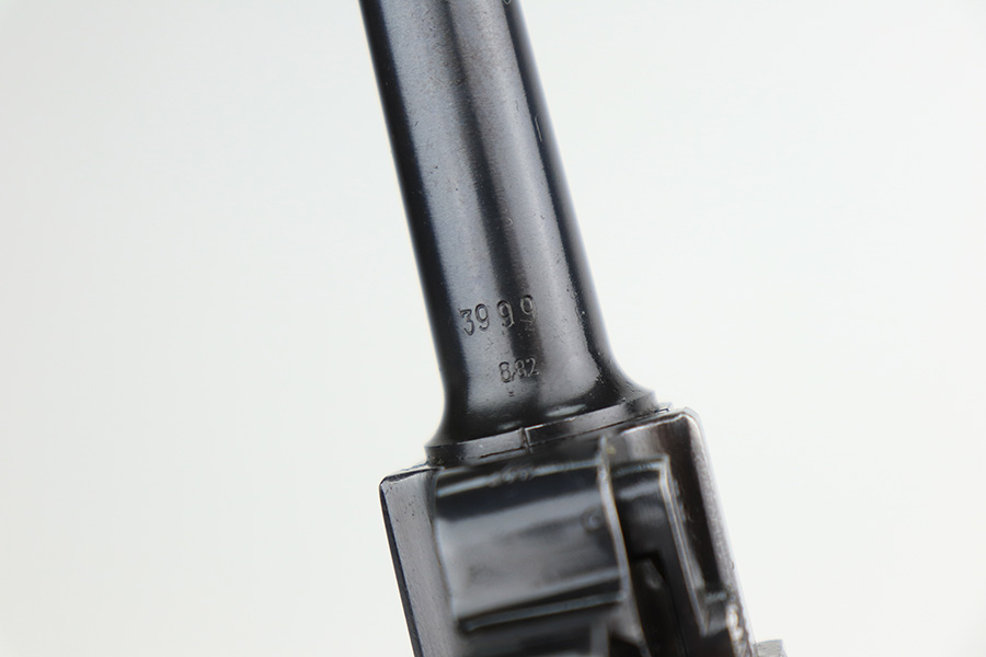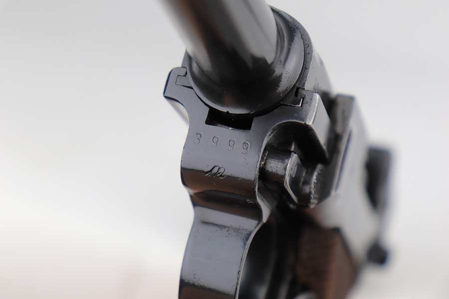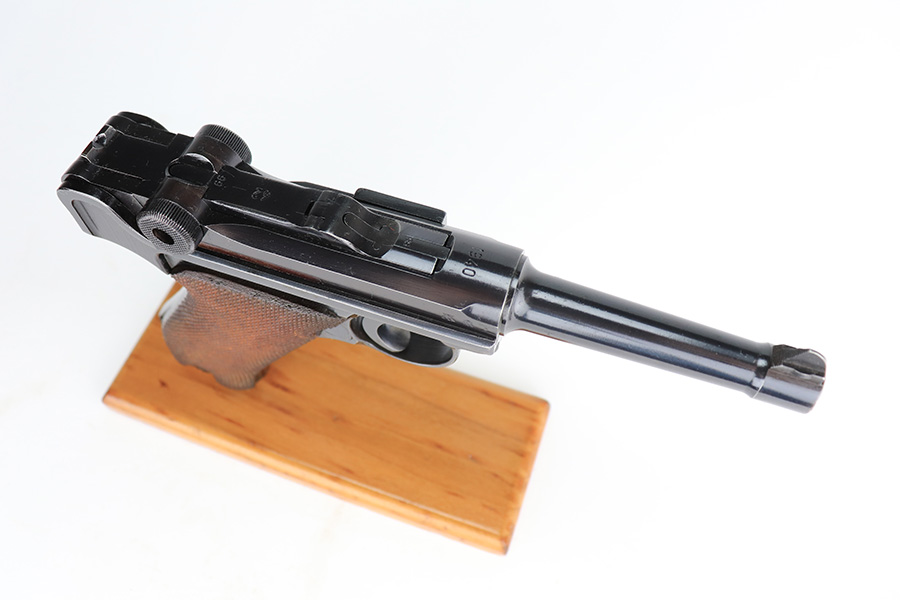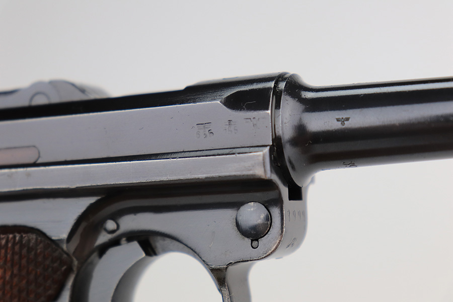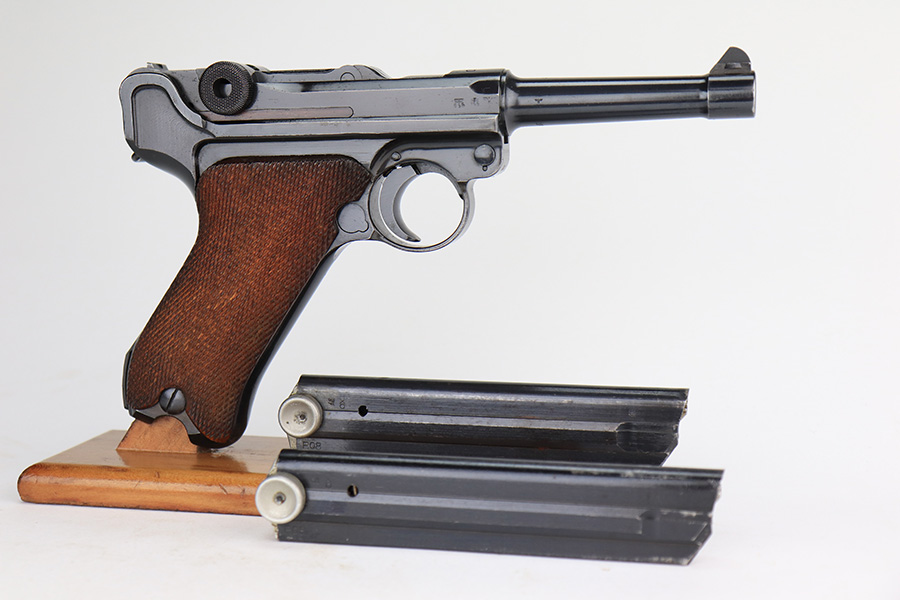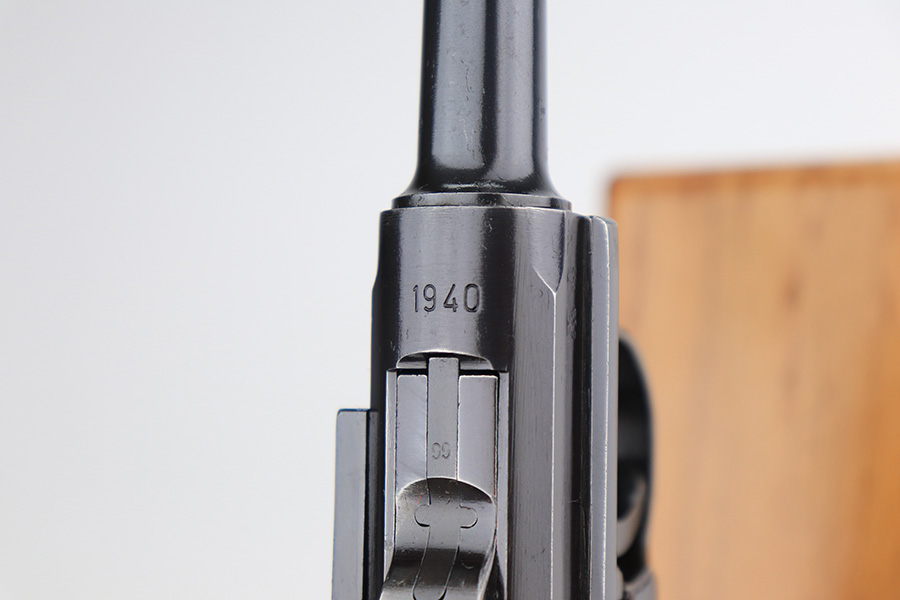 4/19/23 – This is a beautiful example of a Mauser Luger issued to the Nazi military in 1940. It is all matching and has the proper “Eagle 655” military acceptance proofs. It is in near-mint condition, retaining virtually all of its original bluing. There are just hints of wear on some of the high edges and a few light surface scratches on the front strap. Fitted with minty matching-numbered wood grips and comes with two force-matched magazines. The bore is near-mint.
