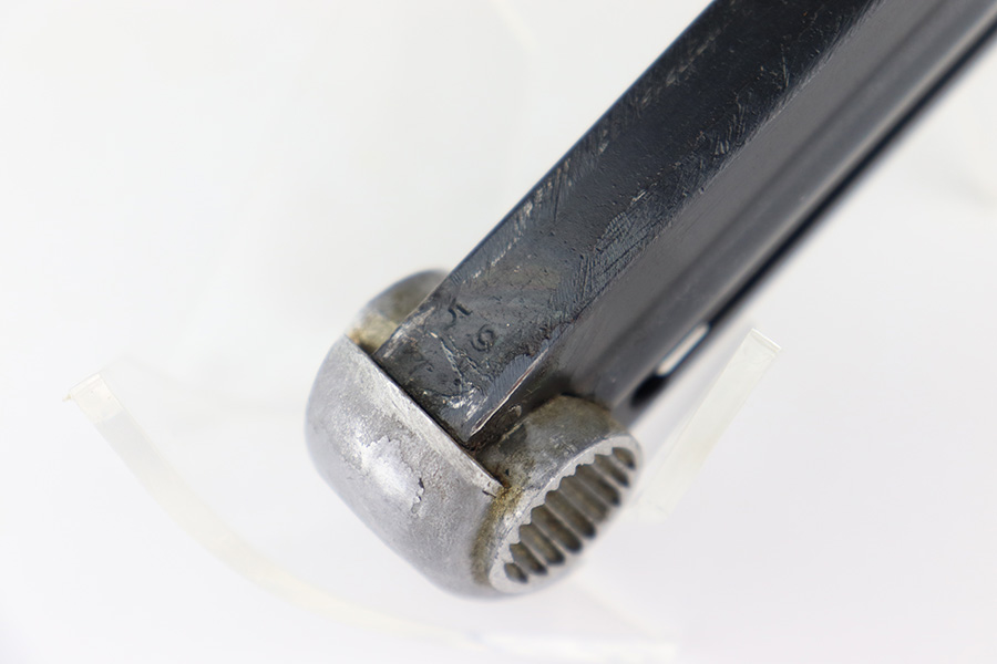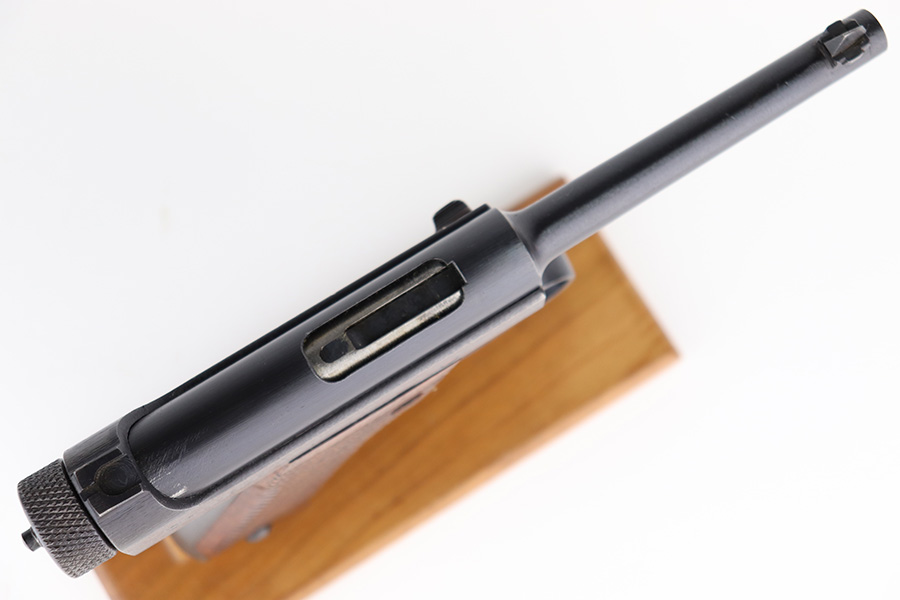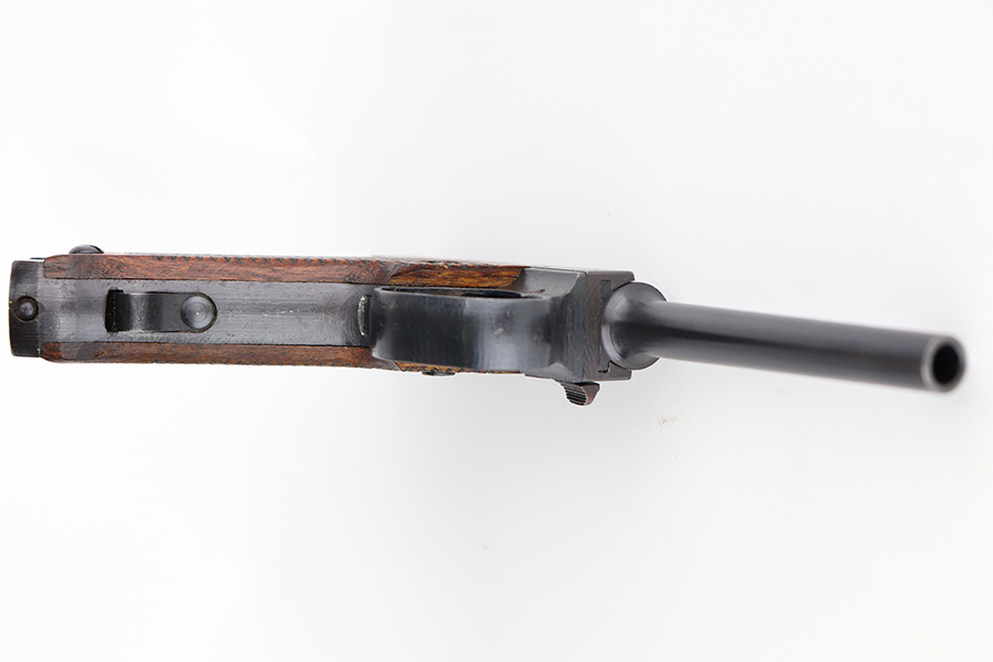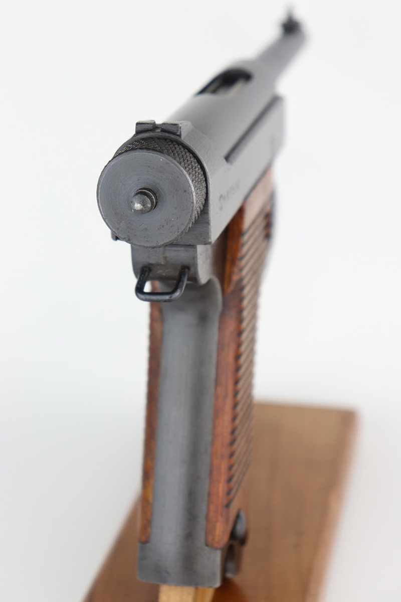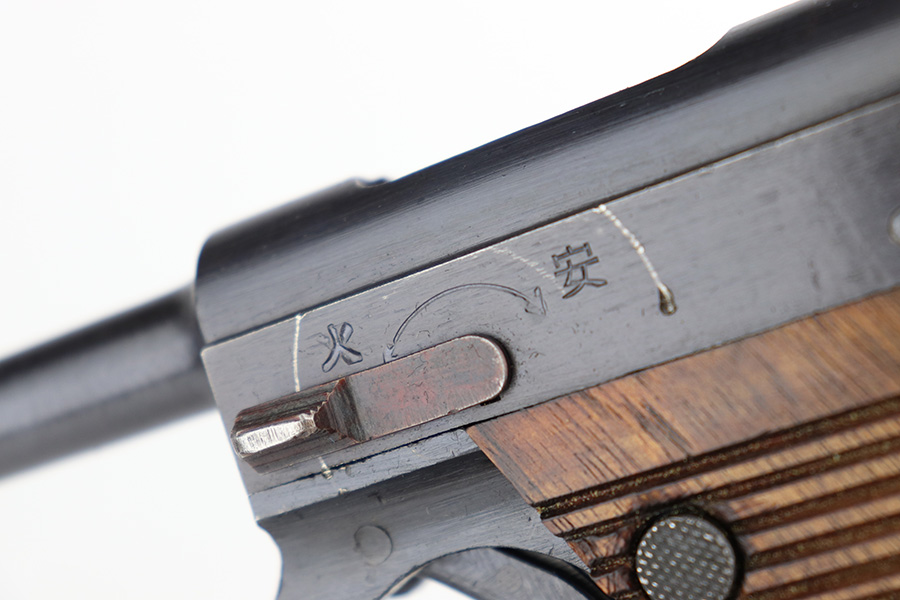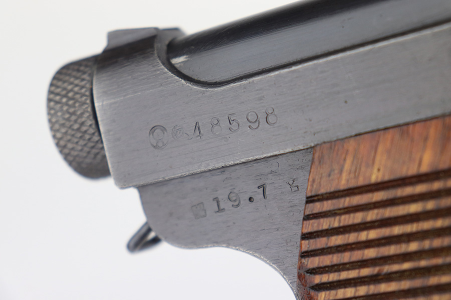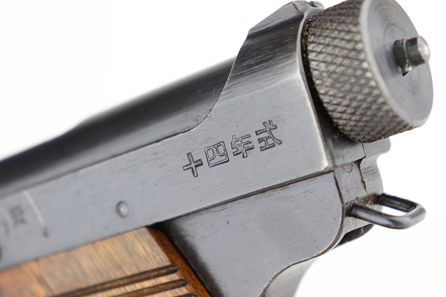 11/22/22 – This is a beautiful example of a Nambu Type 14 issued to the Japanese military in July in 1944. It is all matching and comes with one original matching-numbered magazine. The gun has retained virtually all of its original finish with just hints of wear on some of the high edges. Comes with excellent matching-numbered period-correct wood grips. Mint bore.