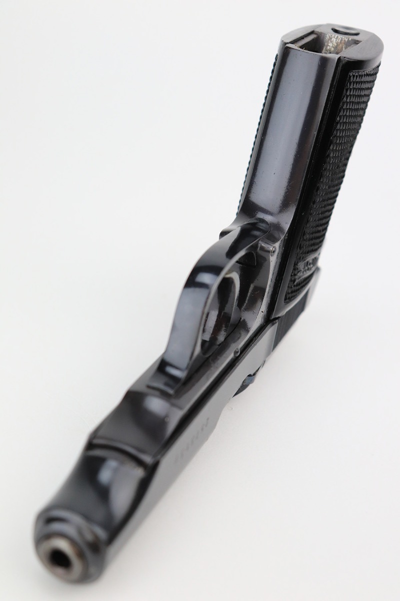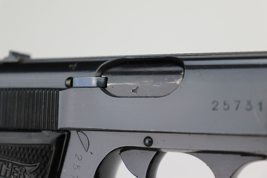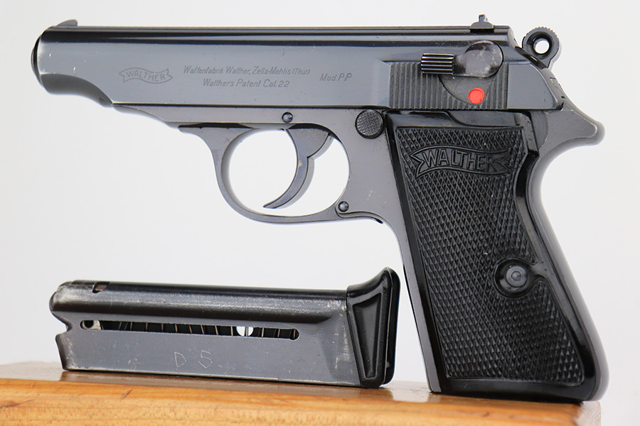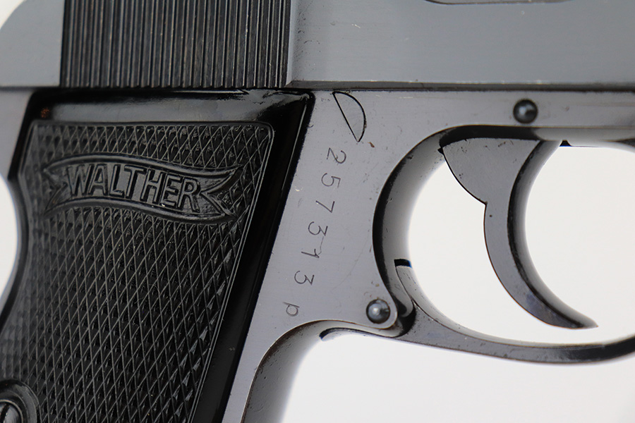 6/5/23 – This is a beautiful example of a .22 Caliber Walther PP sold in the commercial market in 1941-42. All matching with the proper “Eagle N” proofs. It has retained nearly all of its original high polish finish with just very minor muzzle wear and a few very light scratches here and there. Fitted with excellent period-correct black bakelite grips and comes with one proper .22 Caliber finger extension magazine. Mint bore. This gun comes from the personal collection of Tom Whiteman. We can provide a certificate of authenticity upon request.