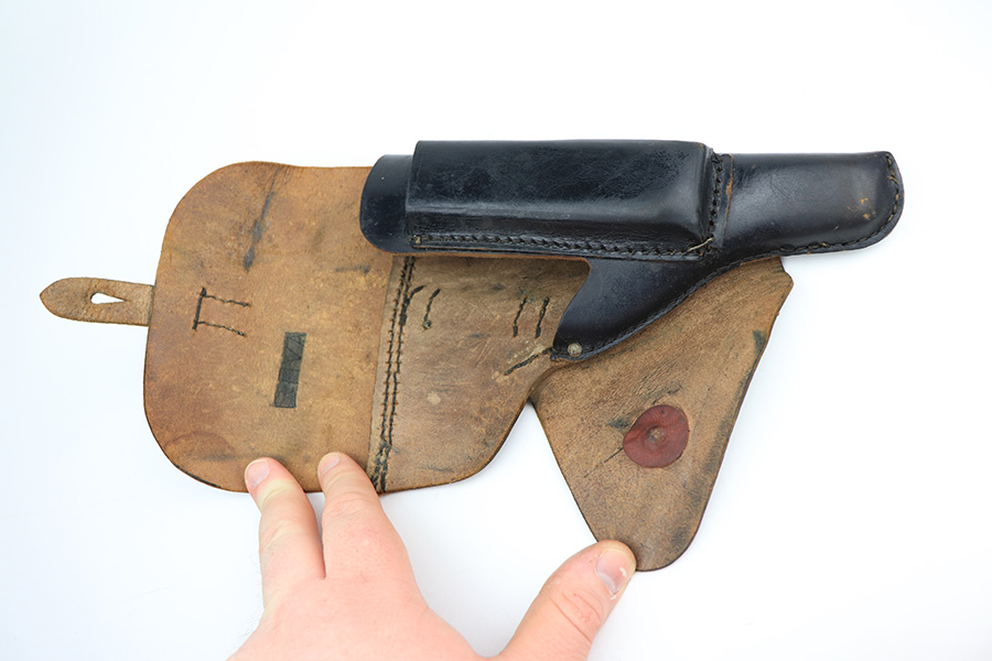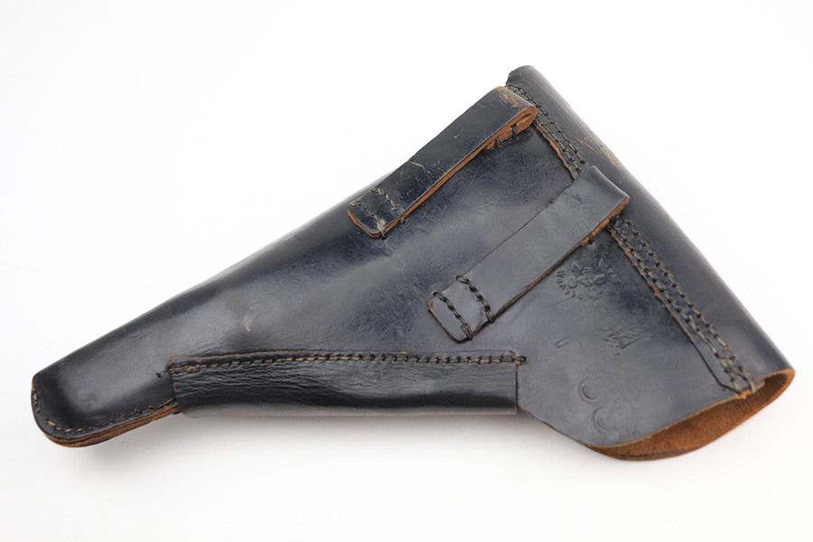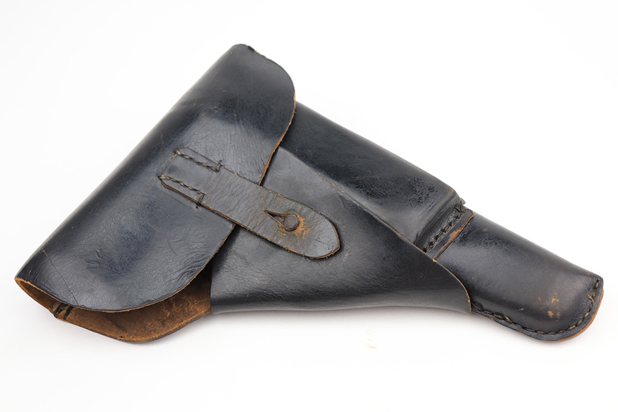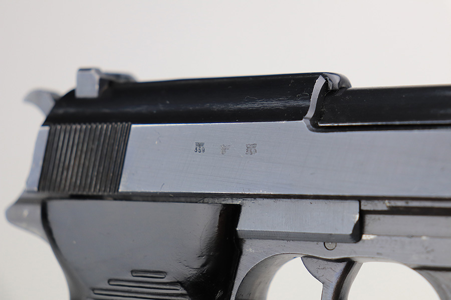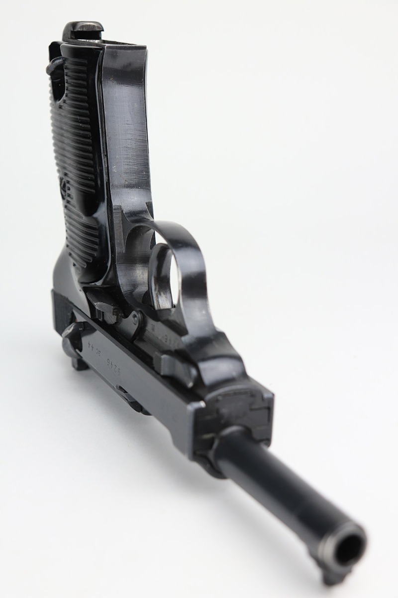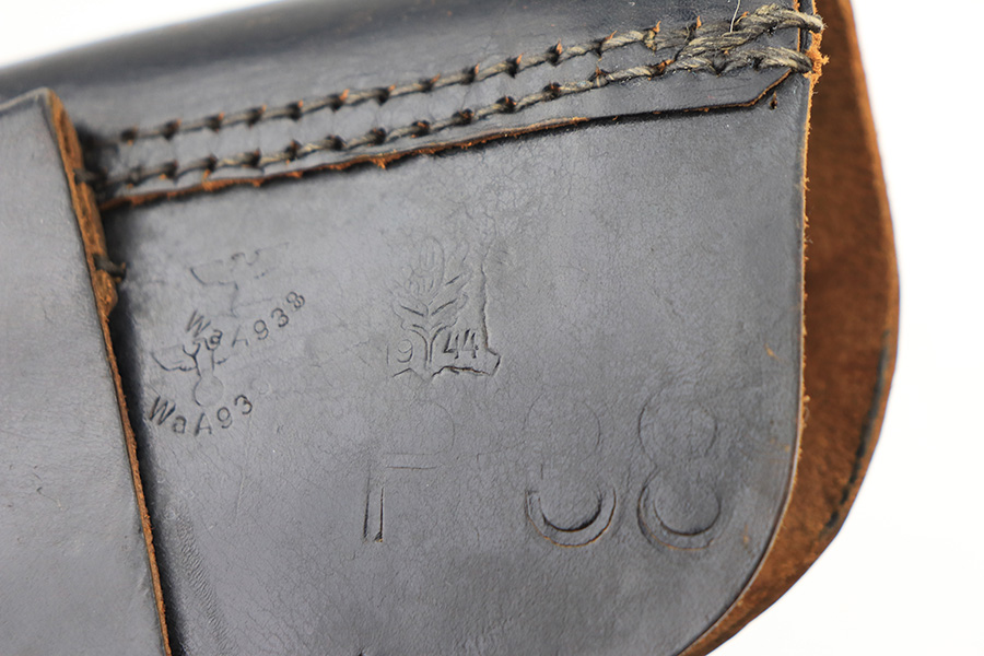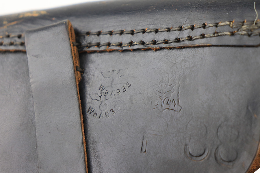 2/22/22 – This is a beautiful example of a Walther P.38 issued to the Nazi military in 1944. The gun is all matching and has the proper “Eagle 359” Nazi military acceptance proofs throughout. The gun comes as a rig with a minty 1944 dated holster, one un-marked period-correct magazine, and one period-correct Walther magazine. The gun has retained nearly all of its original finish. There are just hints of wear on some of the high edges and around the muzzle. One small spot of wear on the top plate and a few tiny handling marks on the front strap. Comes with nice black bakelite grips that have been cut down. Stone mint bore. The de-cocker sticks a little bit but is functional.