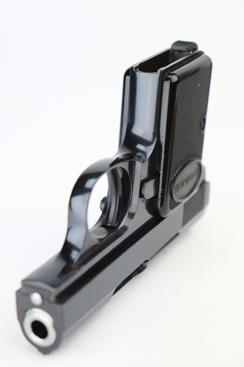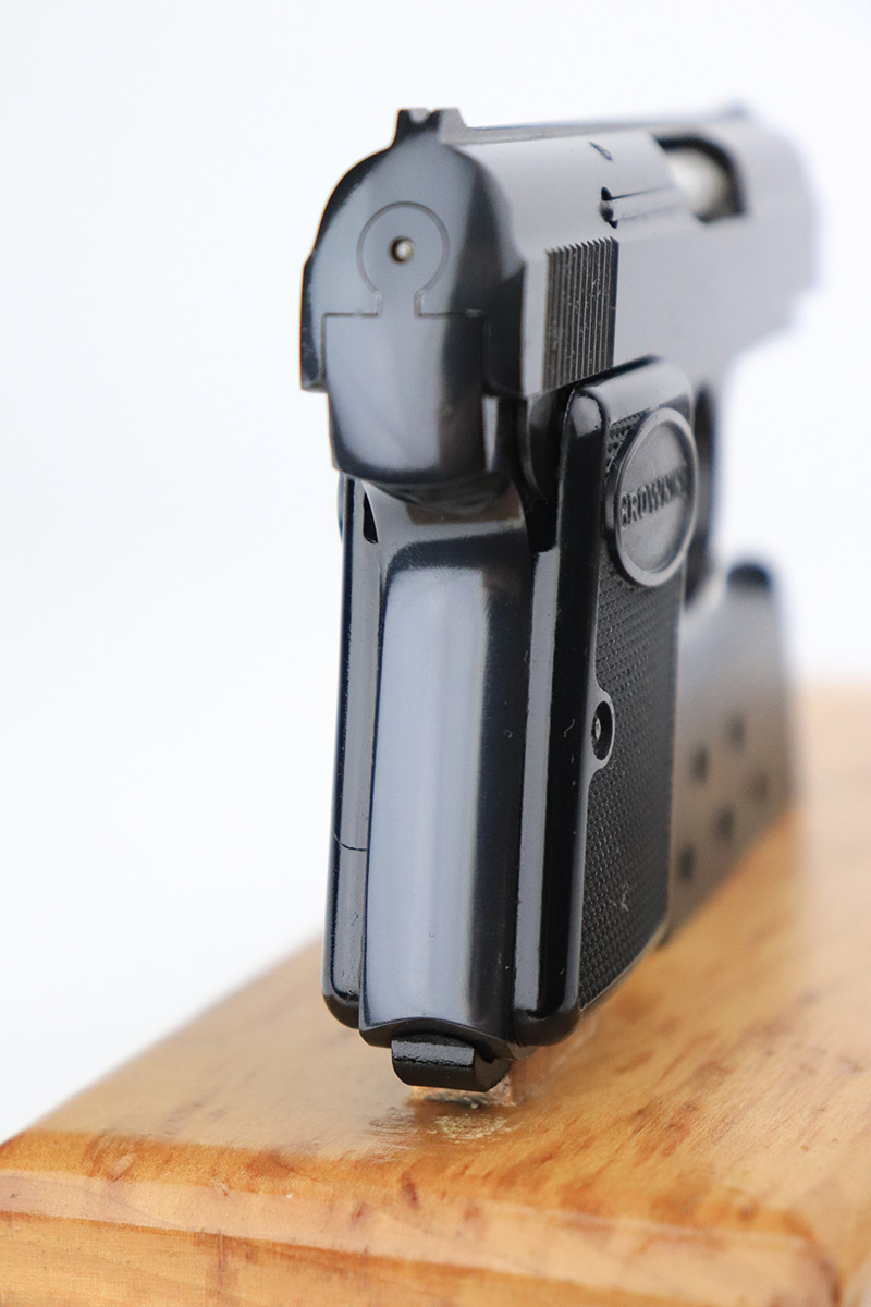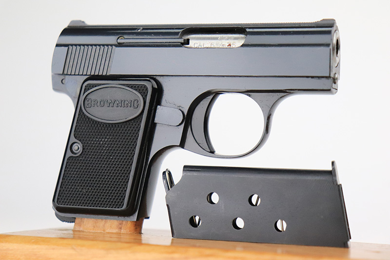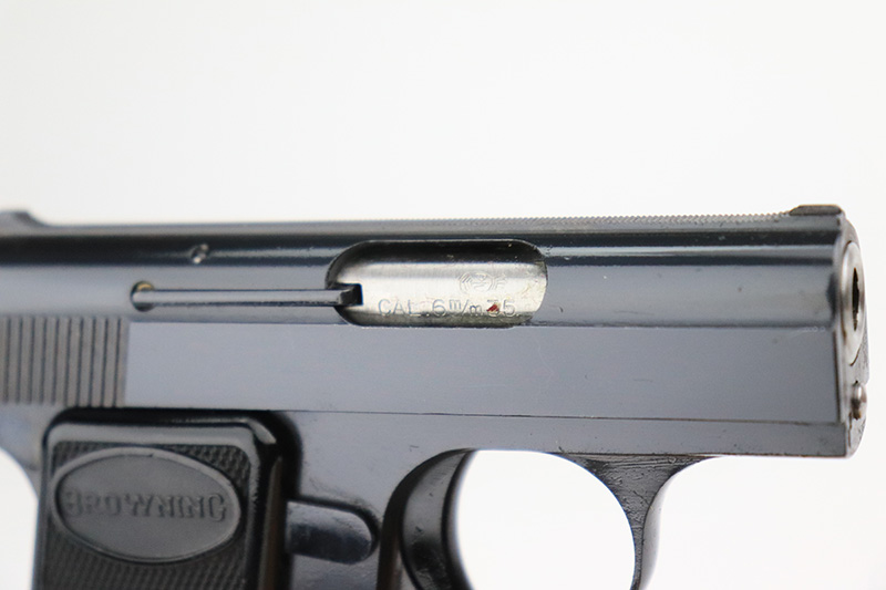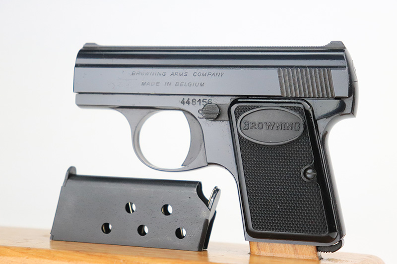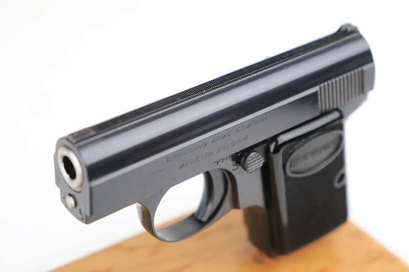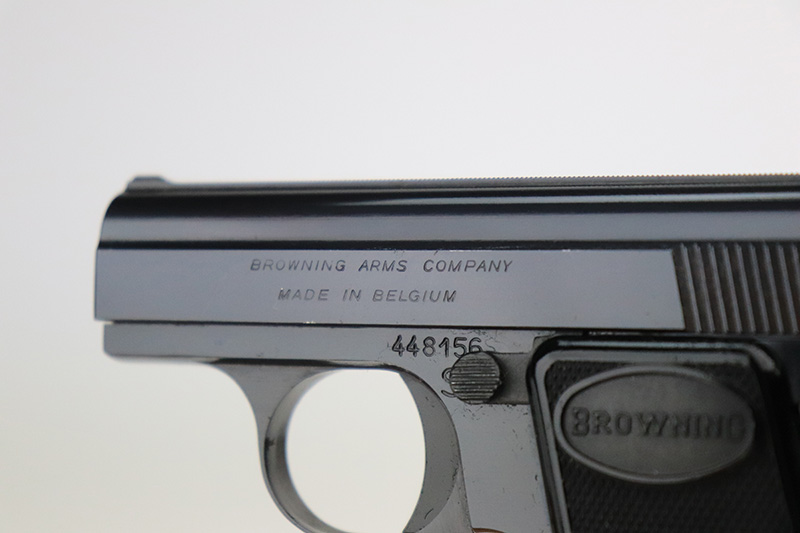 10/4/22 – This is a beautiful example of a Baby Browning pistol, manufactured in 1968 and chambered in .25 ACP. It is all matching and has the proper Belgian proofs. The gun is in like-new condition with virtually no signs of wear or use except for one tiny scratch on the right side of the slide around the muzzle. Comes with excellent black plastic grips and one proper magazine. The bore is near-mint.