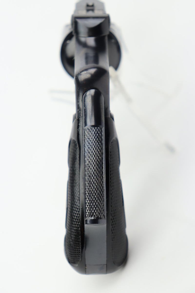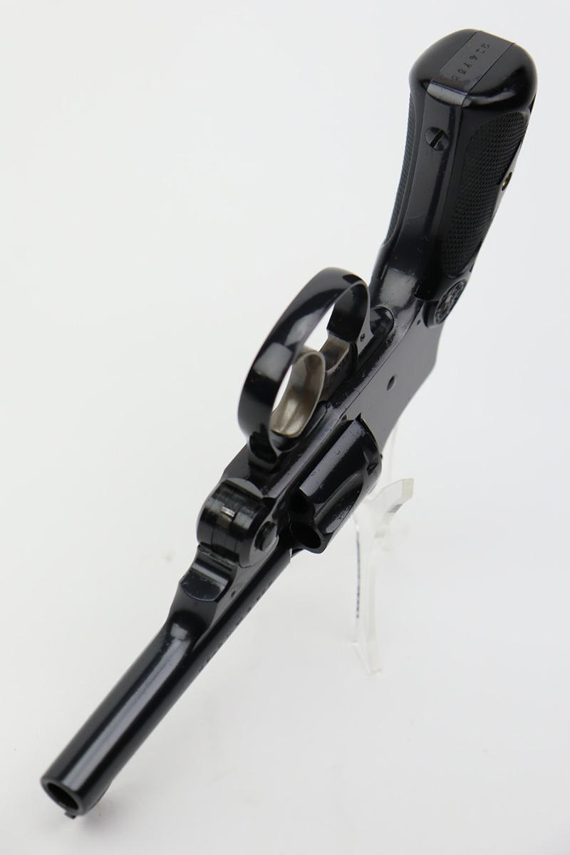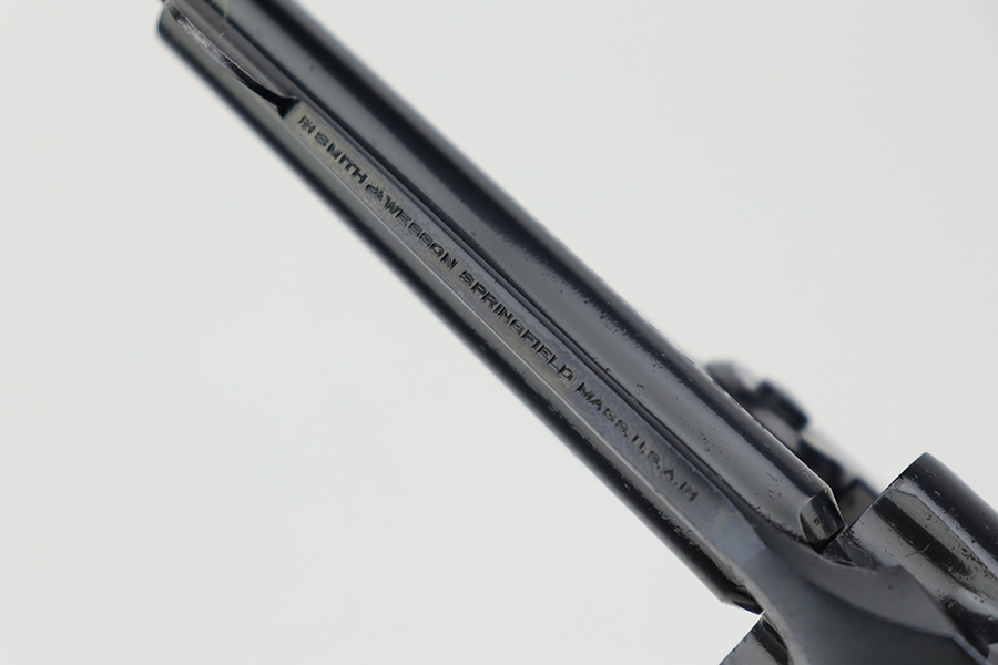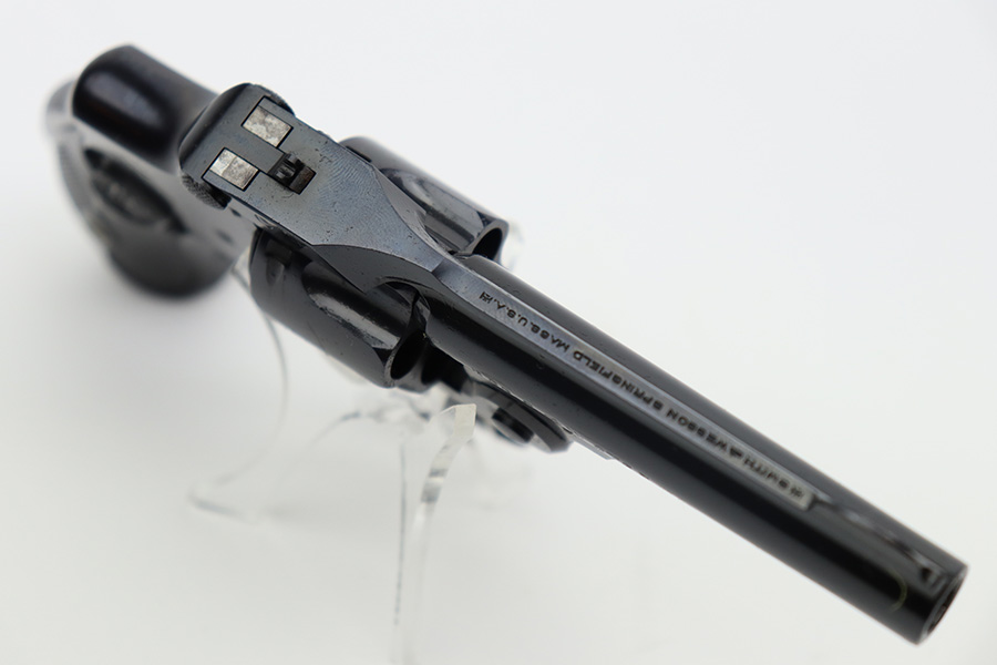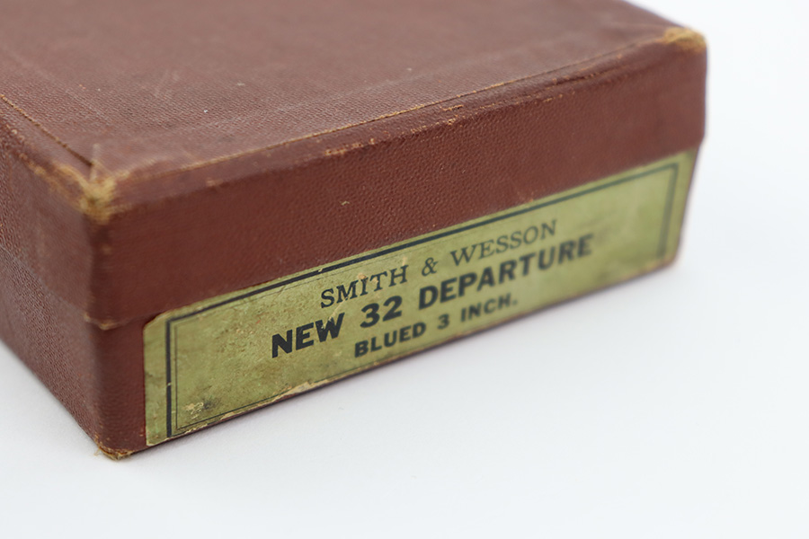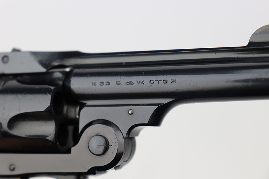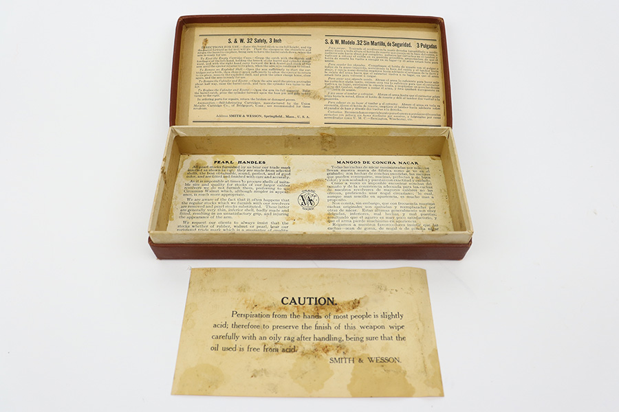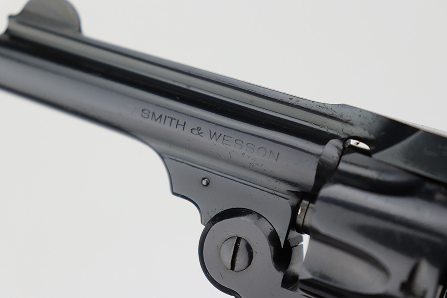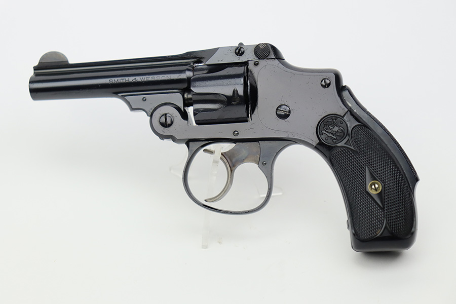 11/6/23 – This is a beautiful Smith & Wesson Safety Hammerless revolver, manufactured in the early 1900’s and chambered in .32 S&W. It has retained nearly all of its bluing with just very light freckling here and there and a couple of tiny scratches on the right side of the frame. Excellent case-hardening on the trigger. Fitted with excellent period-correct grips. It comes with an original matching-numbered box – the numbering is very faint but still visible. Mint bore.