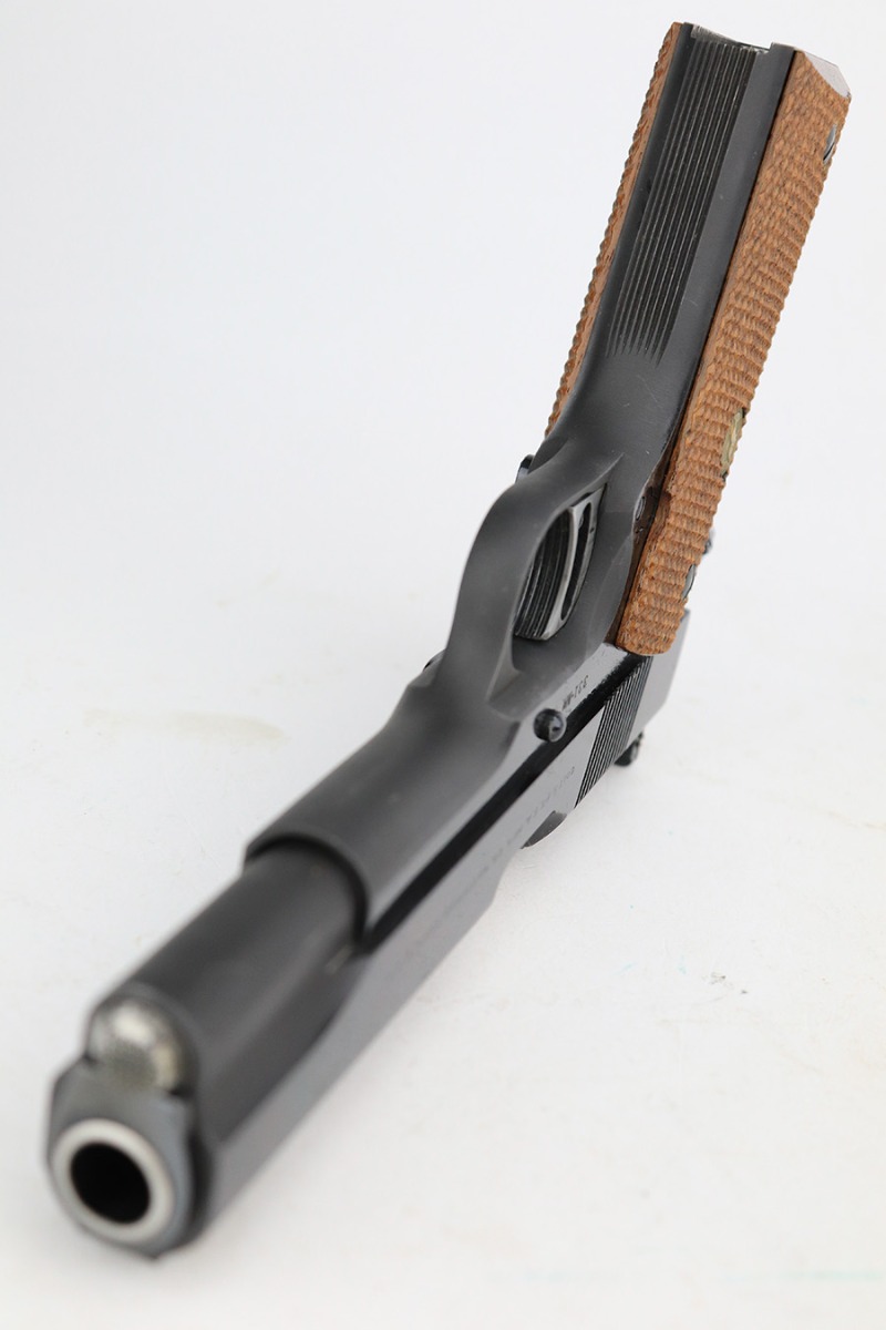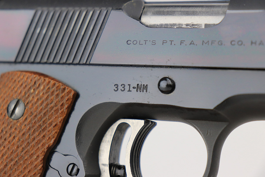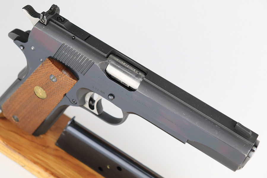 5/18/23 – This is a beautiful example of a Colt Gold Cup National Match, manufactured in 1957 and chambered in .45 ACP. It has retained essentially all of its original finish with just the slightest hint of muzzle wear and a few tiny surface scuffs along the top of the slide. Fitted with a mint set of nice wood grips and comes with one proper magazine. The bore is like-new. Comes with a Colt archive letter stating it shipped to a store in Chicago in 1957.