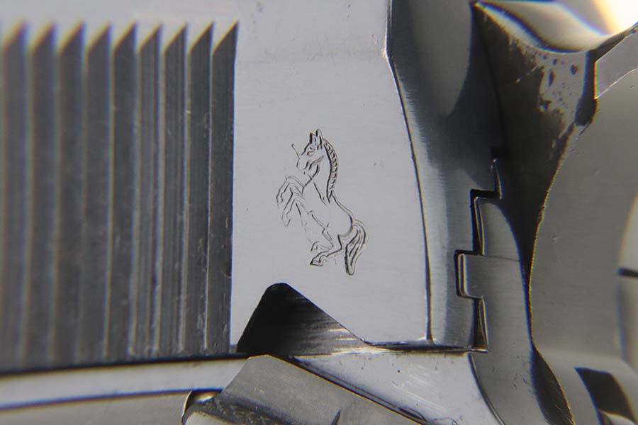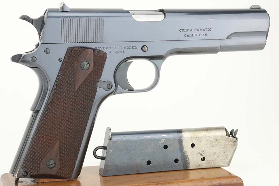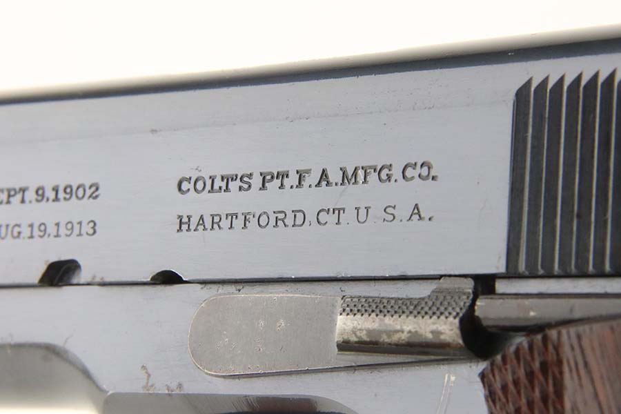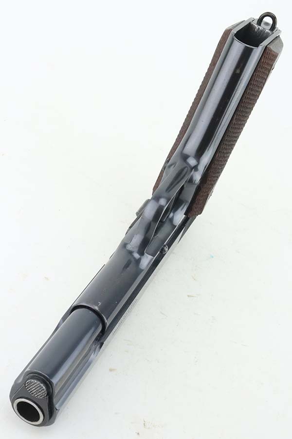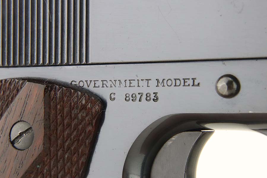 3/26/24 – This is a beautiful Colt Government Model 1911 sold in the commercial market in 1917. All correct with a proper un-marked commercial Colt barrel. It has retained nearly all of its original bright high-polish blue finish. There are just a few very light scratches and tiny dots of oxidation here and there. Fitted with minty wood grips and comes with a proper two-tone magazine. Excellent bore.