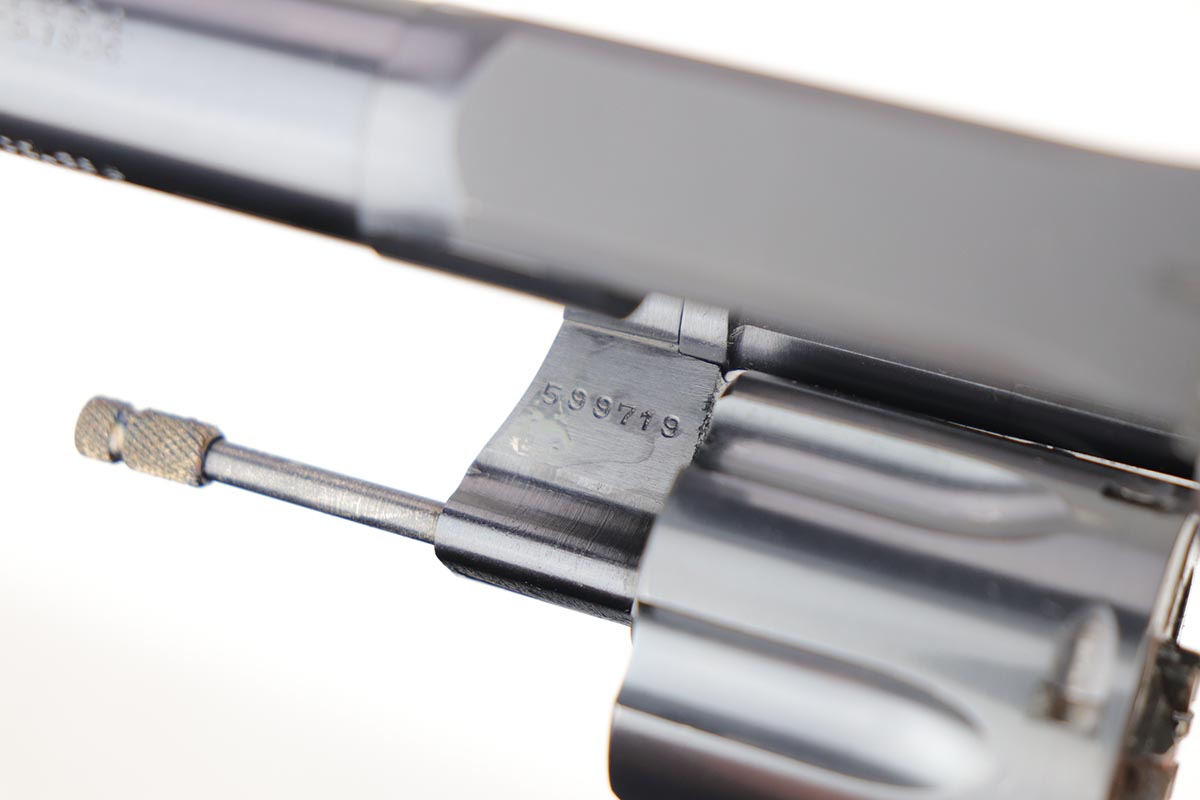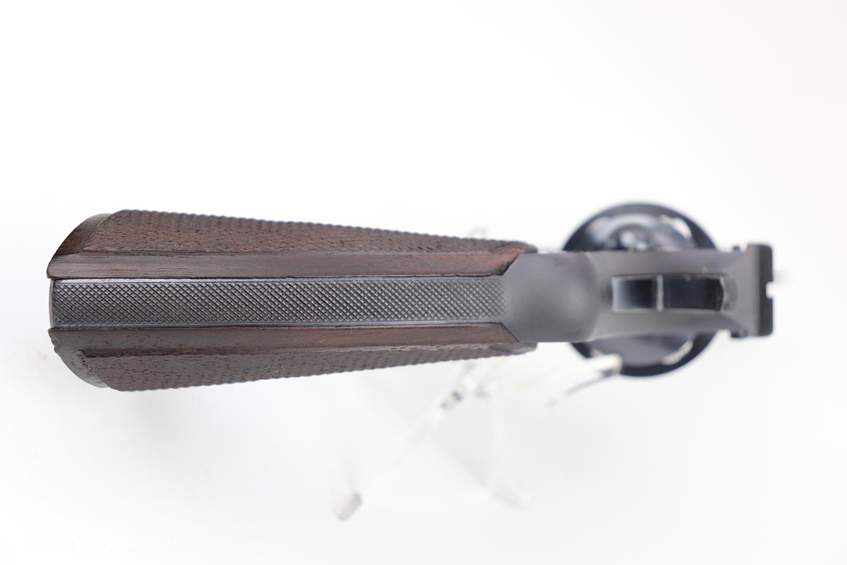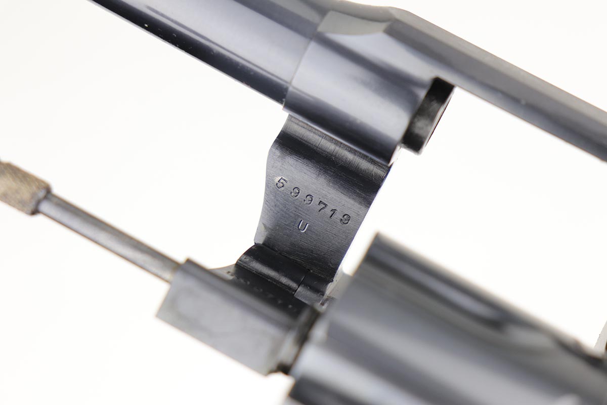 3/5/20 – This is a gorgeous and original Colt Officers Model Target revolver with heavy barrel. The gun retains 98+% of the original blue, with nearly all of the finish loss on the bottom of the grip frame, and then just a hint of muzzle wear. There is also a scratch on the left side of the frame. Otherwise, just a minty example. Mint bore and excellent grips. Heavy barrel variation, as marked on the gun. Third issue based off serial and attributes. Six inch barrel.