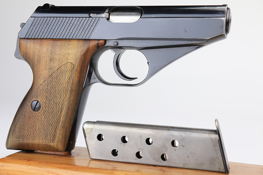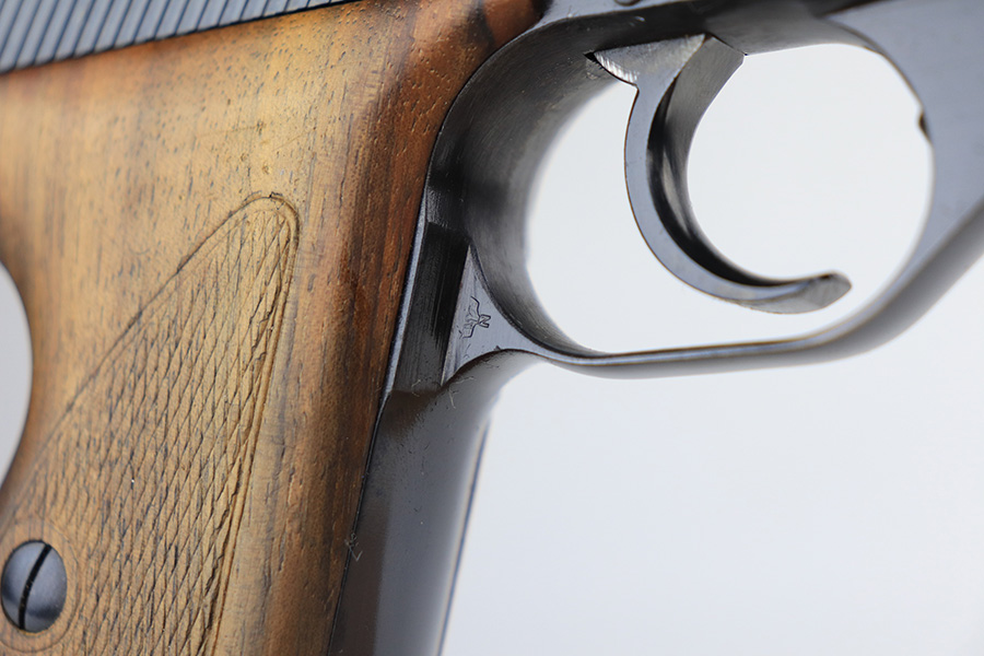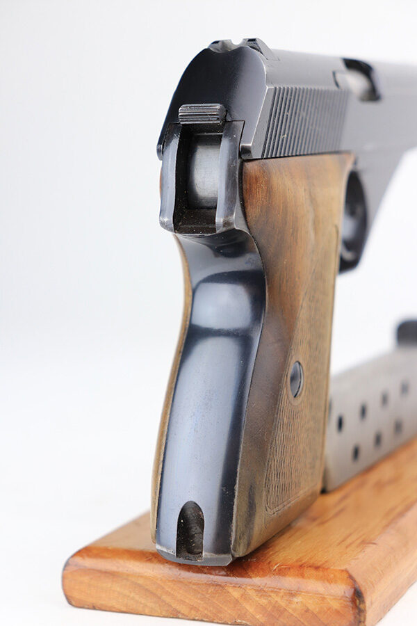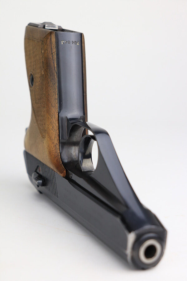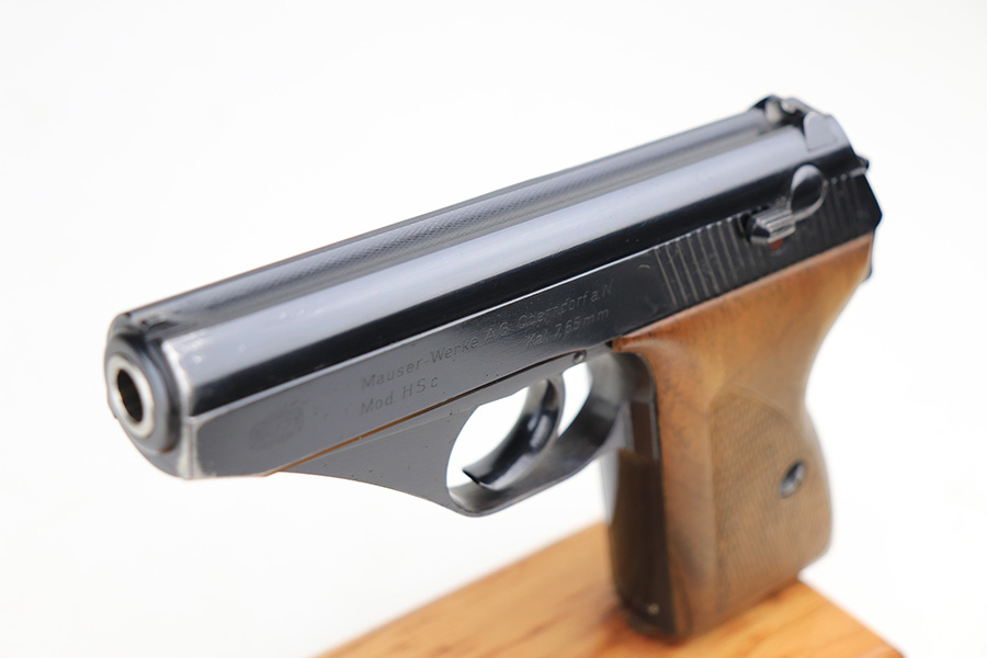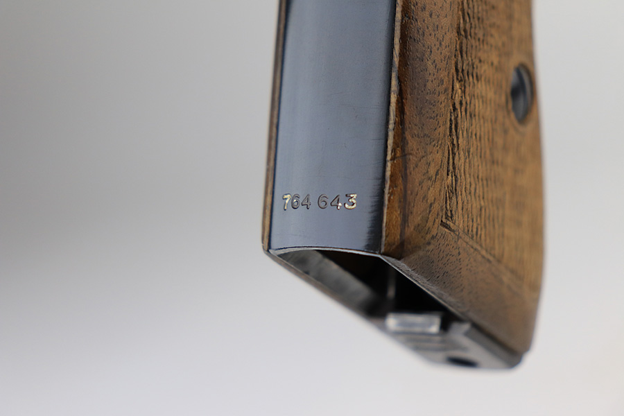 1/11/22 – This is a beautiful example of a Mauser HSC sold in the commercial market in 1942. It is all matching and has the proper “Eagle N” commercial proofs on the slide and frame. It has retained about 98% of its gorgeous high polish finish. There is just minor wear around the muzzle. There are a couple of small dots of wear on the right side of the slide. Comes with very nice period-correct wood grips – one small bruise on the right side. Also comes with one period-correct magazine. The bore is mint.