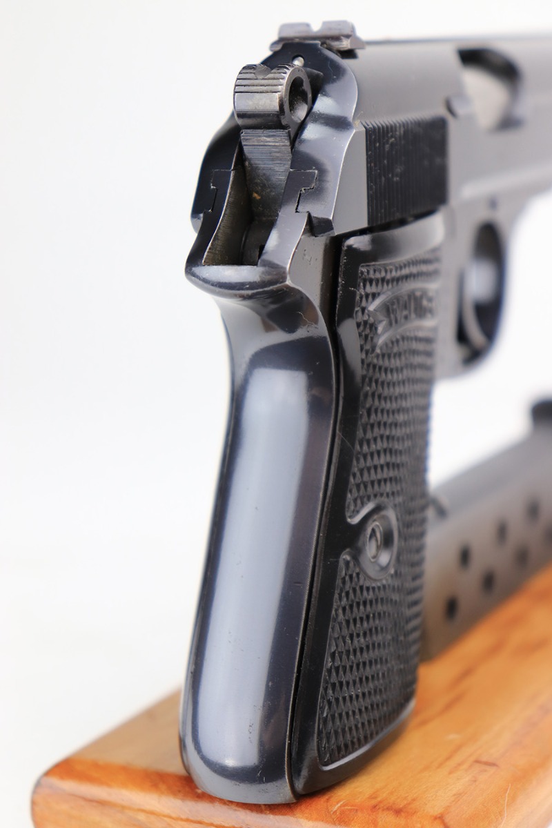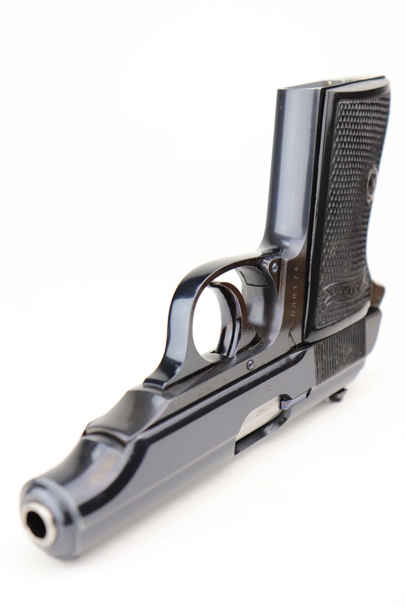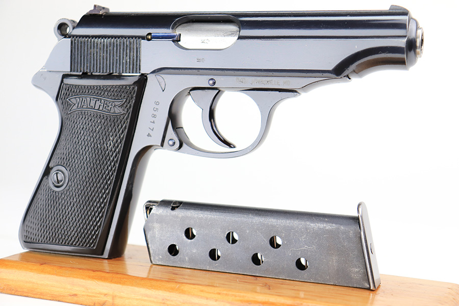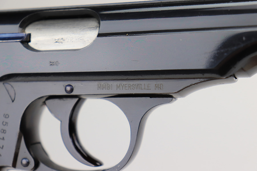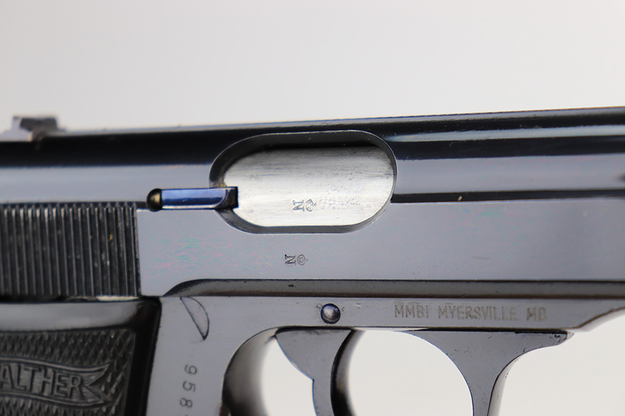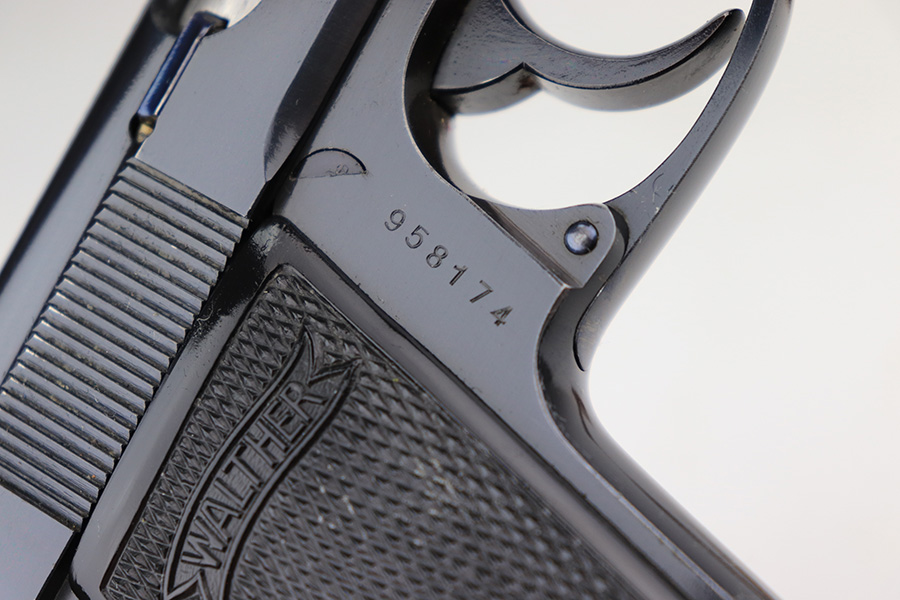 3/24/22 – This is a beautiful example of a Walther PP sold in the commercial market in 1937. It is all matching and has the proper “Crown N” commercial proofs. Unfortunately, there is an import mark on the right side of the frame. The gun has retained virtually all of its original high polish finish with a few tiny scratches and handling marks here and there. Comes with a set of excellent period-correct black bakelite grips and a wartime magazine. The bore is near-mint.