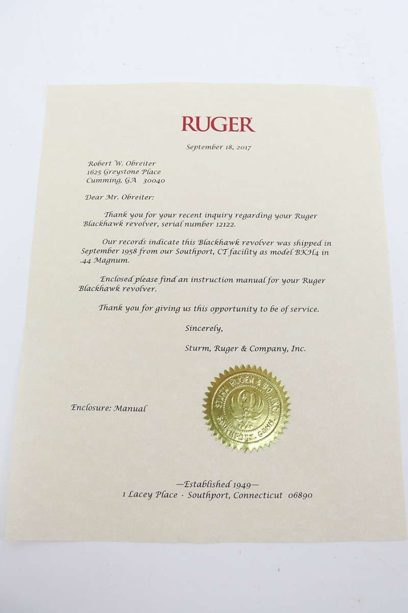 SOLD – Beautiful, Early 1958 Ruger Blackhawk Revolver – With Factory Letter