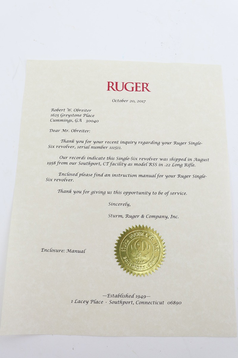 SOLD – Beautiful, Early 1958 Ruger Single-Six Revolver – With Factory Letter