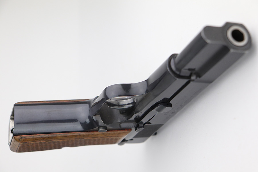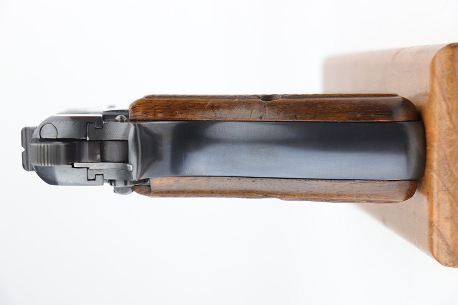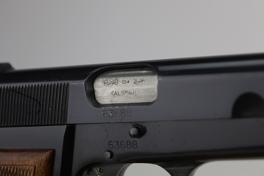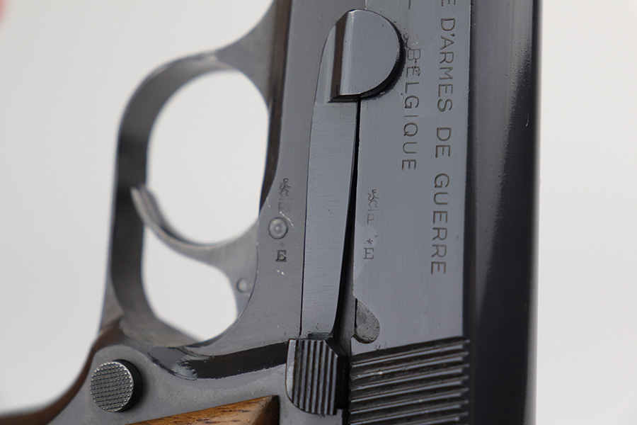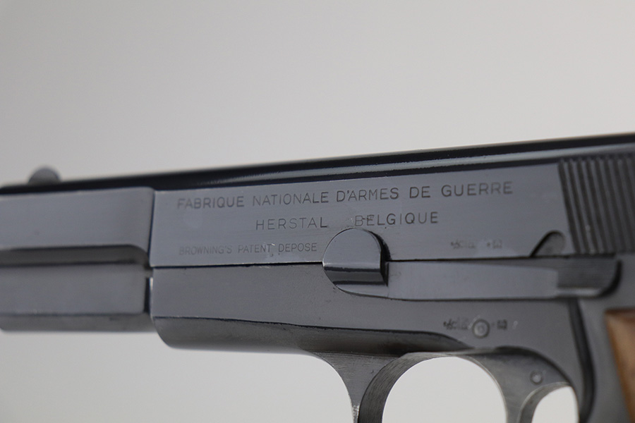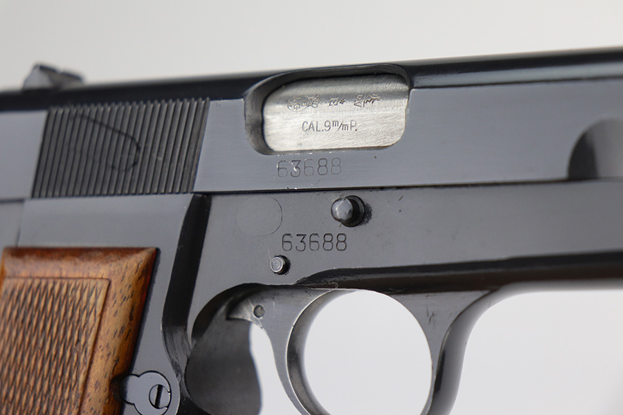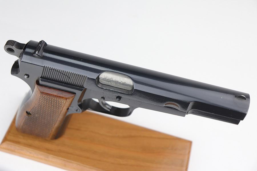 9/22/21 – This is a beautiful FN Hi Power that was made in the 1950s. All matching and original with just a hint of edge wear on the bottom of the back strap and around the muzzle. Minty grips with no cracks or chips. Excellent, shiny bore. Magazine is in great condition.