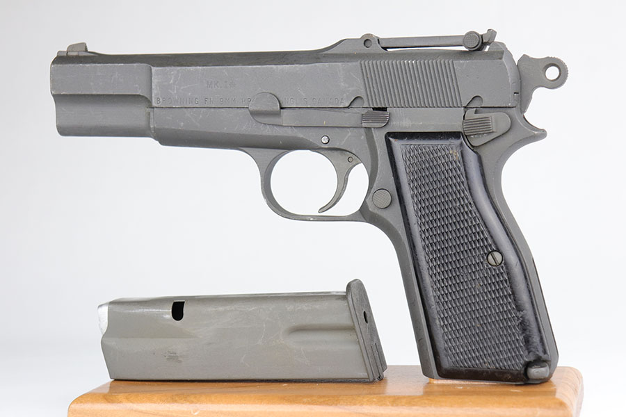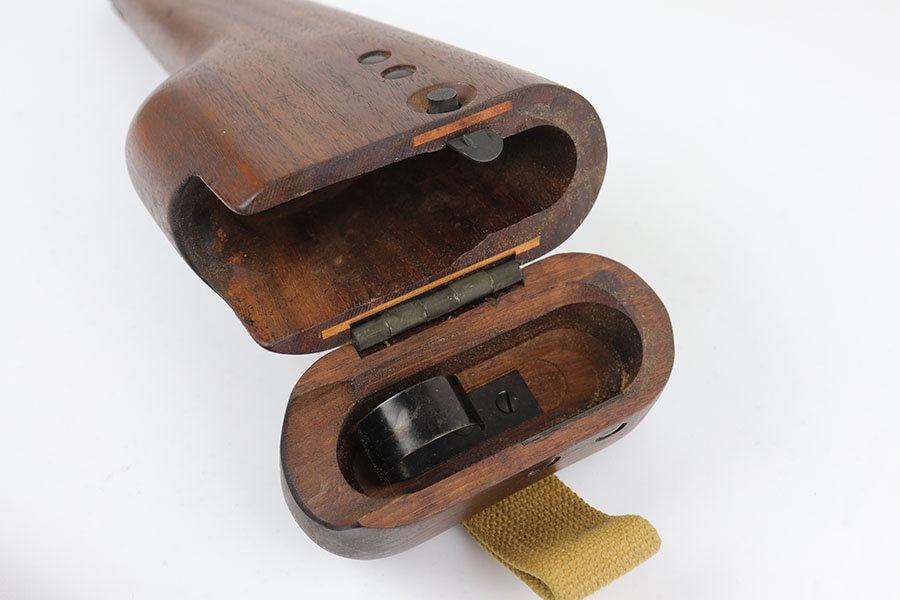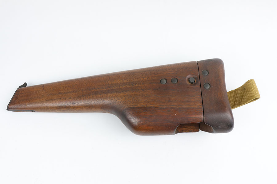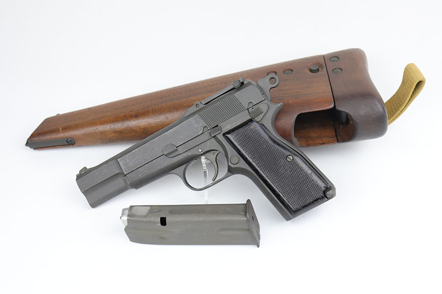 5/19/20 – This is an all original and minty Inglis High Power (MK I*) pistol and stock. The pistol was made in 1944 by the Canadians and is all original as well as fully functional. The pistol has a minty parkerized finish, and the stock is in similarly excellent condition. Couple of minor scuffs here or there but minimal finish loss overall. The pistol also has “CH” in the serial number, which means this was originally manufactured as part of the Chinese contract with the Canadians during 1944. The Chinese only took delivery on a few thousand of the ~66,000 produced with “CH” in the serial. The pistol ultimately is British proofed and stamped “MK I*” which means this was sent to the British forces after production, towards the end of WW2. Excellent bore with just a hint of frost. Stock is marked ‘MADE IN CANADA’.