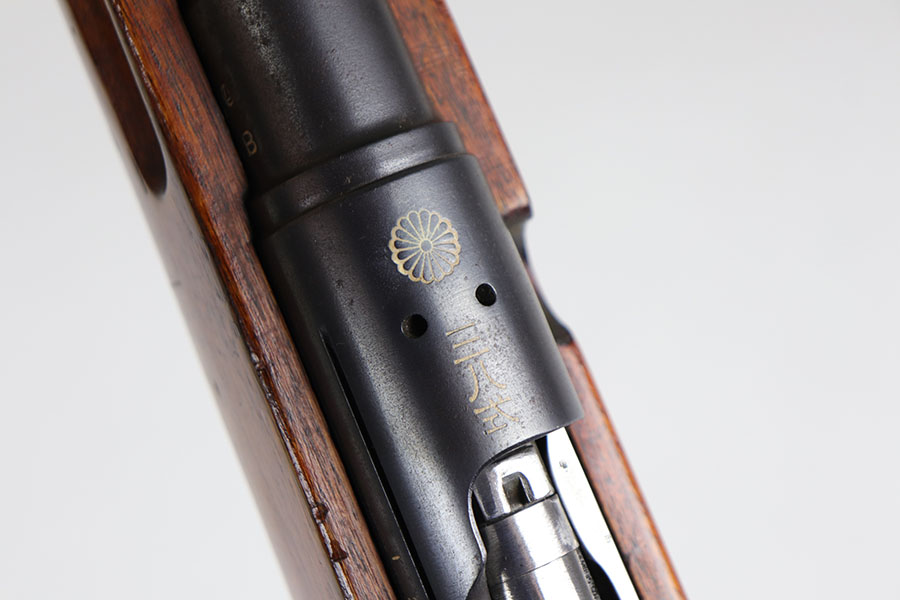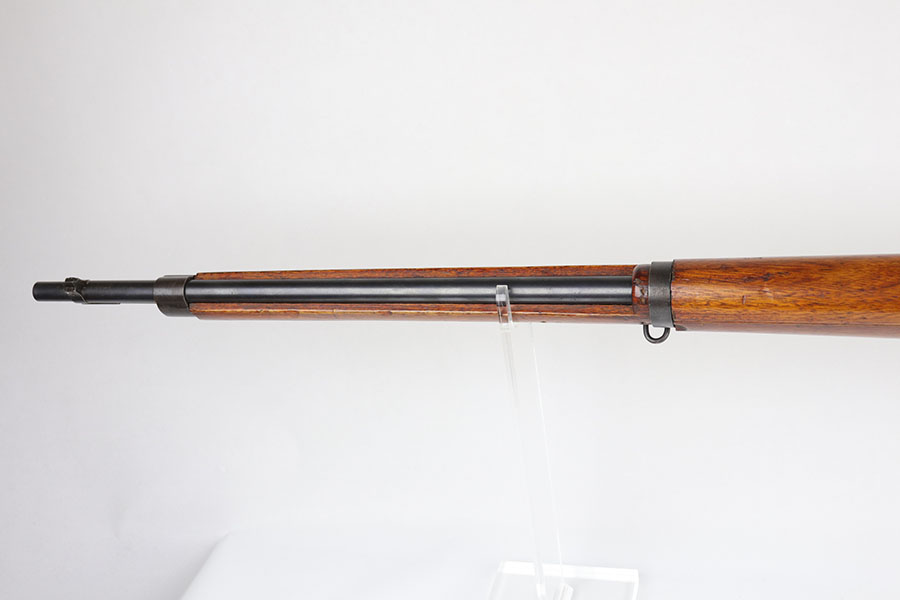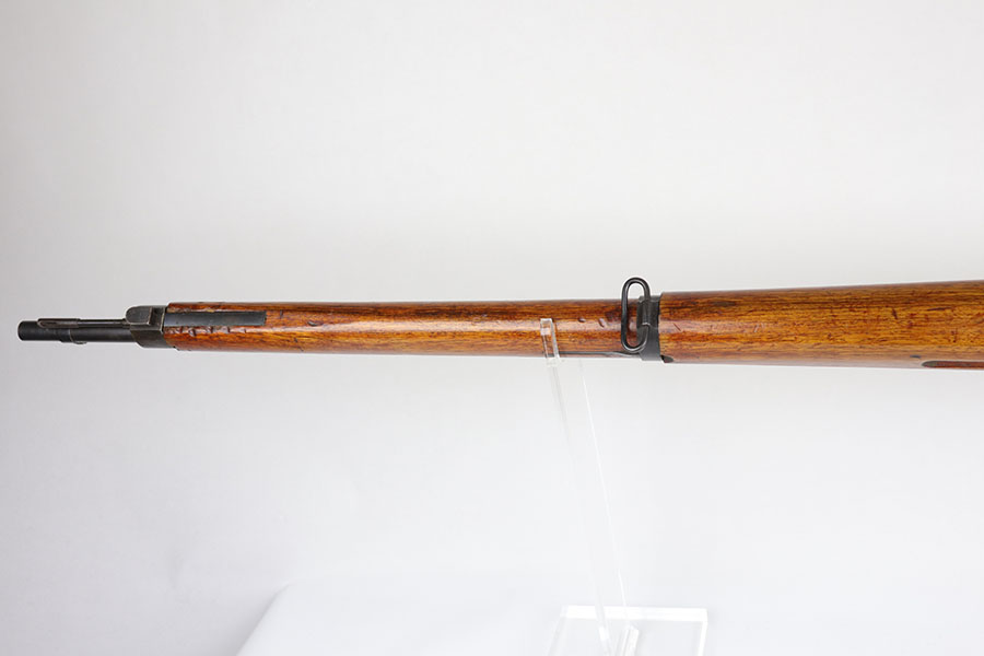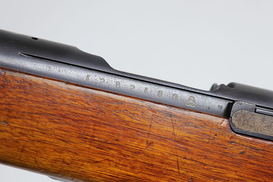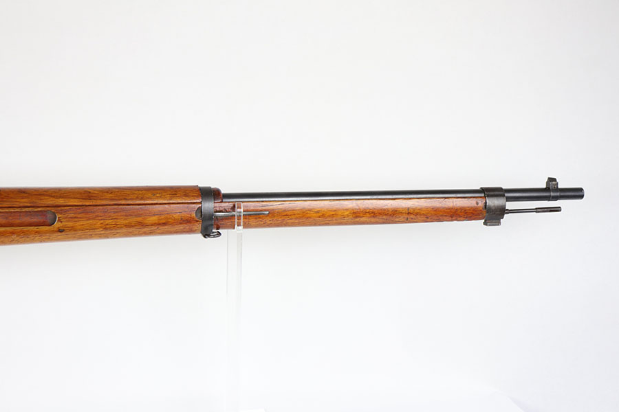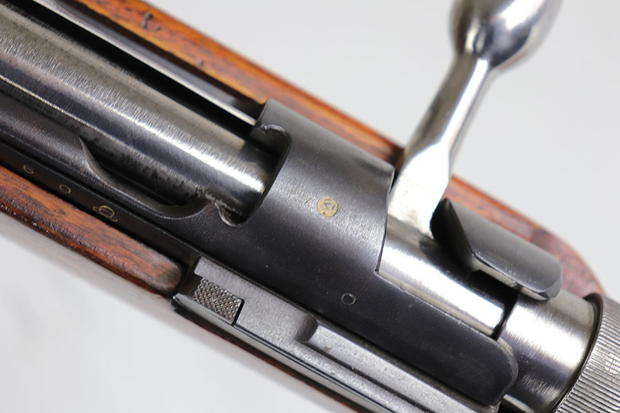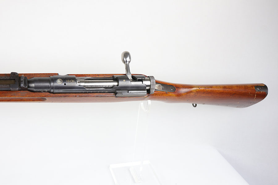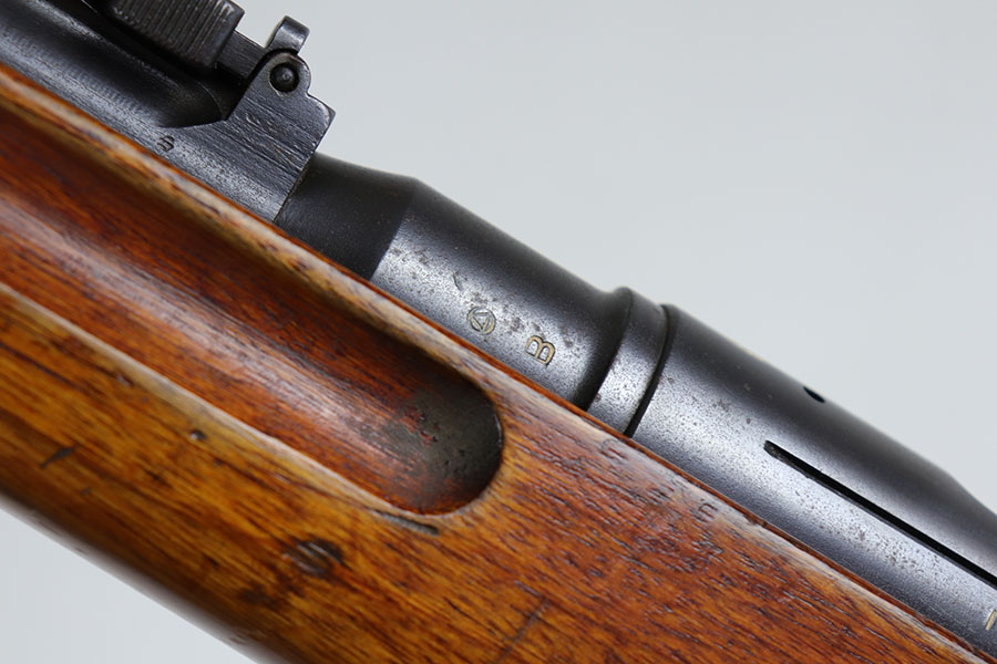 5/5/20 – This is a terrific example of an early Type 38 rifle as produced by the Tokyo Artillery Arsenal in 1918. The barrel proof of the encircled triangle and letter “B” indicates a barrel stress test using a 10% overload. Interestingly, the “B” is believed to denote the supplier of the steel used to make the barrel; with the “B” likely corresponding to Gebrüder Böhler of Austria. Japan imported a large amount of European steel for weapons manufacture through 1914 before WWI began. This particular rifle has matching receiver, bolt and safety. Full mum on receiver with excellent blue on receiver and barrel. The stock has a Kanji marking on the underside and is in excellent condition aside from a notable chip and small, incomplete repair to this chip near the Kanji proof. Bore has strong rifling but frost throughout.