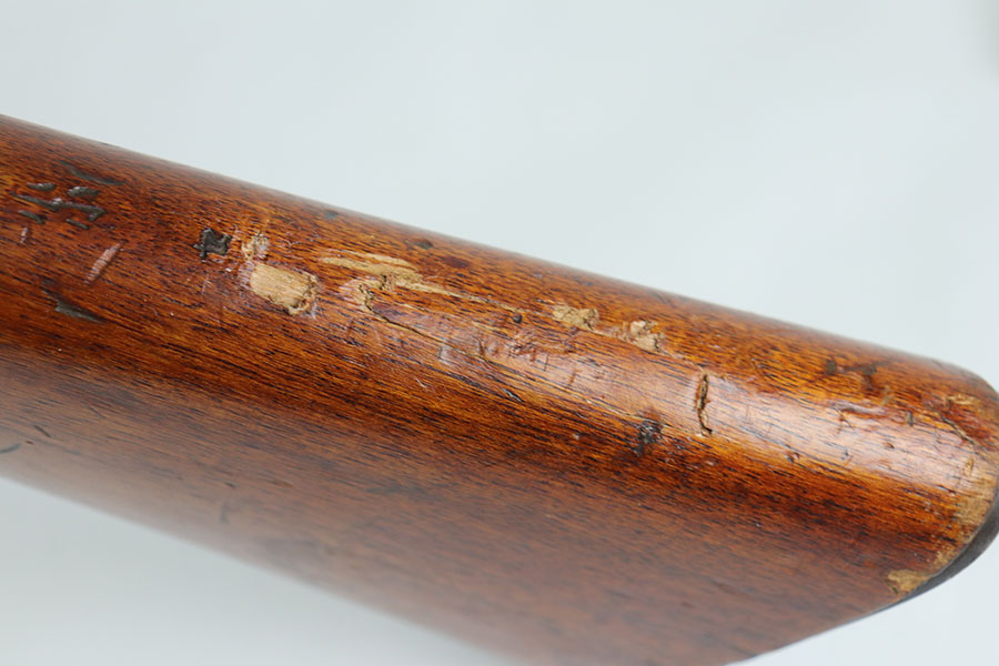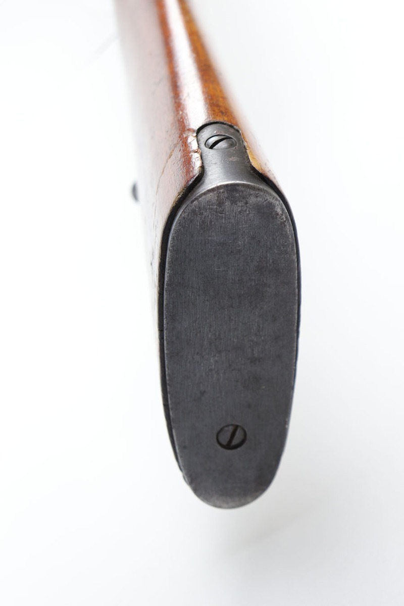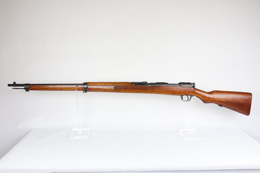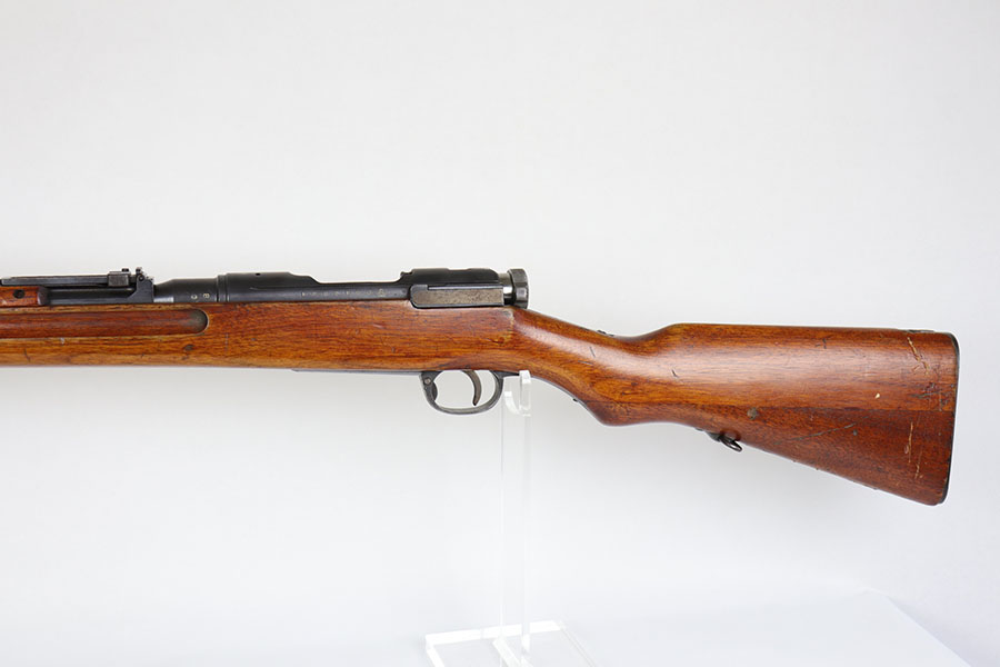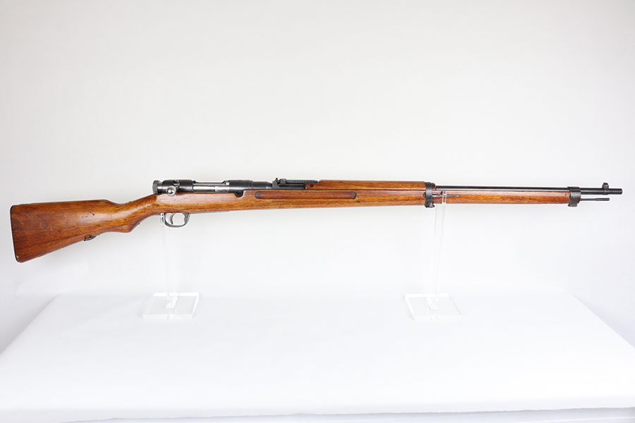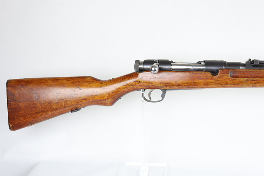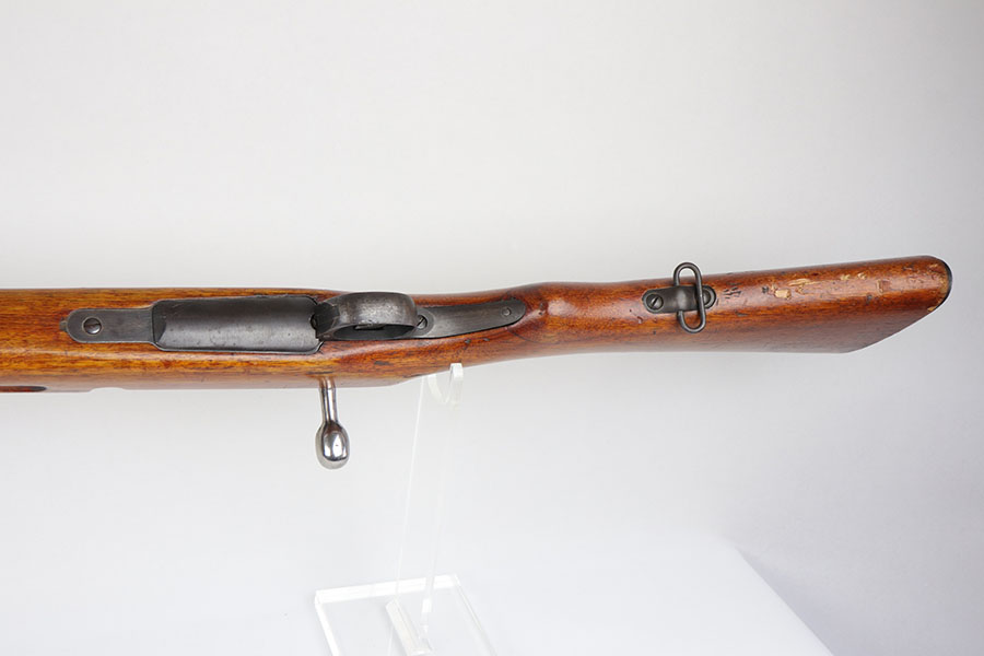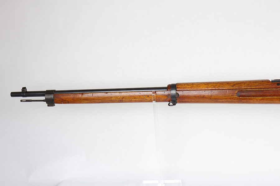 5/5/20 – This is a terrific example of an early Type 38 rifle as produced by the Tokyo Artillery Arsenal in 1918. The barrel proof of the encircled triangle and letter “B” indicates a barrel stress test using a 10% overload. Interestingly, the “B” is believed to denote the supplier of the steel used to make the barrel; with the “B” likely corresponding to Gebrüder Böhler of Austria. Japan imported a large amount of European steel for weapons manufacture through 1914 before WWI began. This particular rifle has matching receiver, bolt and safety. Full mum on receiver with excellent blue on receiver and barrel. The stock has a Kanji marking on the underside and is in excellent condition aside from a notable chip and small, incomplete repair to this chip near the Kanji proof. Bore has strong rifling but frost throughout.