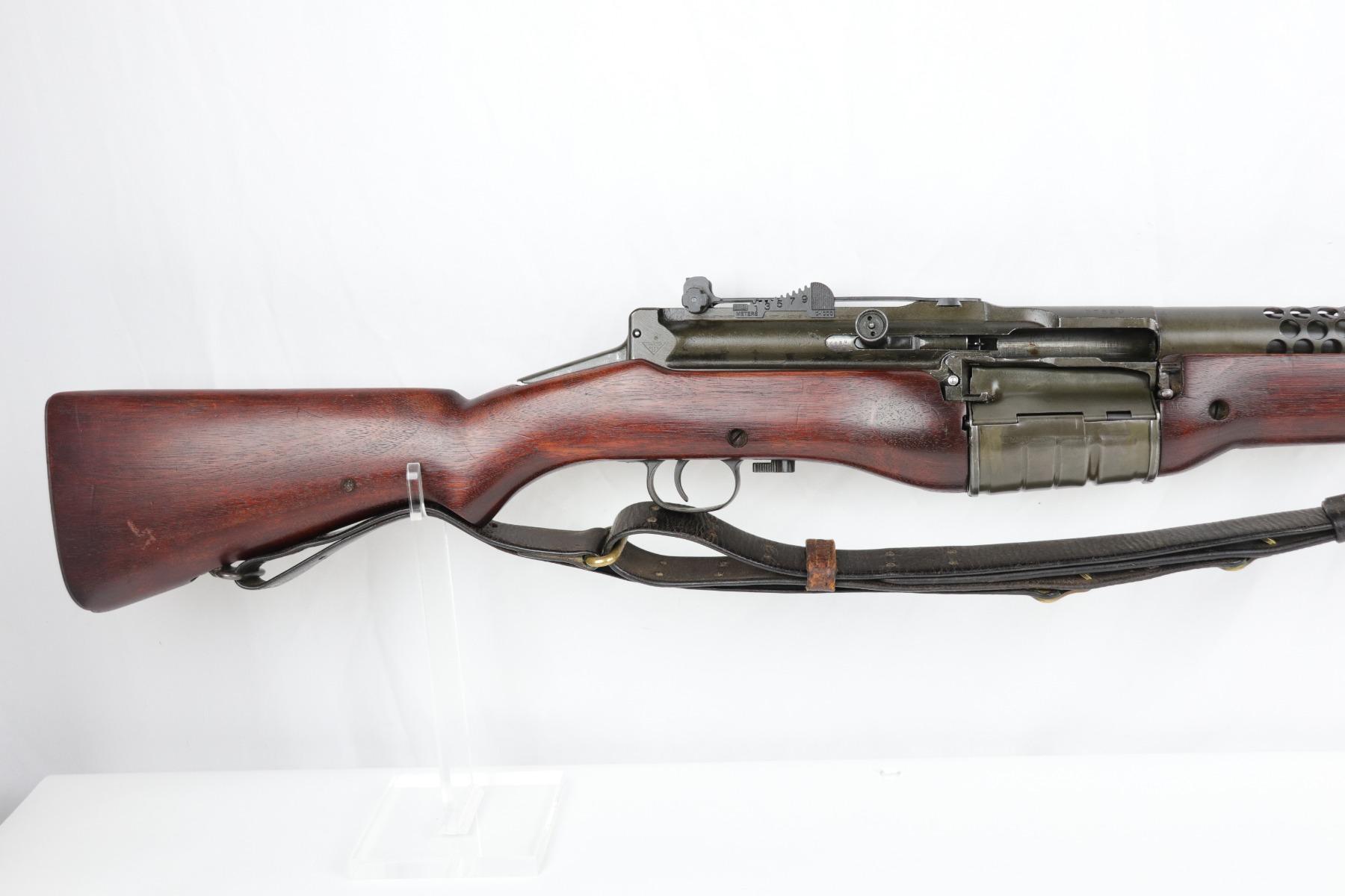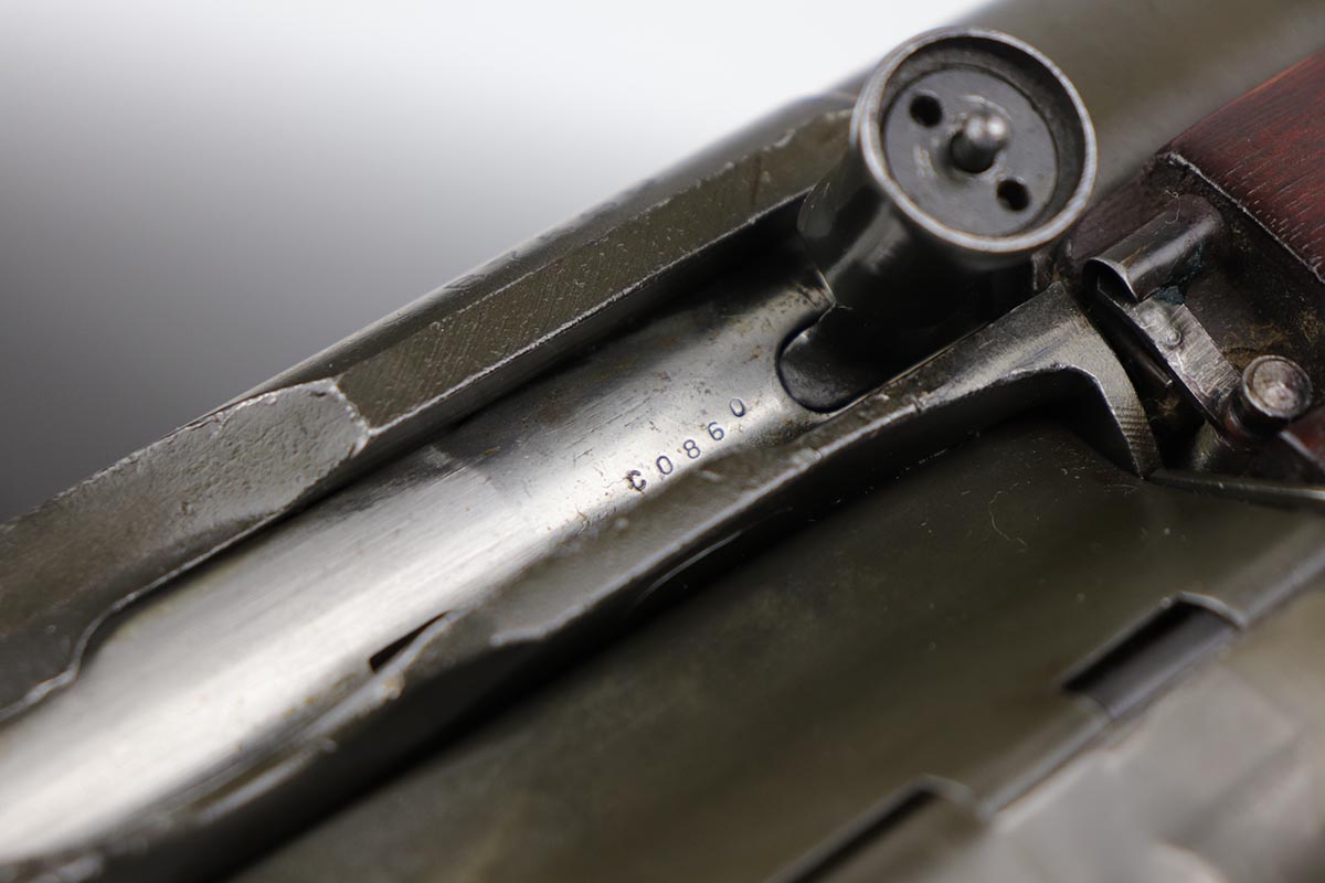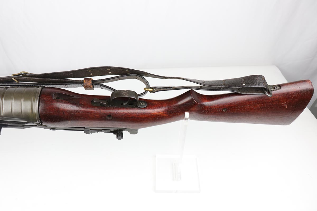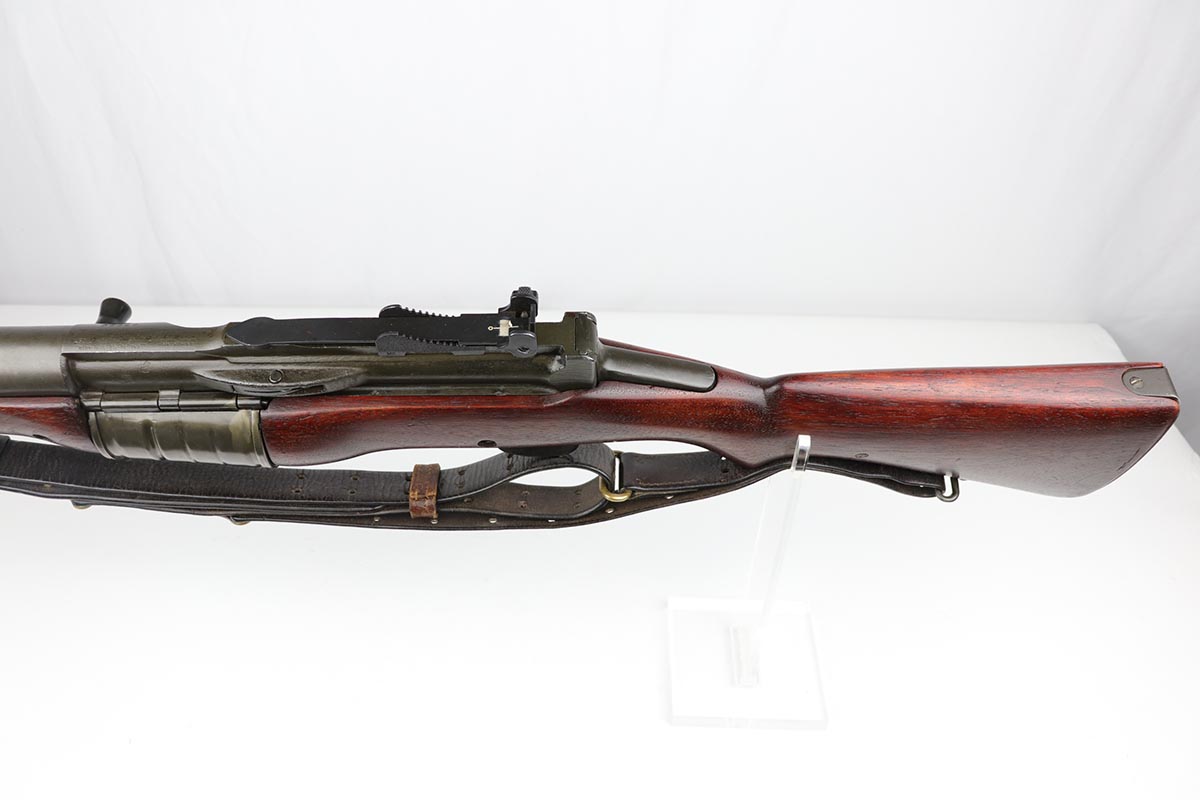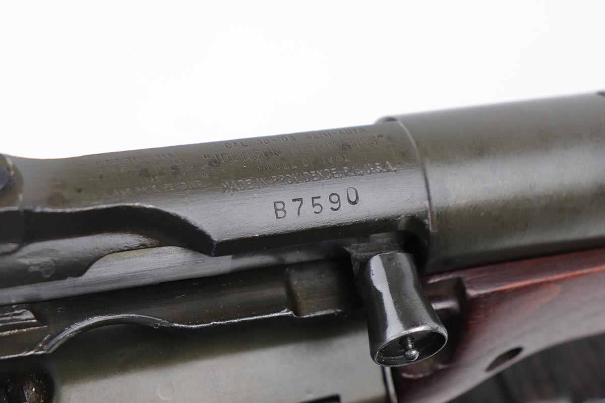 12/16/19 – This is a beautiful Johnson M1941 Rifle from World War II! The finish is all original and shows only a little bit of thinning on the barrel, but is minty otherwise. The wood is excellent with relatively few minor dings and nicks, and no major cracks or chips. Comes with an original sling. Strong bore with only minor frost. Only 20,000 of this model were manufactured!