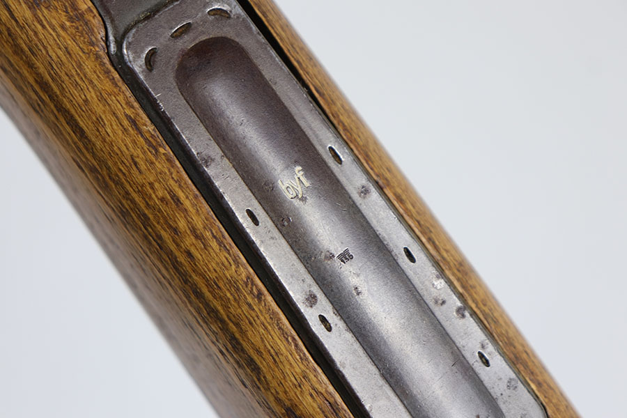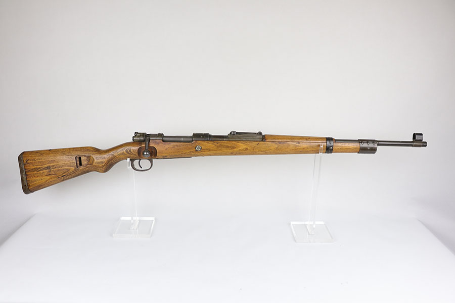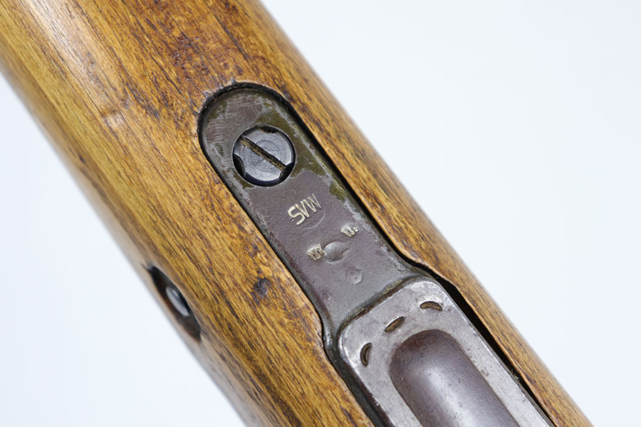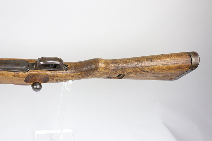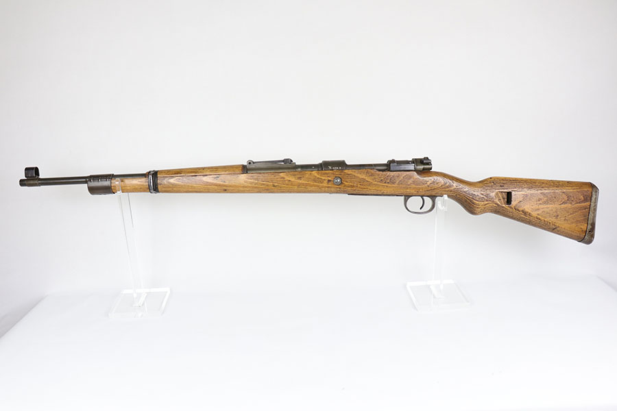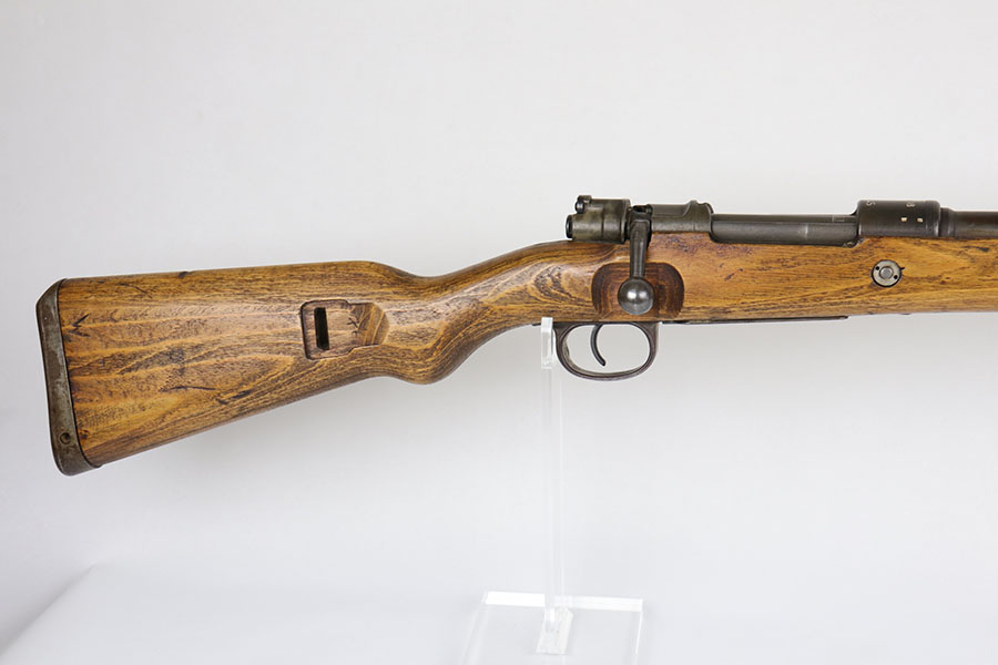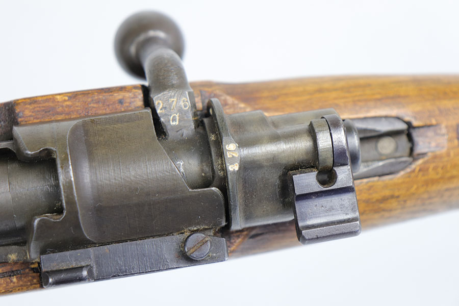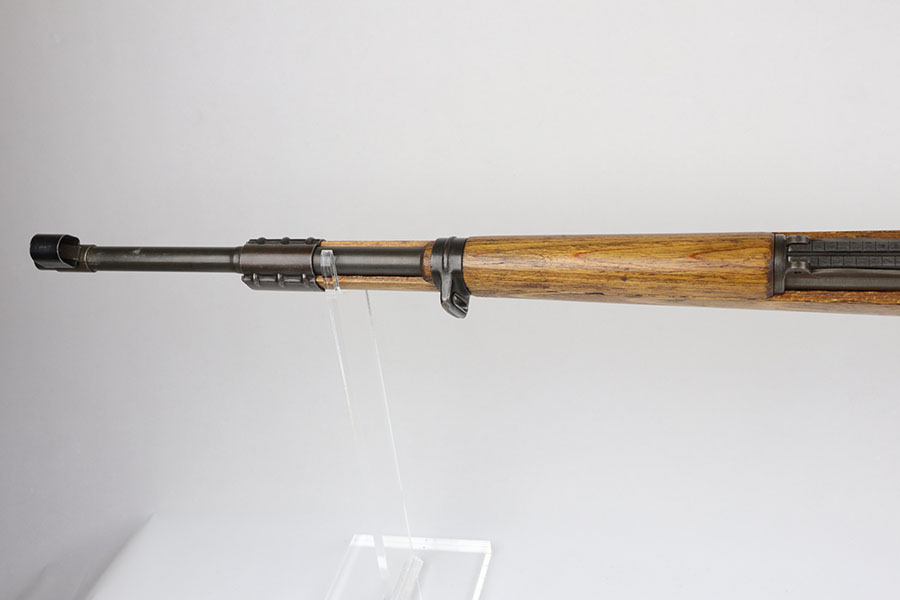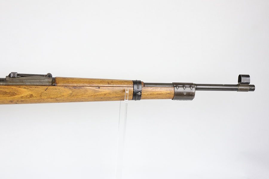 3/16/23 – This is a beautiful example of a Mauser produced K98 from the end of the war, with ‘byf 45’ marking on the receiver. The numbered parts are all matching, though many parts are correctly unnumbered given it’s a late war example. The finish on the receiver and barrel is excellent, with just a couple small spots of finish loss on the barrel (near the muzzle end). Trigger assembly has some patination and thinning of the finish. Stock has sharp waffenamts on right side and underside. No major cracks or chips. Minty bore.