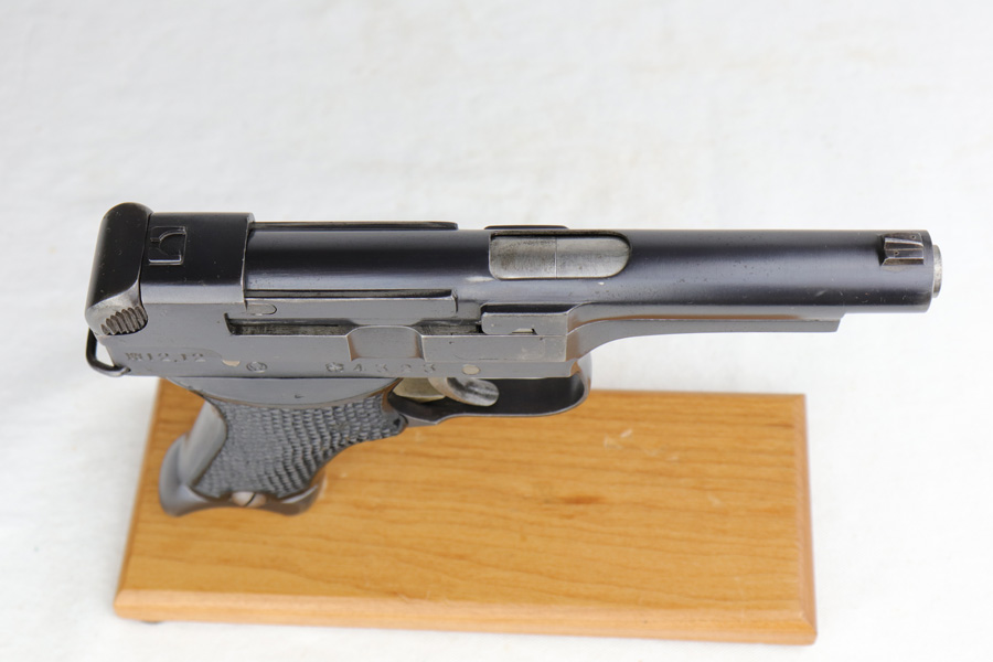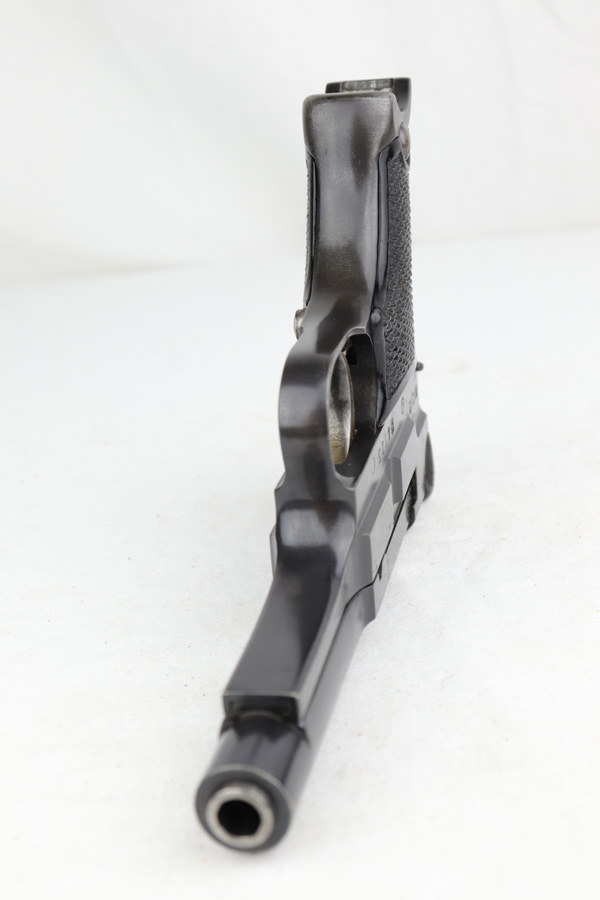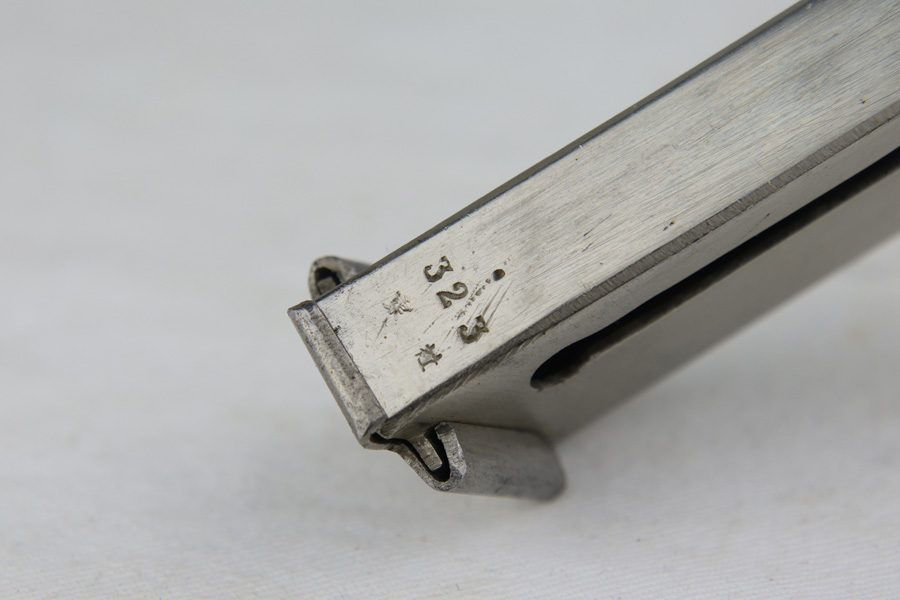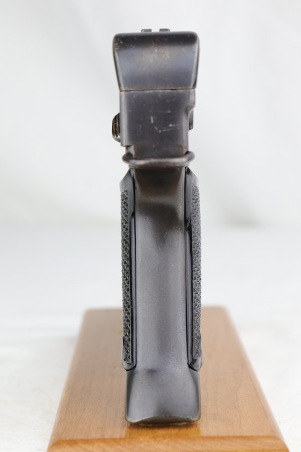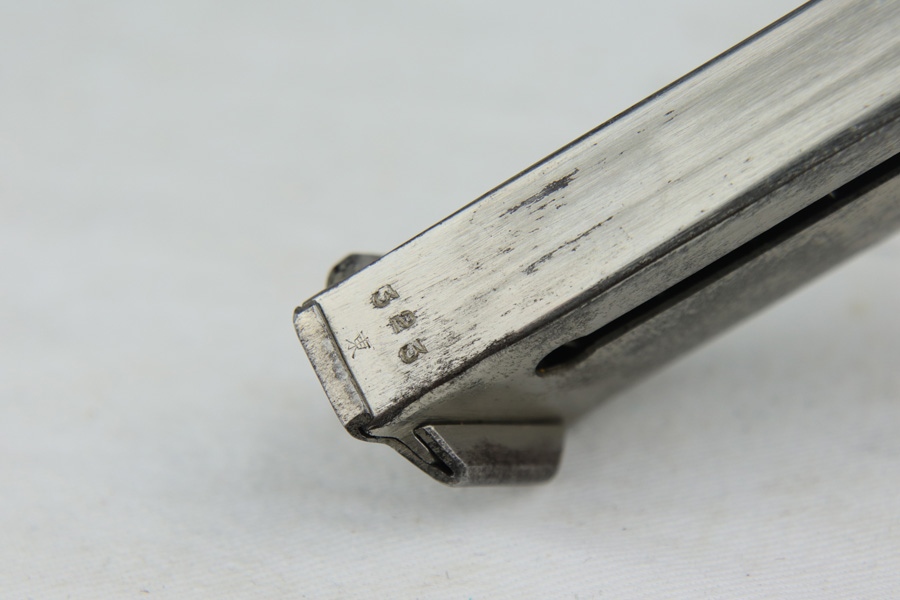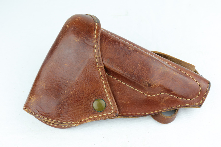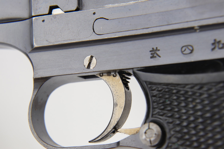 1/15/19 – This is one of the more complete, early Type 94 Japanese pistol rigs that we have come across in years. It’s a third year production, made in December of 1937, and dated year 12.12 of Showa Emperor reign. The gun retains 95-97% of its original blue, with just minimal holster wear present as per pictures and some patina on the straps. There is no pitting anywhere. It is complete with an early leather holster with rarely seen shoulder strap, dated inside the lid, in outstanding condition. The pistol has both matching magazines, though they appear to be from separate arsenals, and an original lanyard cord. Excellent bore and grips. Only about 71,000 Type 94 pistols were made over a period of 10 years, earmarked primarily for air force pilots and tank crews, compared to nearly half a million of T14 pistols made. Early, complete examples in such outstanding condition are nearly impossible to find.