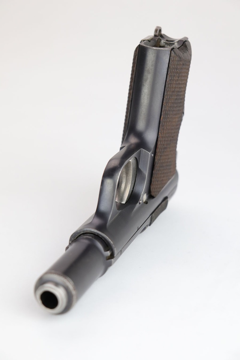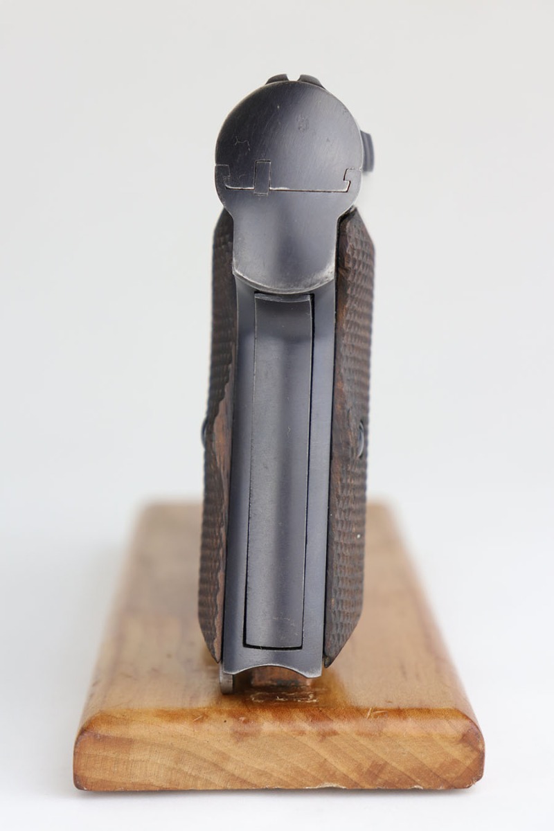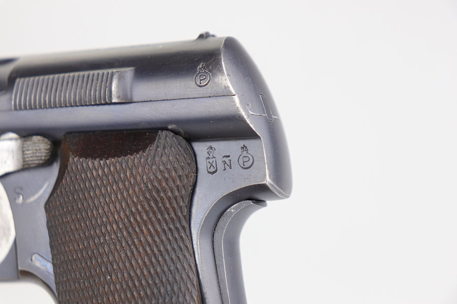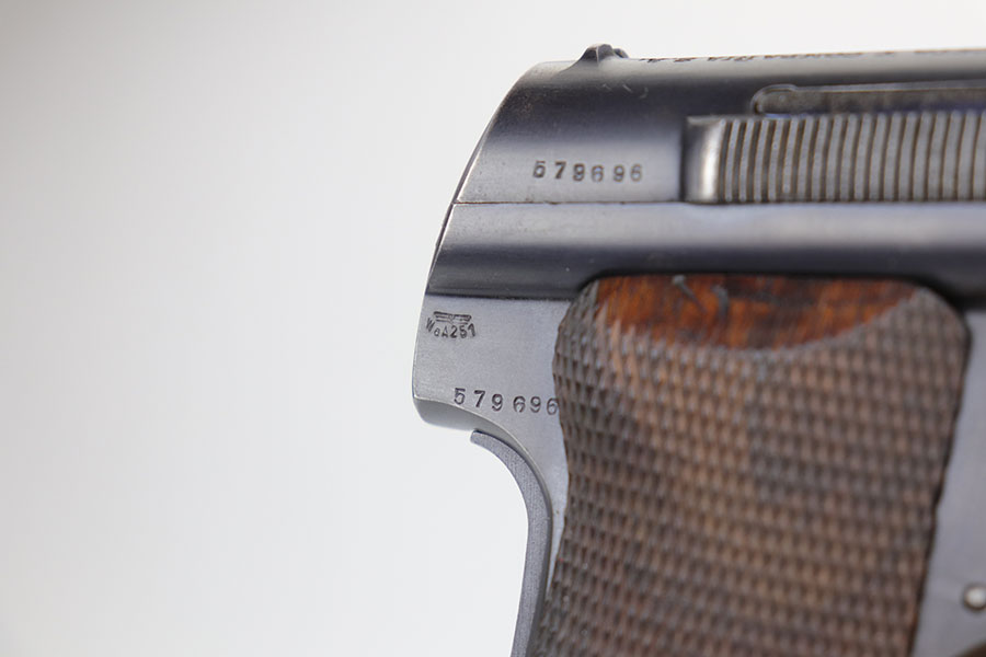 4/3/20 – This is a beautiful Astra 300 that was manufactured in 1943 and then shipped on June 11th to the Germans as part of an army contract order. It has 98% of the original blue, with minor high edge wear on the slide and back of frame. Excellent bore and grips. Correct magazine.