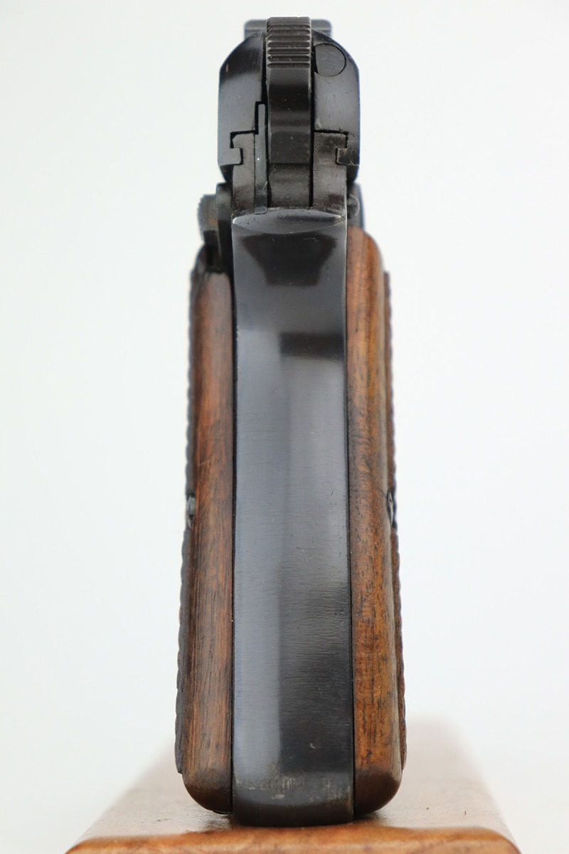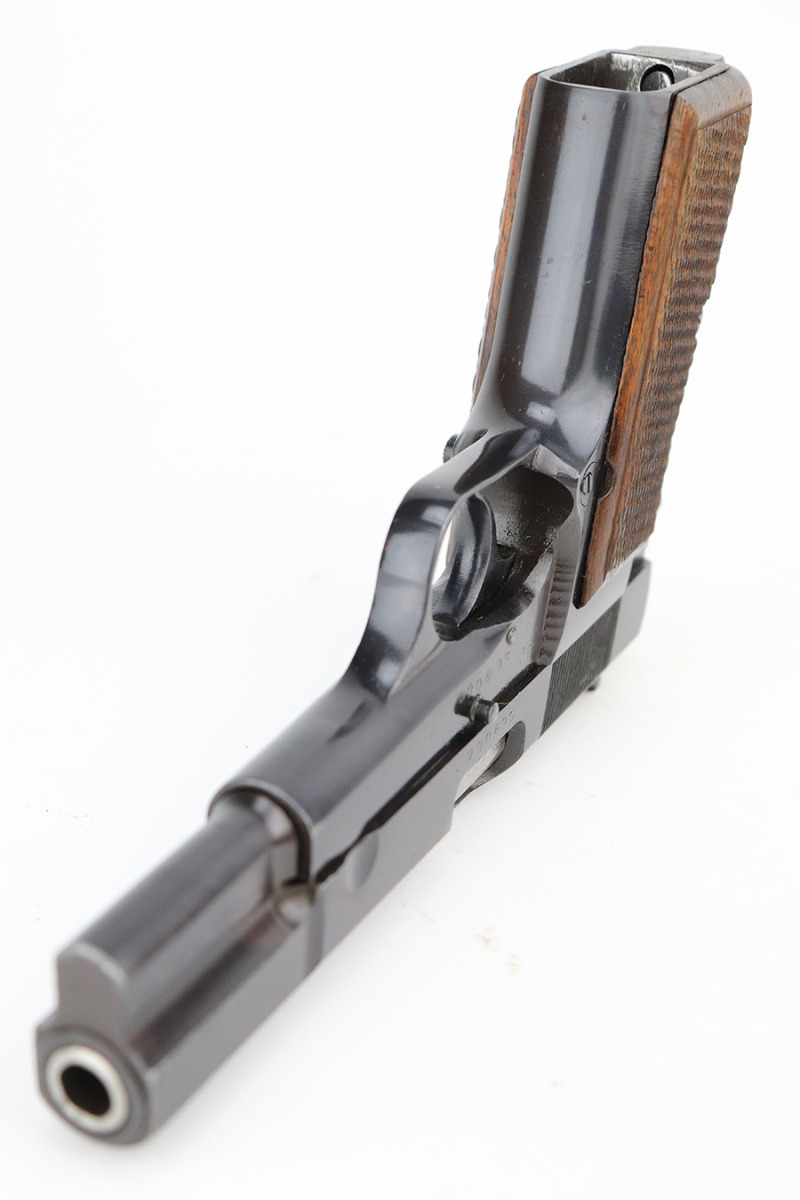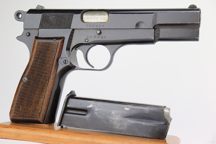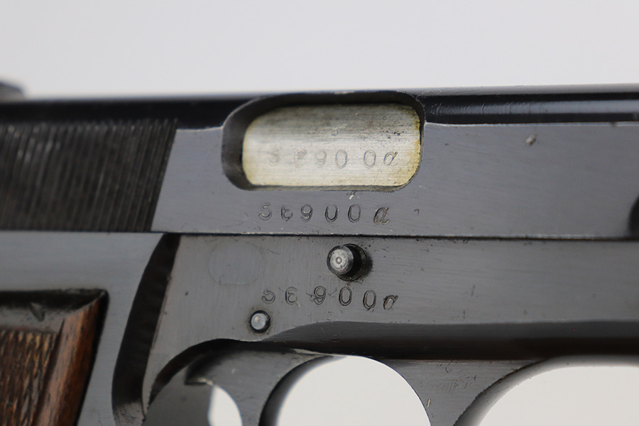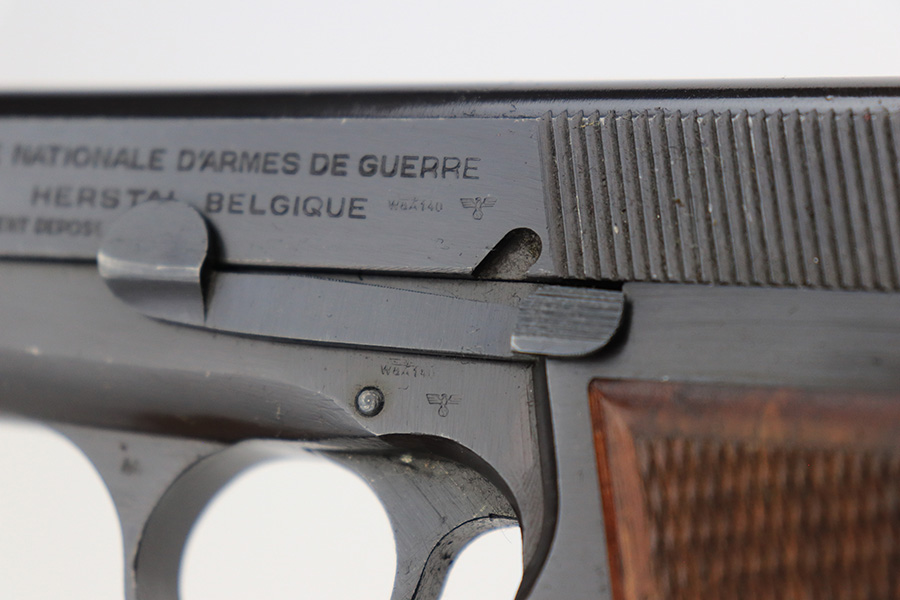 6/5/23 – This is a beautiful example of an FN Browning High Power issued to the Nazi military during WW2. It is all matching and has the proper “Waffen 140” military acceptance proofs. It has retained nearly all of its original finish with just hints of wear around the muzzle and on the high edges and a few tiny handling marks here and there. Fitted with minty period-correct wood grips and comes with one un-marked magazine. Excellent, shiny bore with strong rifling. This gun comes from the personal collection of Tom Whiteman. We can provide a certificate of authenticity upon request.