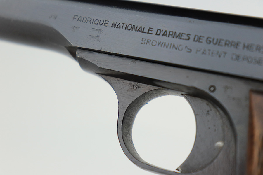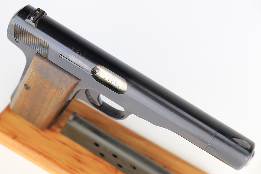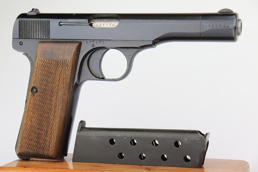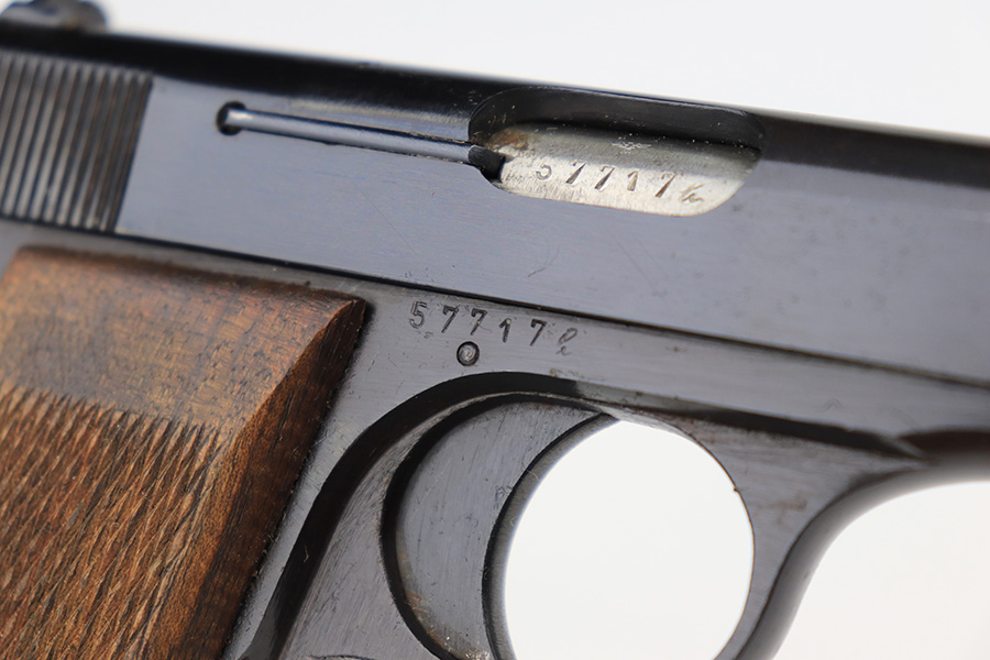 3/15/23 – This is a beautiful example of an FN Browning Model 1922 issued to the Nazi military during WW2. It is all matching and has the proper “Waffen 140” military acceptance proofs. It has retained virtually all of its bluing with no real signs of finish loss. Excellent period-correct wood grips. Comes with one magazine. Mint bore.