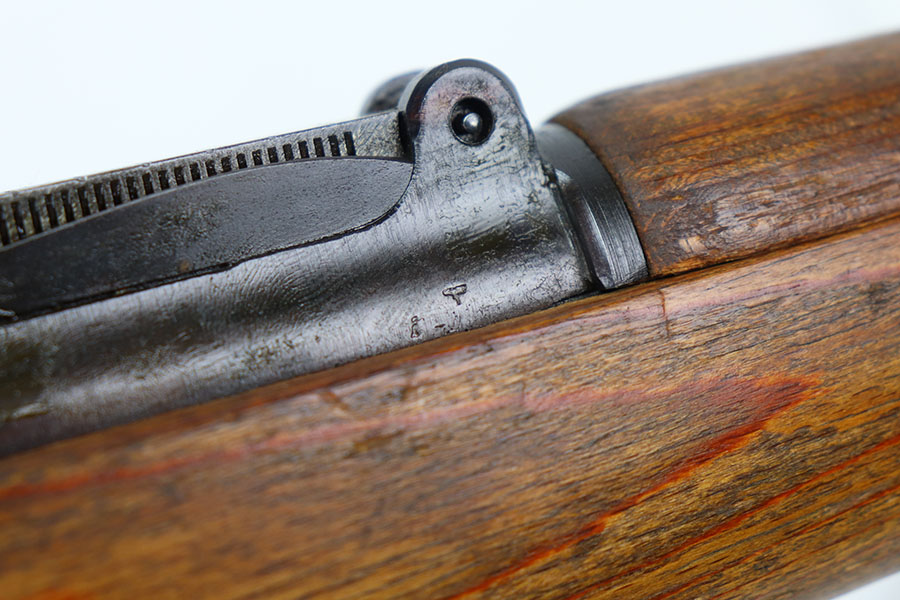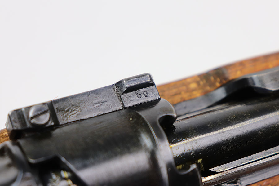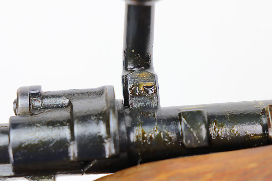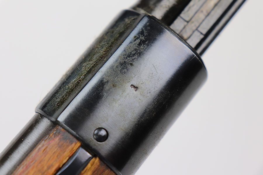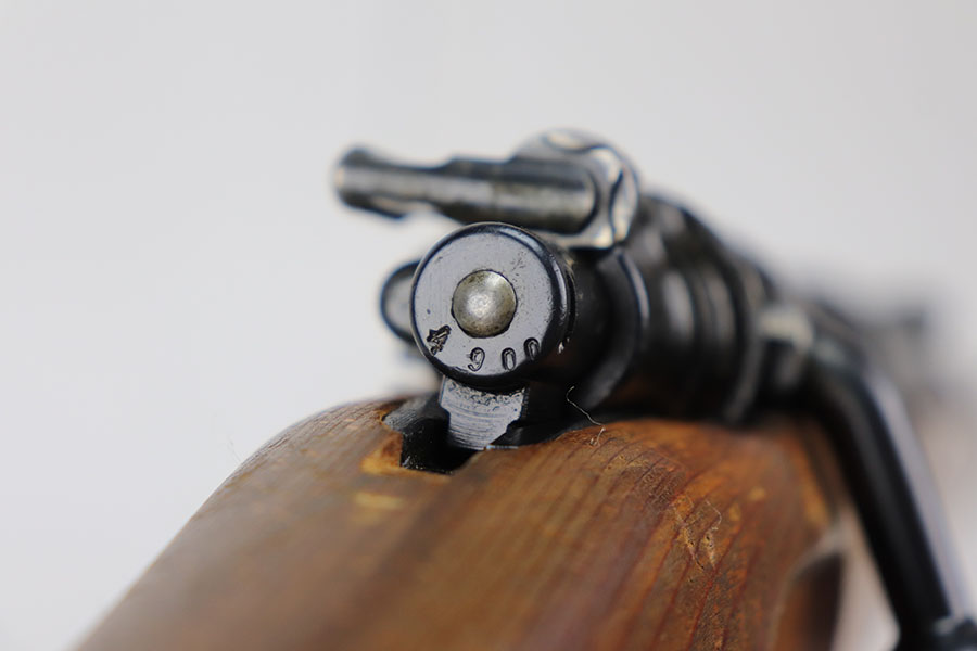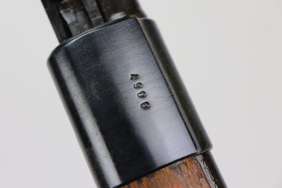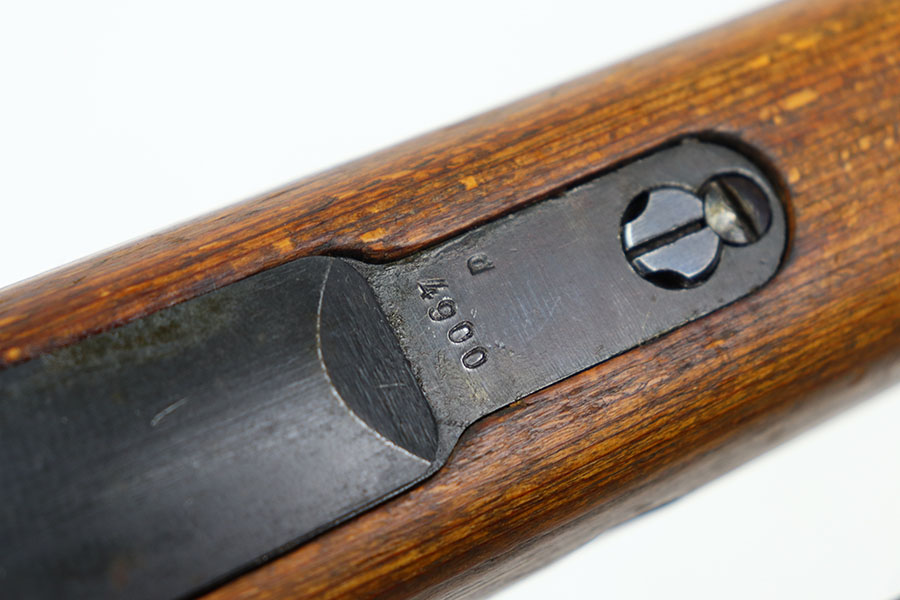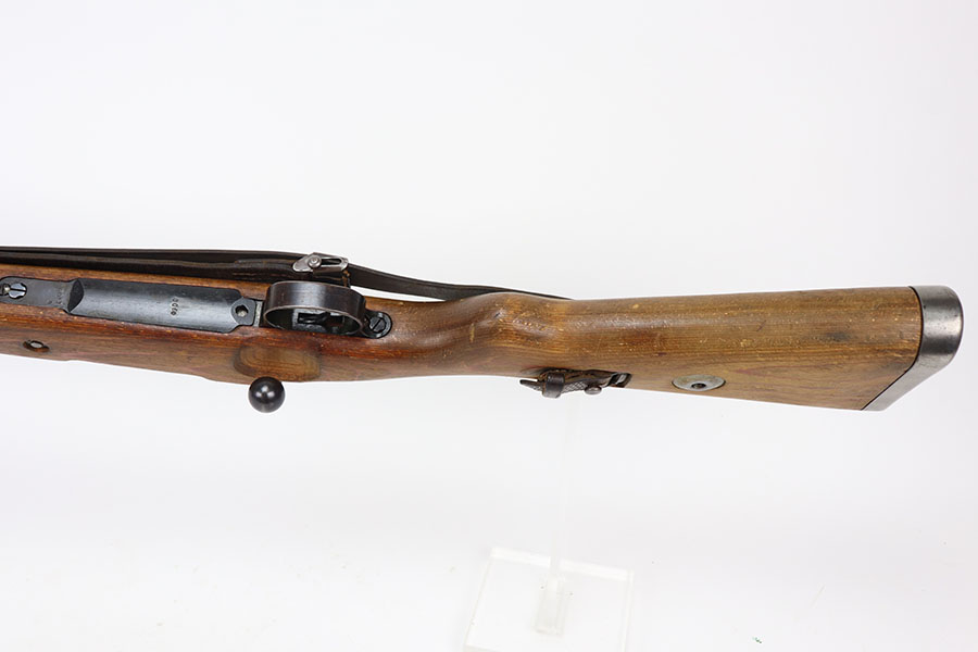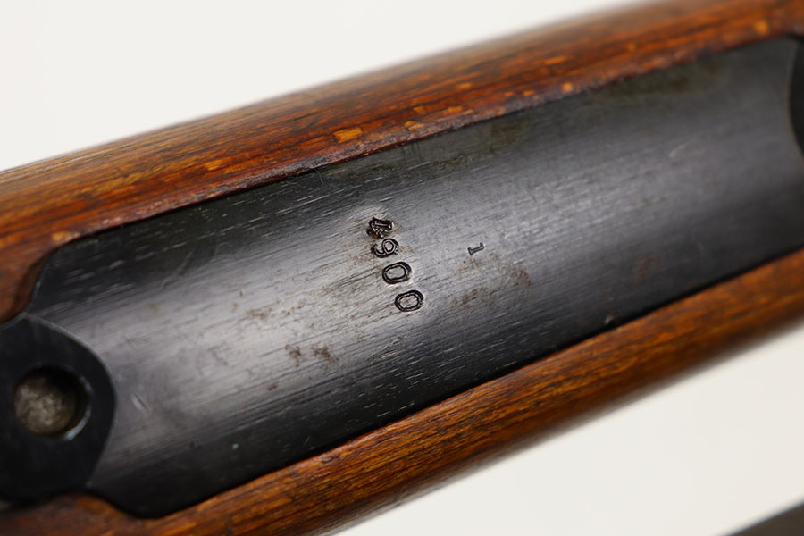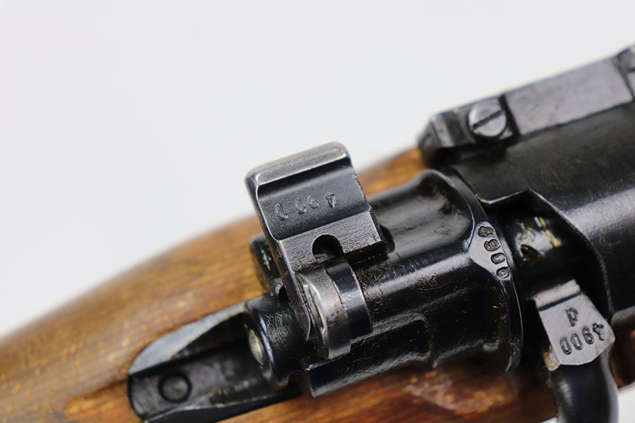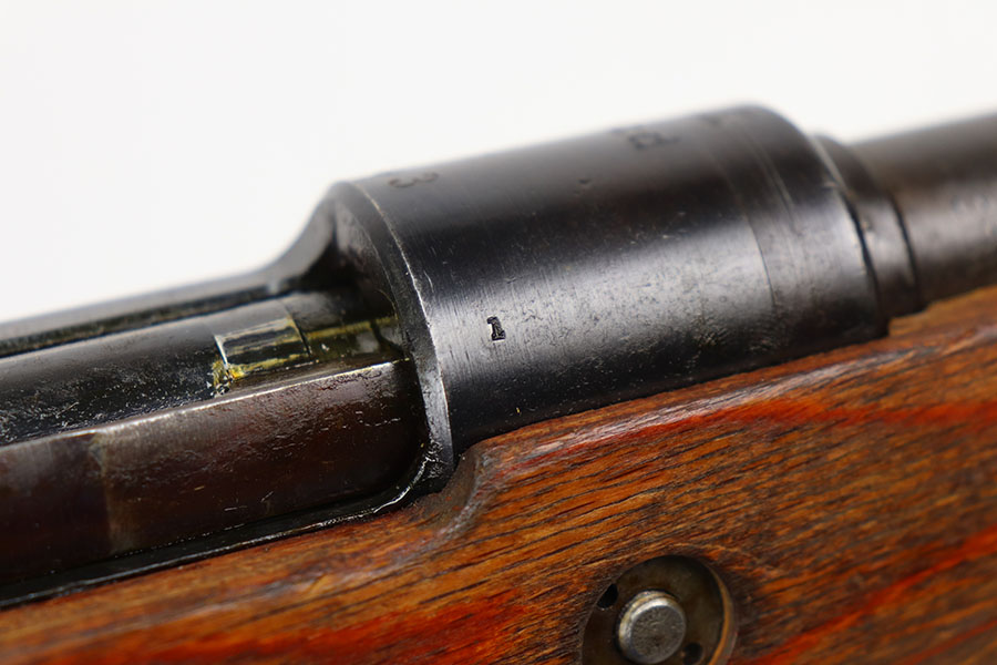 4/26/21 – This is a beautiful Nazi Model 98K rifle that was made in 1943 at the Gustloff Werke factory. All matching numbers with hardly any bluing loss on the metal parts, just a little bit of wear on the trigger group. Matching bands, trigger assembly, receiver, barrel, bolt assembly, rear sight. Includes original sling, sight hood and cleaning rod. Heer Army proof on stock, and ‘c’ on underside. Strong, shiny bore with only minor signs of use.