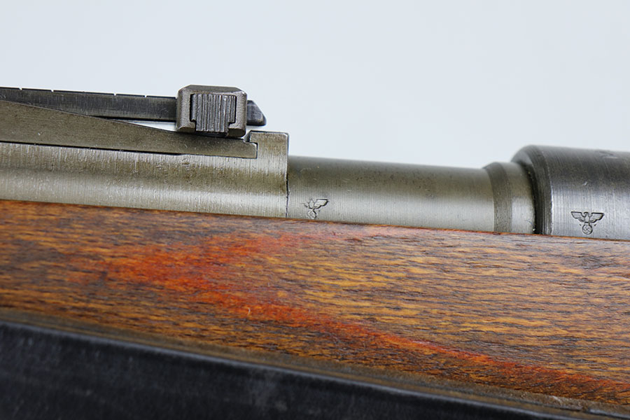 4/17/20 – This is a gorgeous Nazi issued K98 that was made in 1945 at the French Mauser factory. It’s all matching and original with minimal wear to the original finish. There’s a bit of finish loss on the barrel/front sight, but the receiver is immaculate. The rifle also has a very nice mix of blued and phosphate parts. Original sling and sight hood are present. Stock is in fantastic condition with sharp waffenamt on right side. Minty bore. Tough to find a much nicer example of this variant.