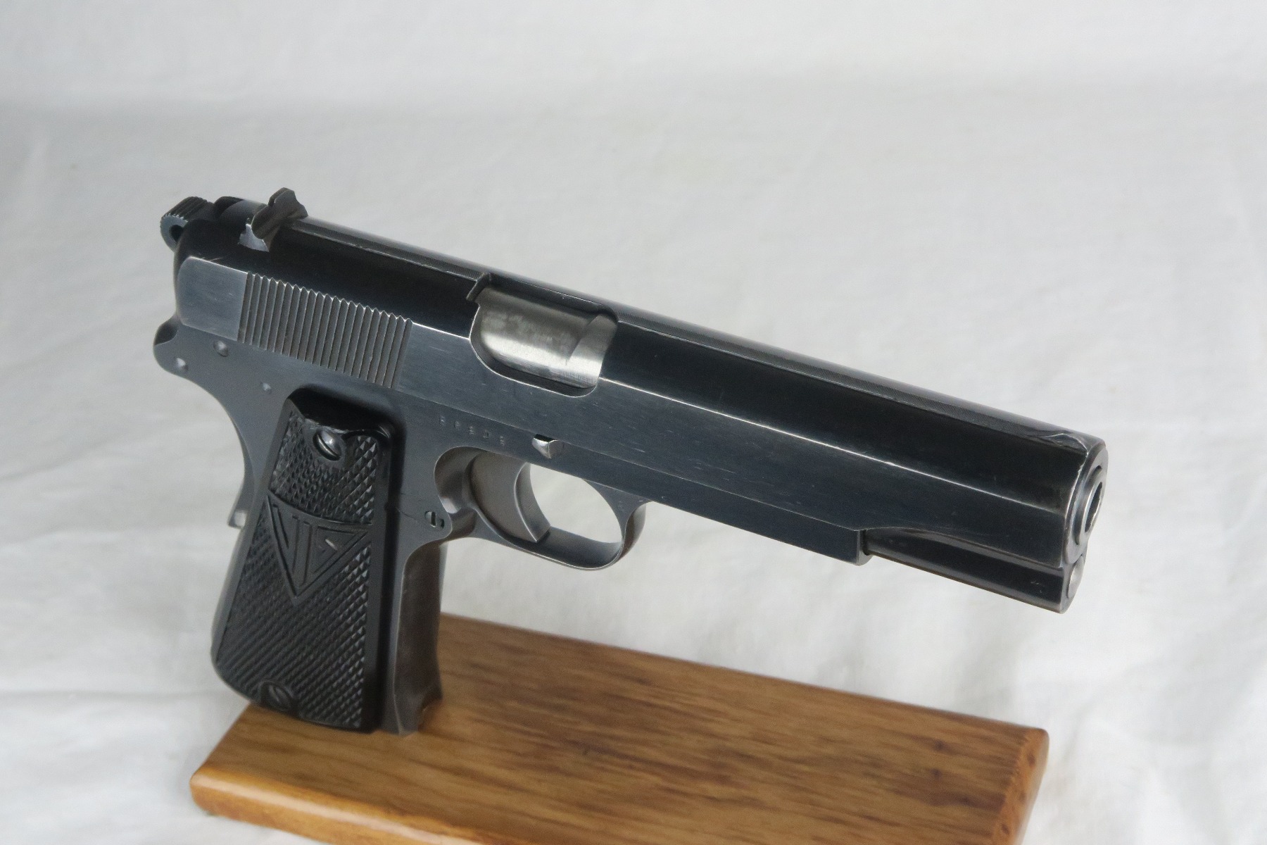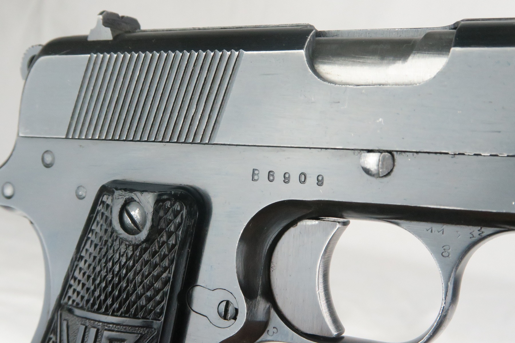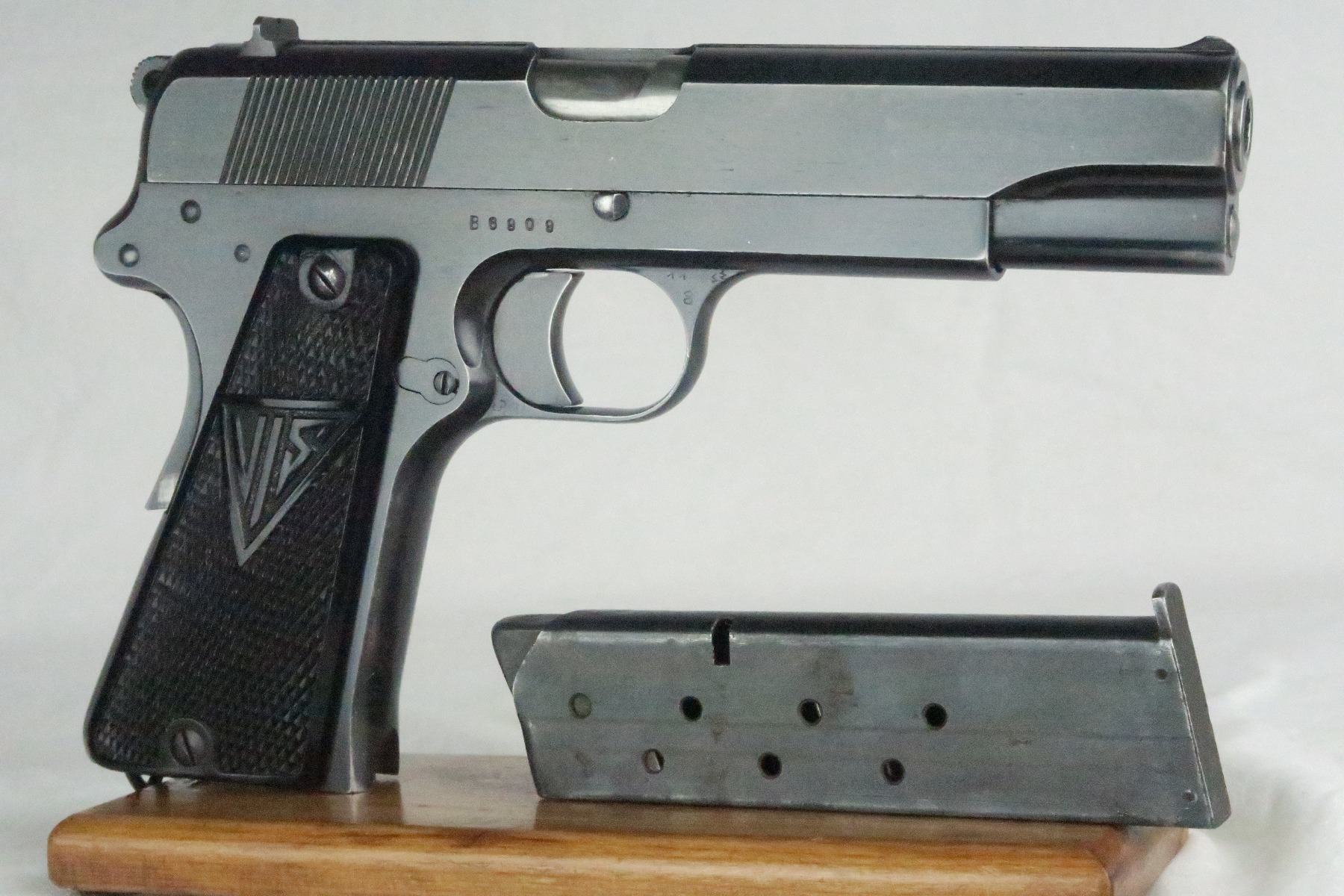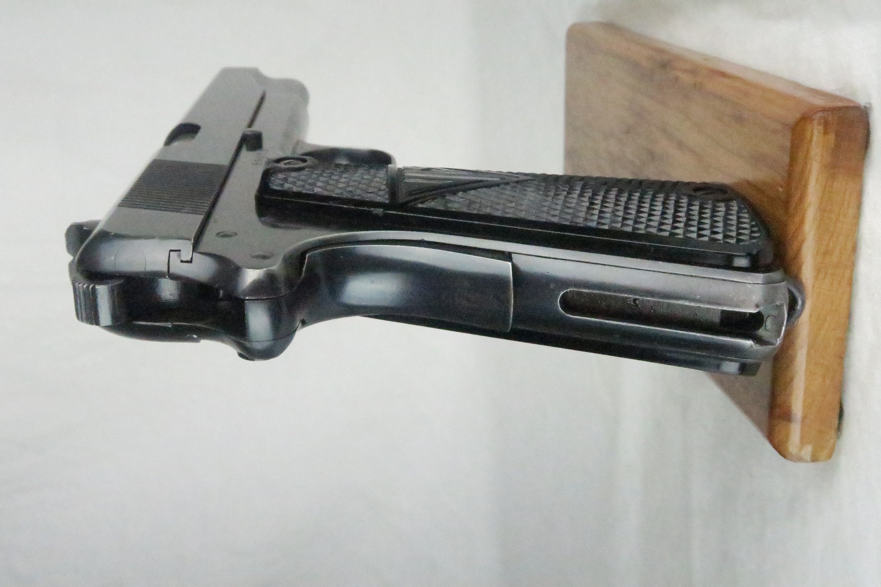 12/20/17 – This is a near-mint Radom vis 35, in all original condition. It is the early slotted variation – a grade I, subvariation 3 pistol, with disassembly lever and stock slot. The serial range for these pistols indicates about 47,000 were produced, and the serial puts this one on the earlier end of that range. The finish is about 98+%, with just very minor muzzle wear and some wear in the stock slot. Excellent waffen marked magazine, and very nice grips that are correct for this variation. Fantastic bore.