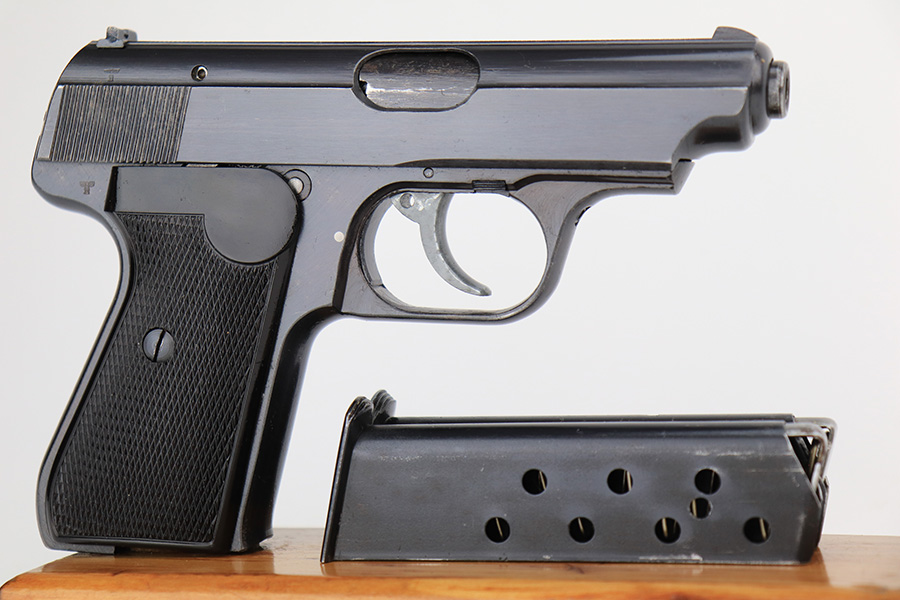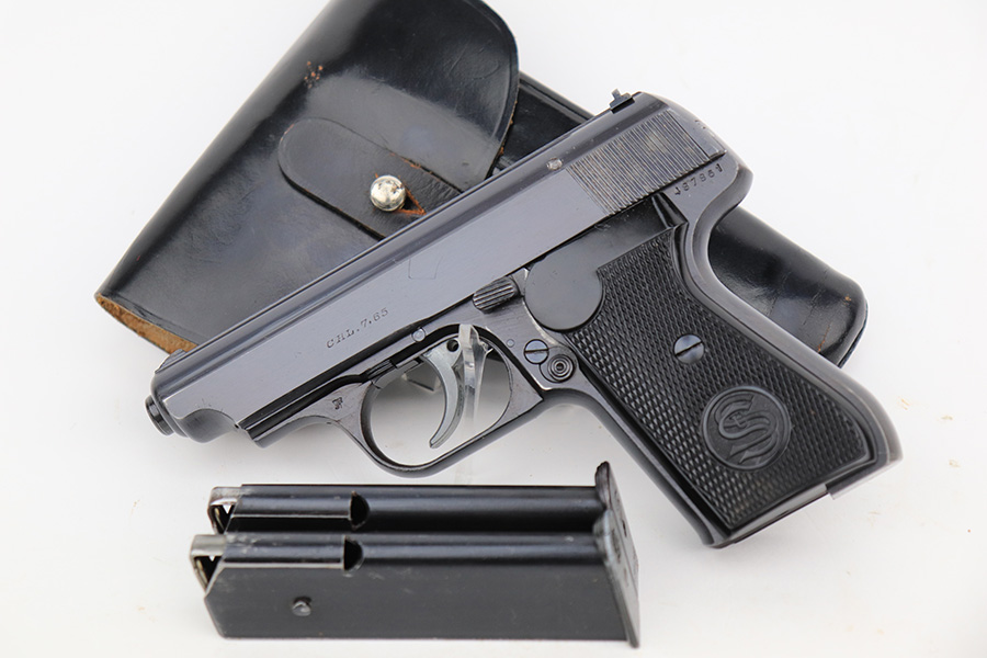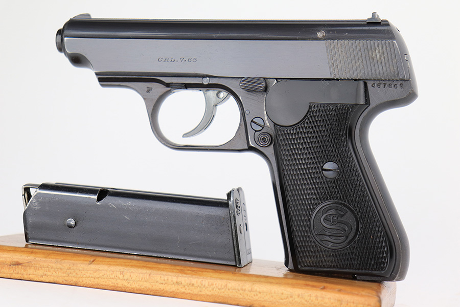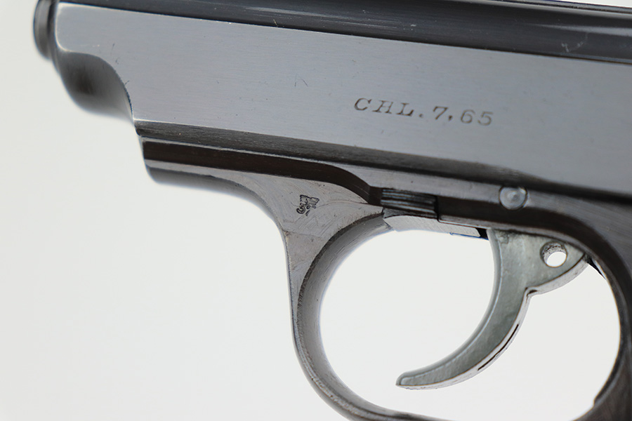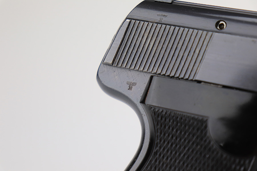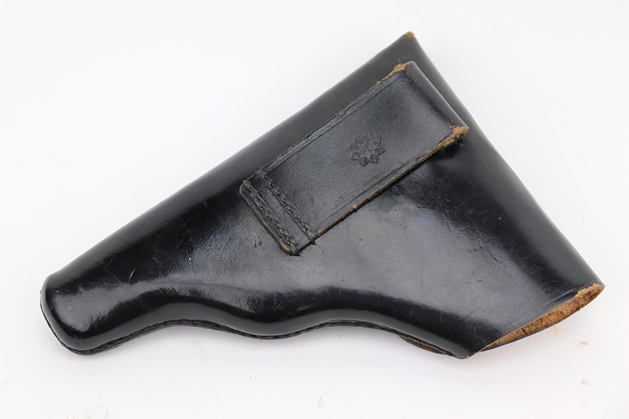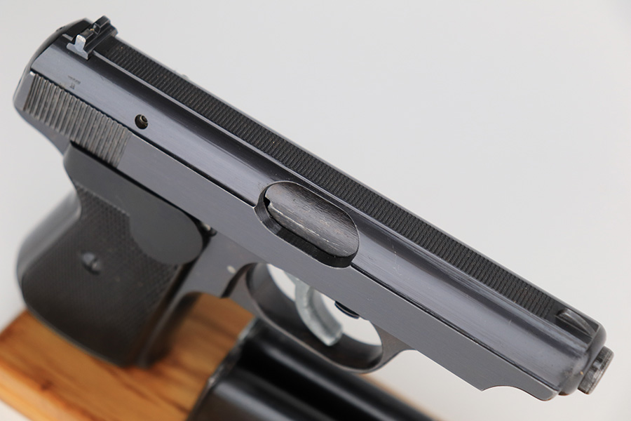 5/8/23 – This is a beautiful example of a Sauer 38h issued to the Nazi military during WW2. It is all matching and has the proper “Eagle 37” military acceptance proof on the trigger guard. It comes as a rig with a minty black leather holster and two proper magazines. The gun itself has retained nearly all of its original finish with just hints of wear on some of the high edges and a hint of freckling on the back strap. Excellent period-correct black bakelite grips – one tiny chip on the top edge of the left panel. Mint bore.