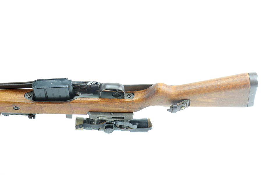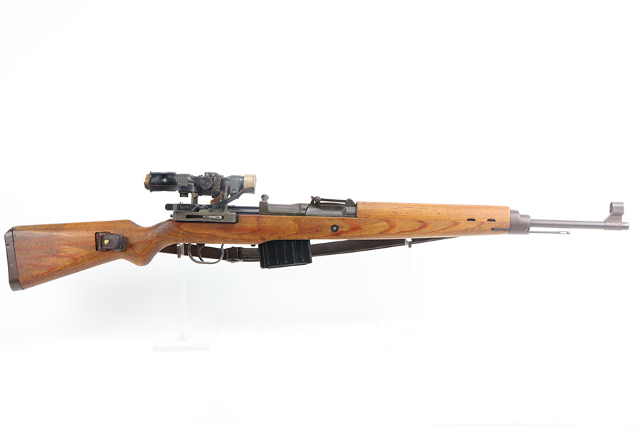 2/16/24 – This is a gorgeous, minty example of a Walther K43 sniper rifle issued to the Nazi military in 1945. The gun is all matching, has waffen military proofs throughout, and has the proper “ac 45” Walther factory code. It comes with an original ZF4 sniper scope (optics are just slightly cloudy), original scope mount, eye cups, cleaning rod, sling, and one magazine. The gun has retained virtually all of its finish with tiny handling marks and small dots of discoloration here and there. Waffen-proofed stock has been sanded and there are surface cracks around the wrist. Mint bore. Repainted mag.