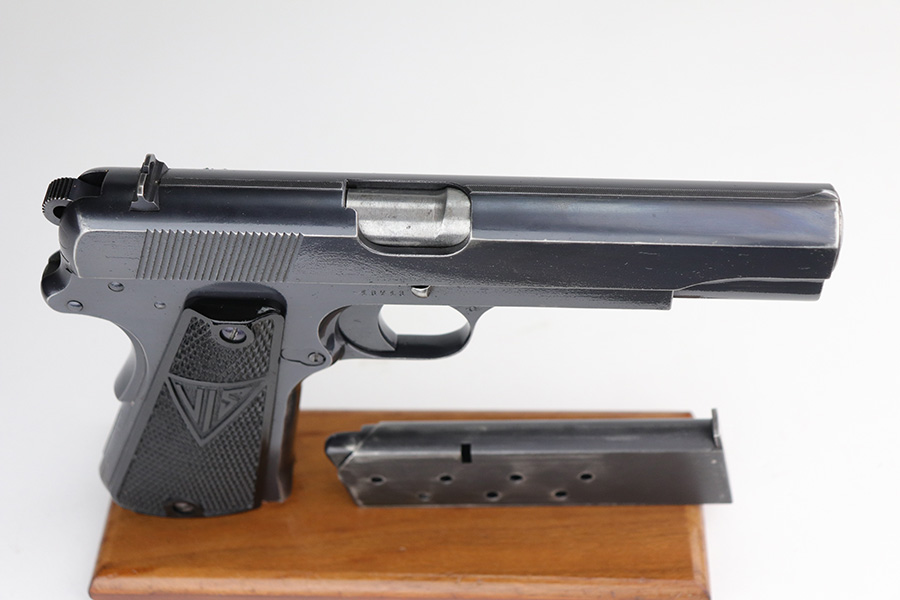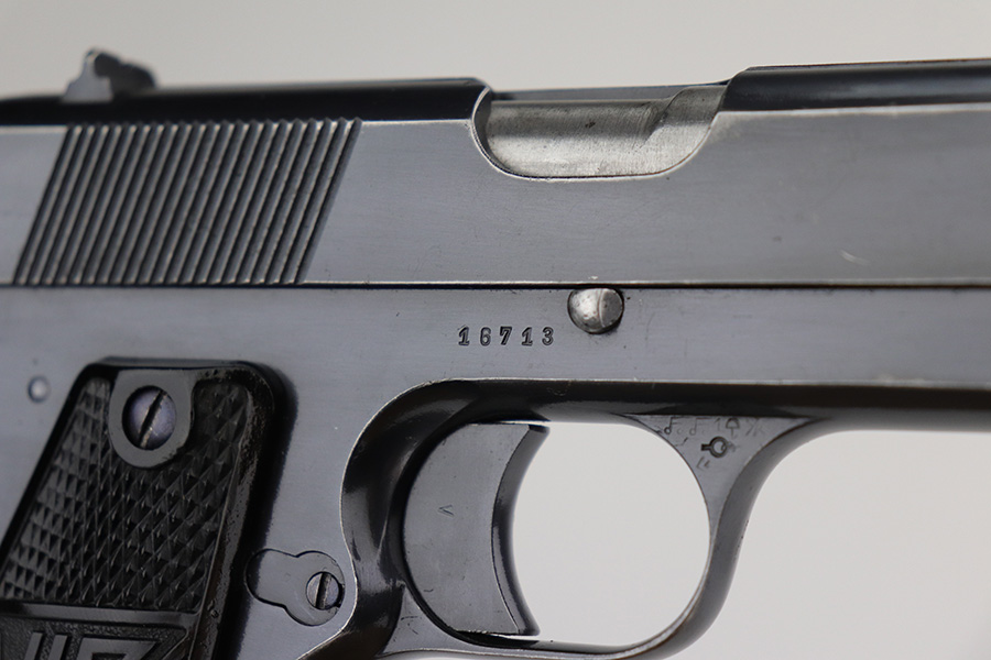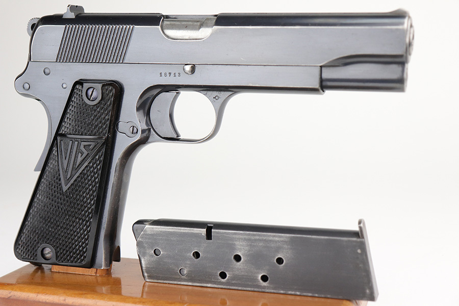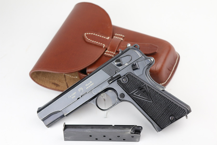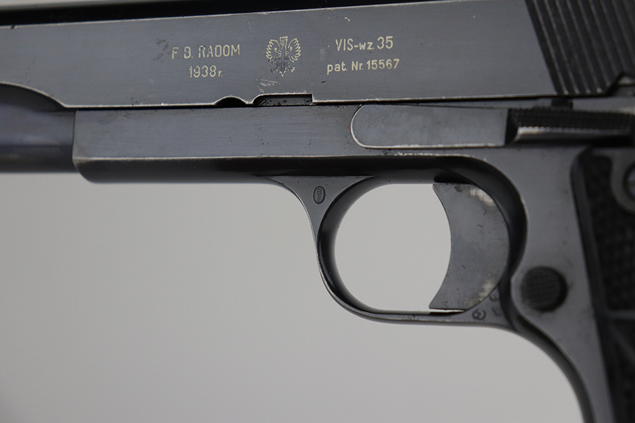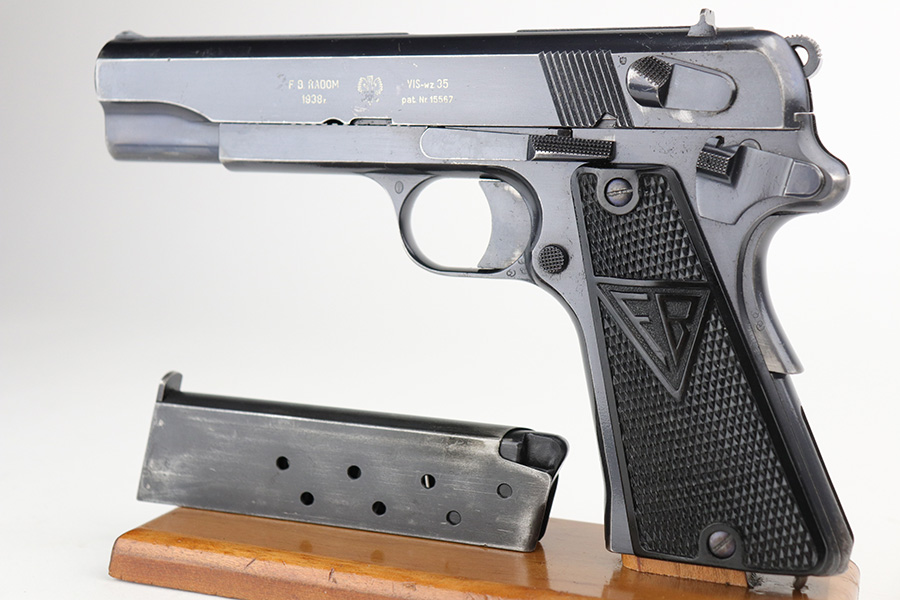 9/17/21 – This is a beautiful example of a rare Polish Eagle Radom VIS P.35 that was produced in 1938. Seems as the some of the highest production quality of Nazi era handguns in Europe, this one is no different. It’s all matching and original with 96-97% of the lustrous blue remaining. Minor high edge wear from a holster, and a little thinning of the front strap strap. There’s also some freckling in and around the stock slot on the frame. Beautiful black plastic grips with no cracks. Original, correct magazine with G2 proof on the base. Strong, shiny bore with only minor frost in the grooves. Comes with a reproduction Polish Eagle holster.