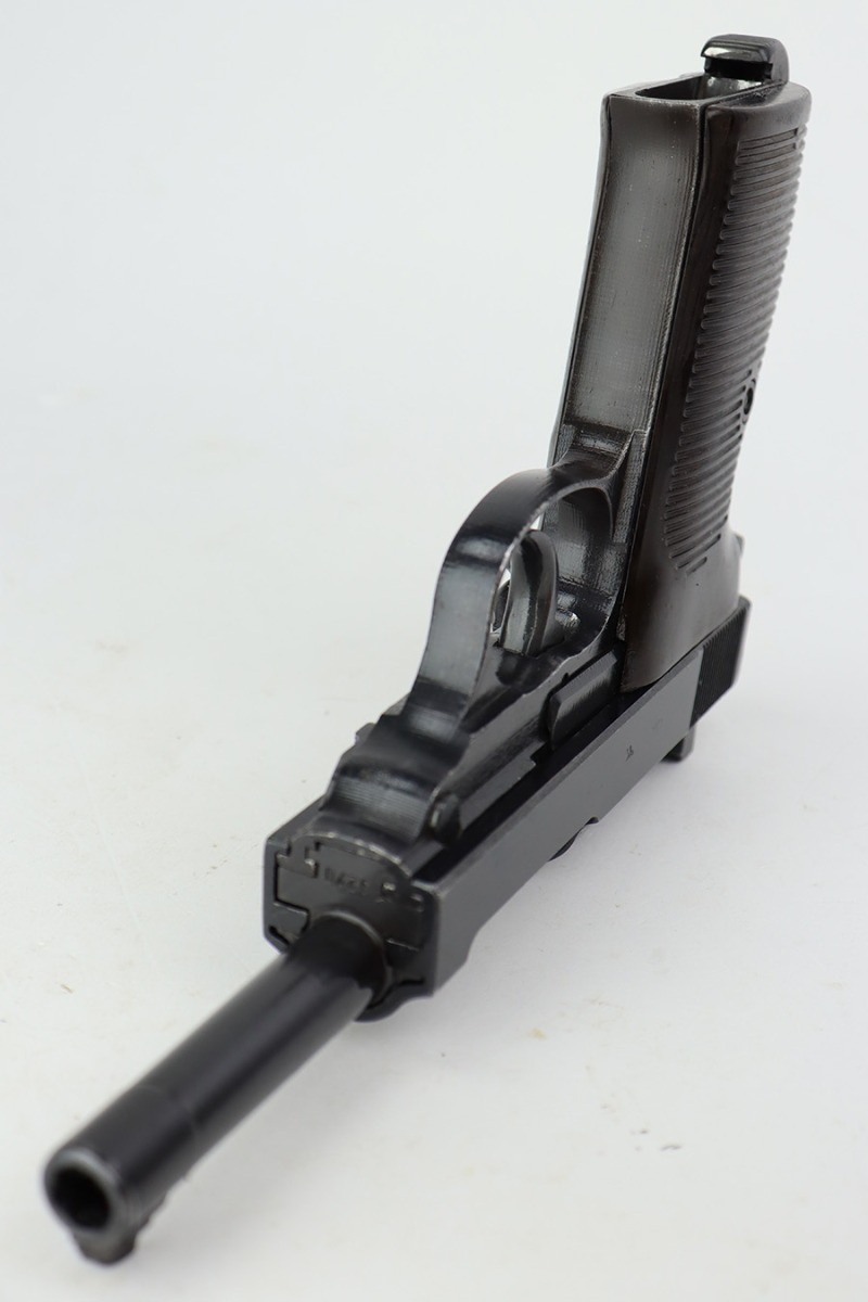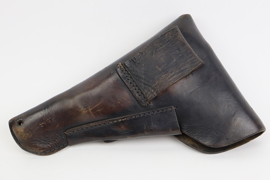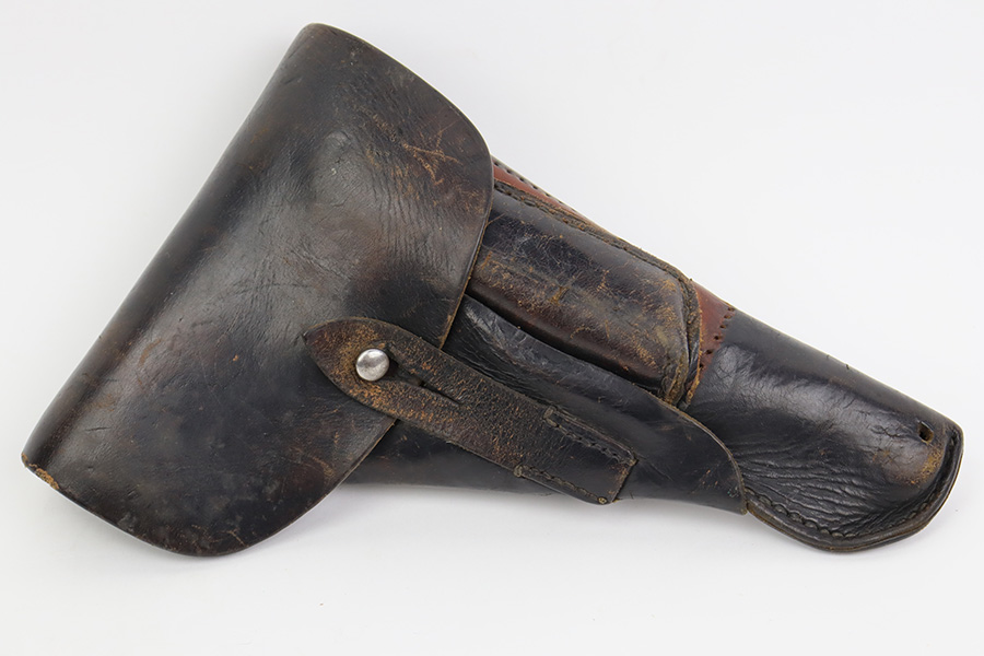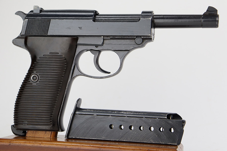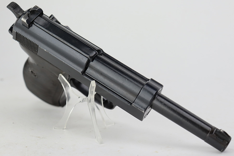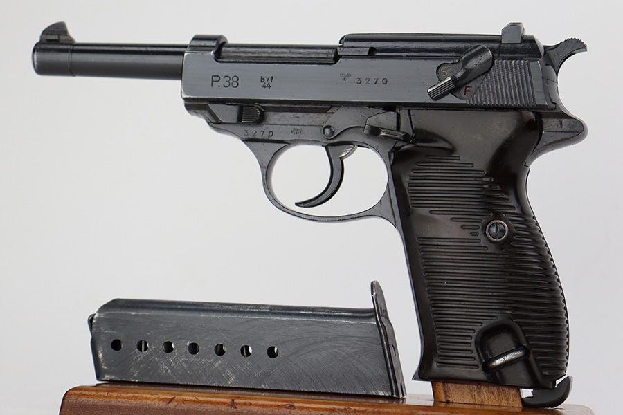 6/22/23 – This is a beautiful example of a rare Police “Eagle L” marked BYF 44 Mauser P.38 that was issued to the German Police in 1944. There were only 4,600 of this variation produced, and 3,200 of that in 1944. All matching. Comes as a rig with a 1943-dated waffen-proofed holster (modified mag pouch) and a numbered, force-matched magazine. The gun itself has retained nearly all of its finish with just hints of wear around the muzzle and on the front edges of the slide. Fitted with excellent blackish-brown bakelite grips. Minty bore. De-cocker is functional.