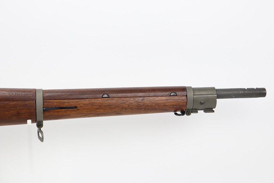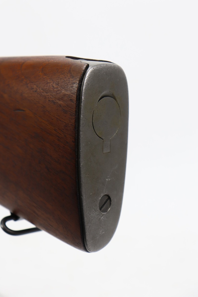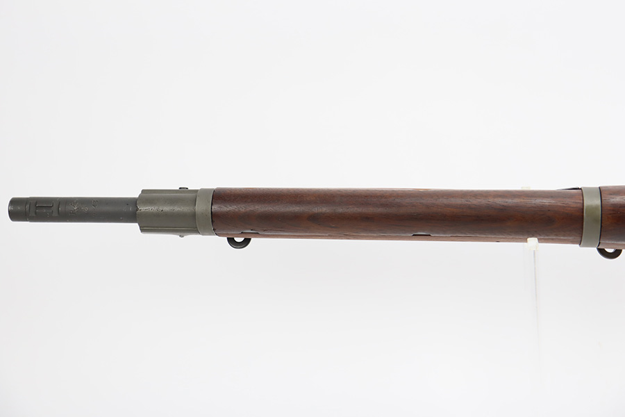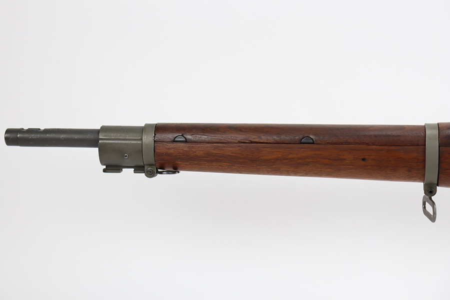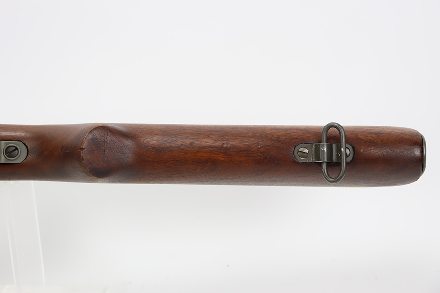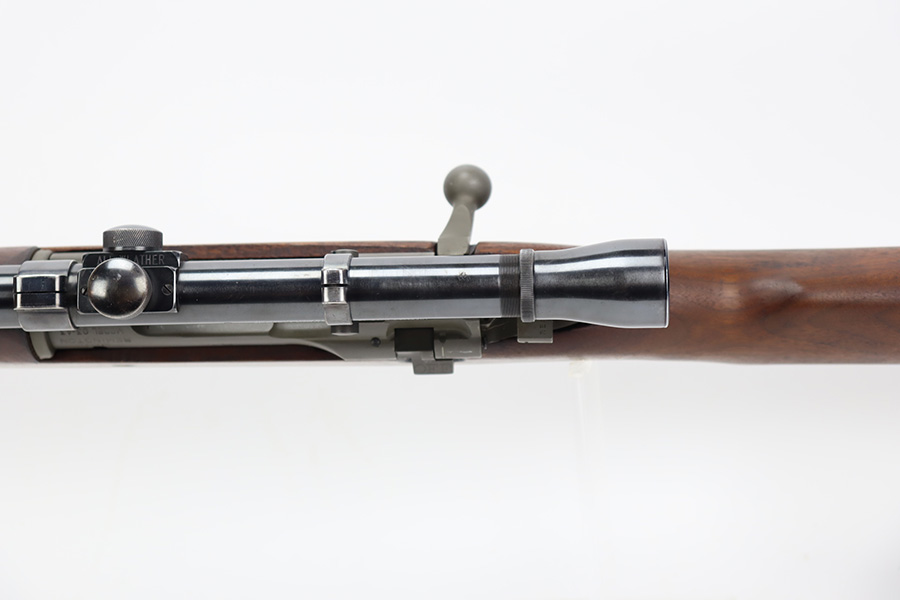 9/12/23 – This is a beautiful Remington 03-A4 sniper rifle from 1943. It has the original/proper receiver with offset Remington 03-A3 marking to avoid being covered by the scope mounts, and proper barrel as the front sights were never added to original 03-A4 snipers. This one has an excellent commercial Lyman Alaskan scope, which was used at the end of WW2 and into Korea. Scope is in excellent condition with clear optics/reticle. This example has a WW2 replacement stock with an RIA/EB marking on the left face. The buttstock plate is replacement as well. The bolt assembly, trigger guard, receiver, and barrel bands have all been arsenal parkerized. The stock is in great shape with no notable defects.