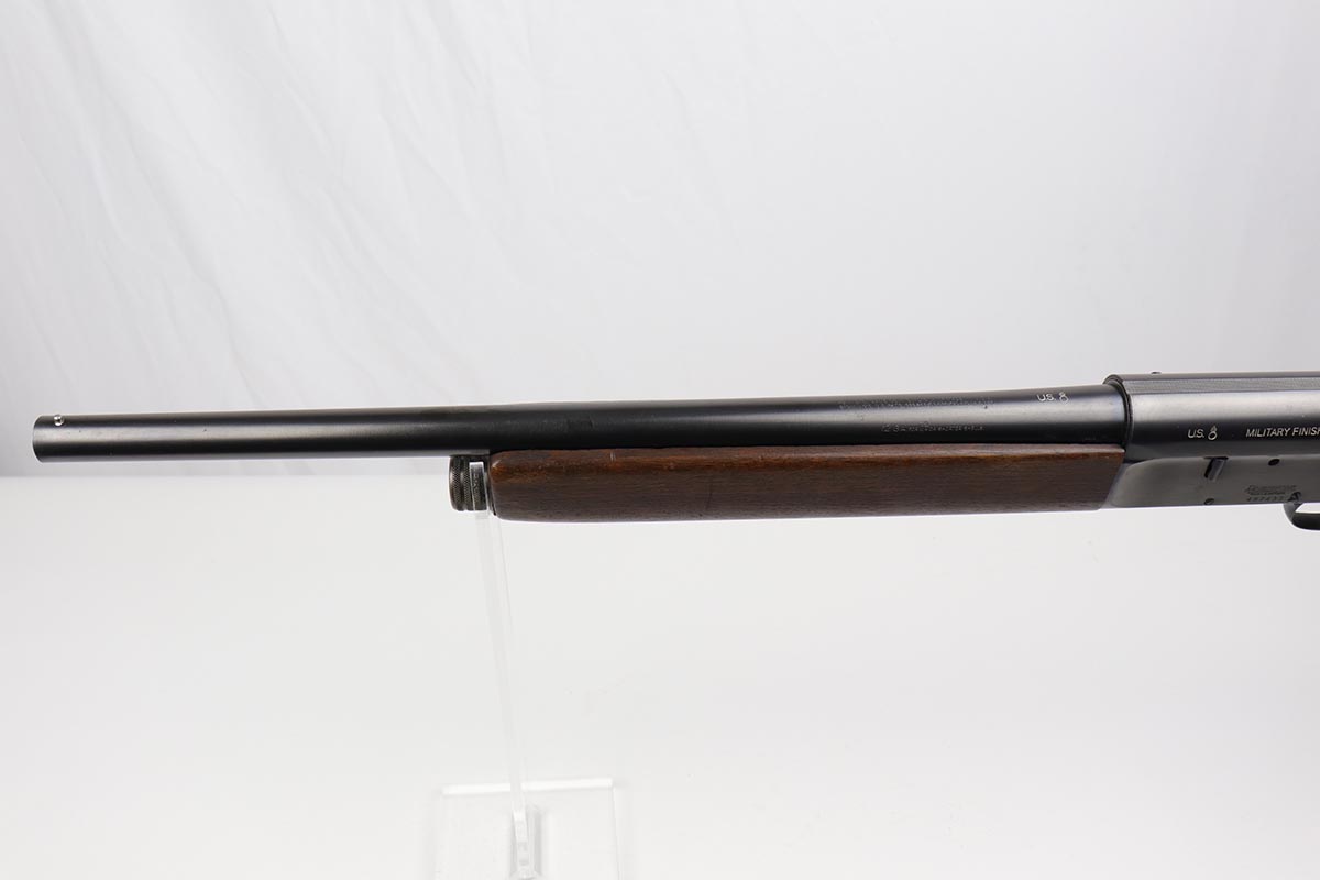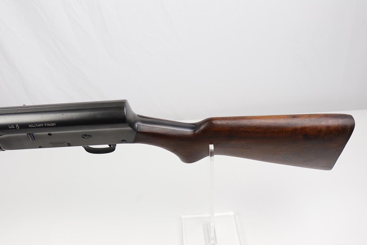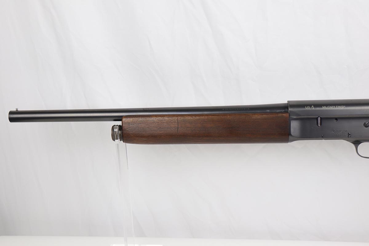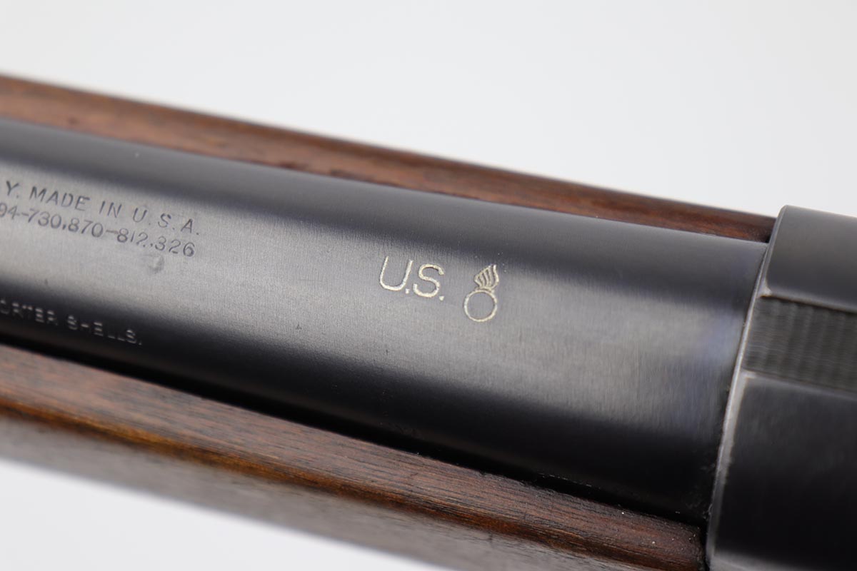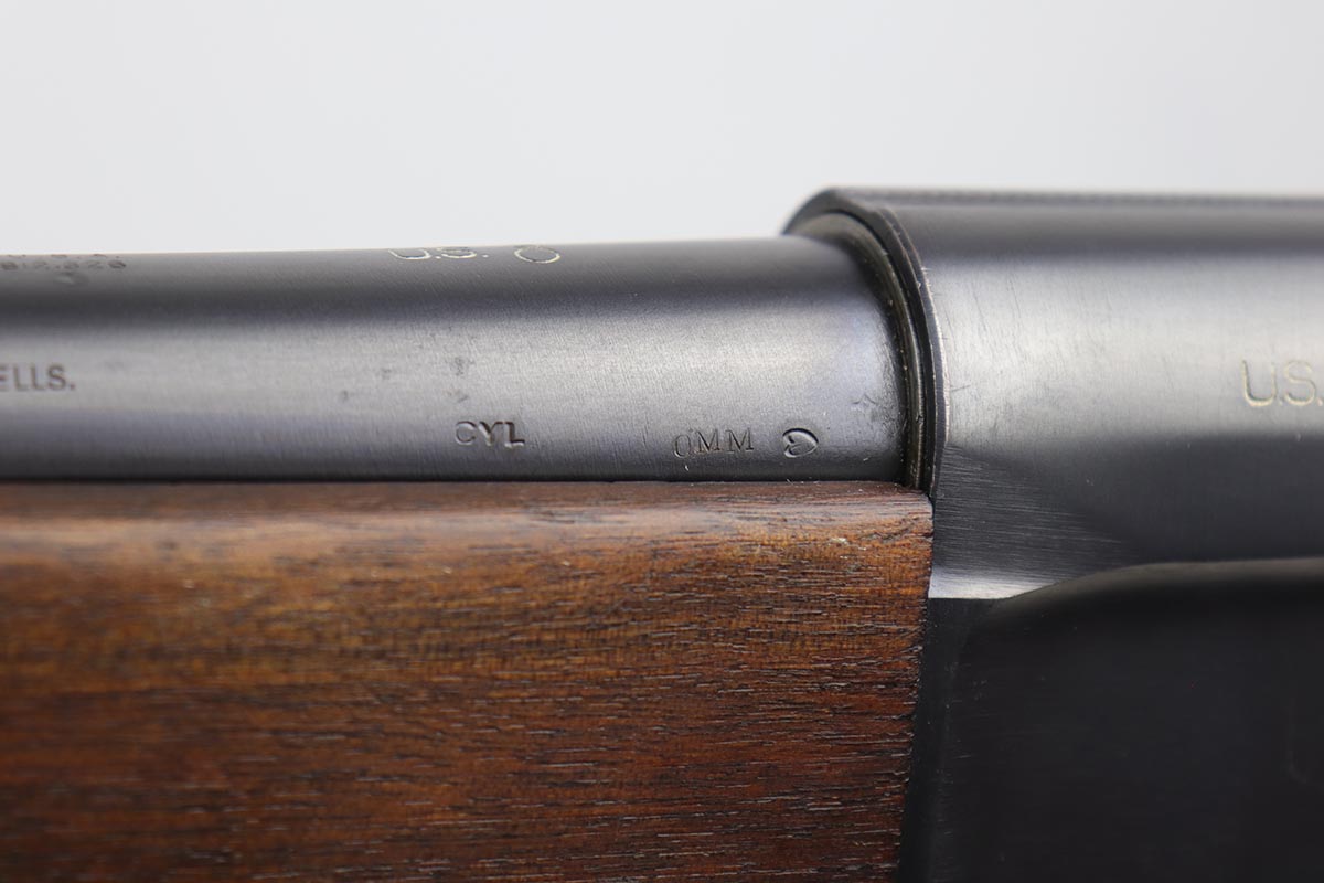 5/21/19 – This is a fantastic example of a desirable Remington Model 11 riot shotgun that was manufactured and issued for use by the U.S. Army. All correct and original, this shotgun retains 97-98% military blue with only minor edge wear and a couple of small scratches on receiver and barrel. Barrel is marked ‘CYL’ and ‘R.E.P.’ in oval, and the ‘MM’ marking is a date code for 1943. Barrel and receiver feature sharp U.S. and flaming bomb markings, and stock shows sharp crossed cannon cartouche with FJA inspection proof. Excellent stock with only one or two minor scratches. Terrific bore. Matching numbered barrel and receiver.