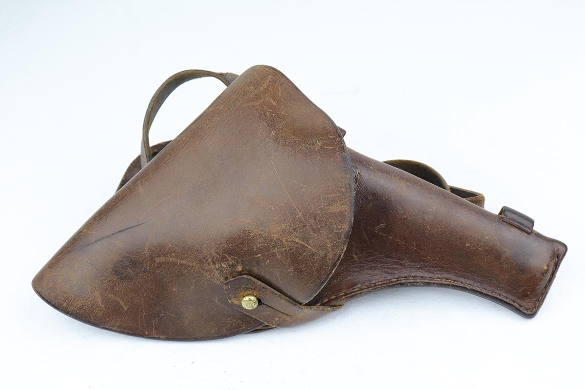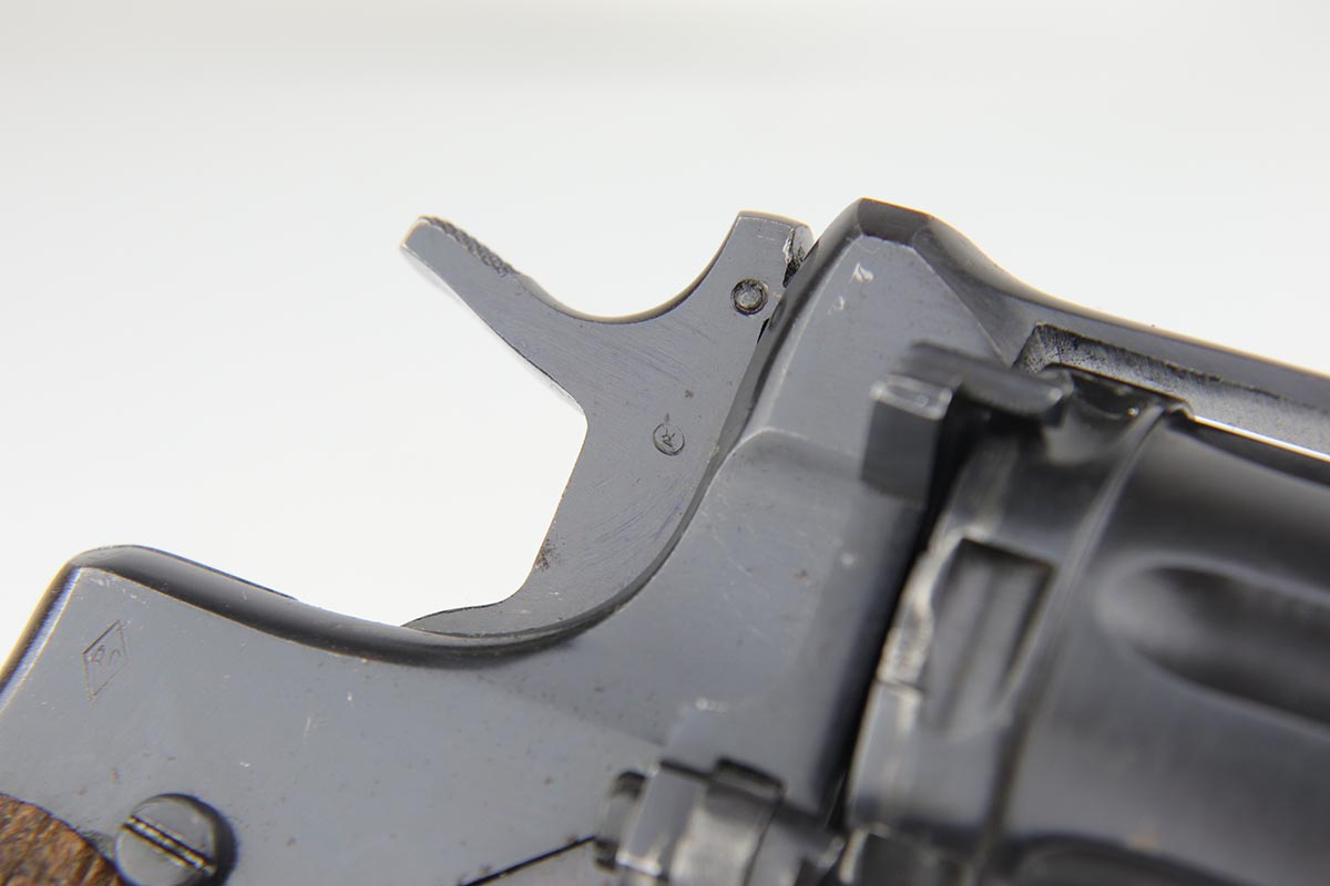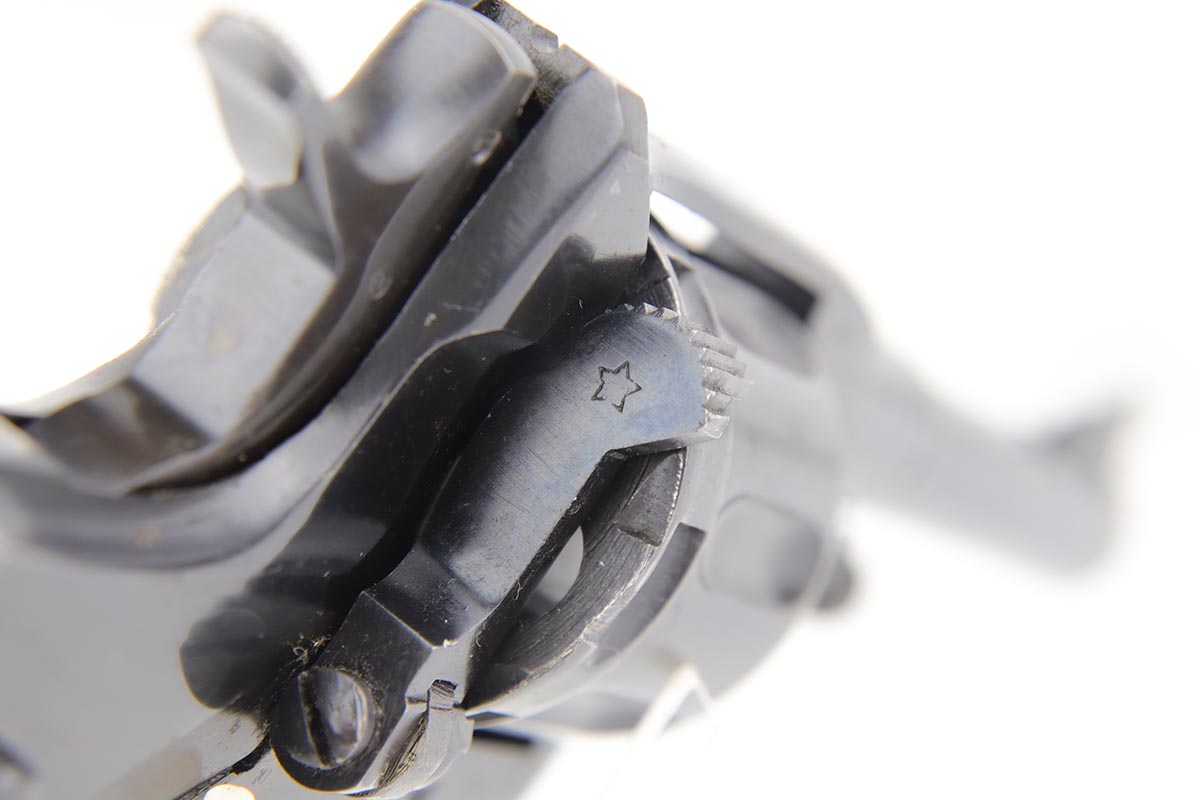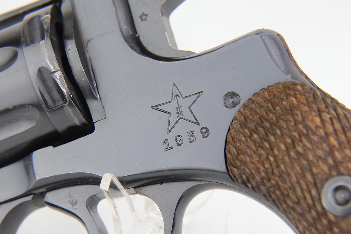 2/5/20 – This is an absolutely gorgeous, all original Russian pre-war Nagant revolver, that retains nearly all of its beautiful original blue with just a few tiny spots of discoloration here and there and a few freckles on the right side of the frame right above the trigger. There is very light muzzle and cylinder wear, as well. All matching, Tula made gun, it is profusely marked with five pointed star throughout, with sharp inspector marks as well. Excellent bore and grips. It comes with superb leather holster with a scarce long shoulder strap configuration that is maker marked inside the flap. Also, comes with an original lanyard cord. Judging by the condition, it was most likely captured either by Finns during the Winter War or by the Germans in the opening days of operation Barbarosa, and finally made it into the hands of the returning American GI.