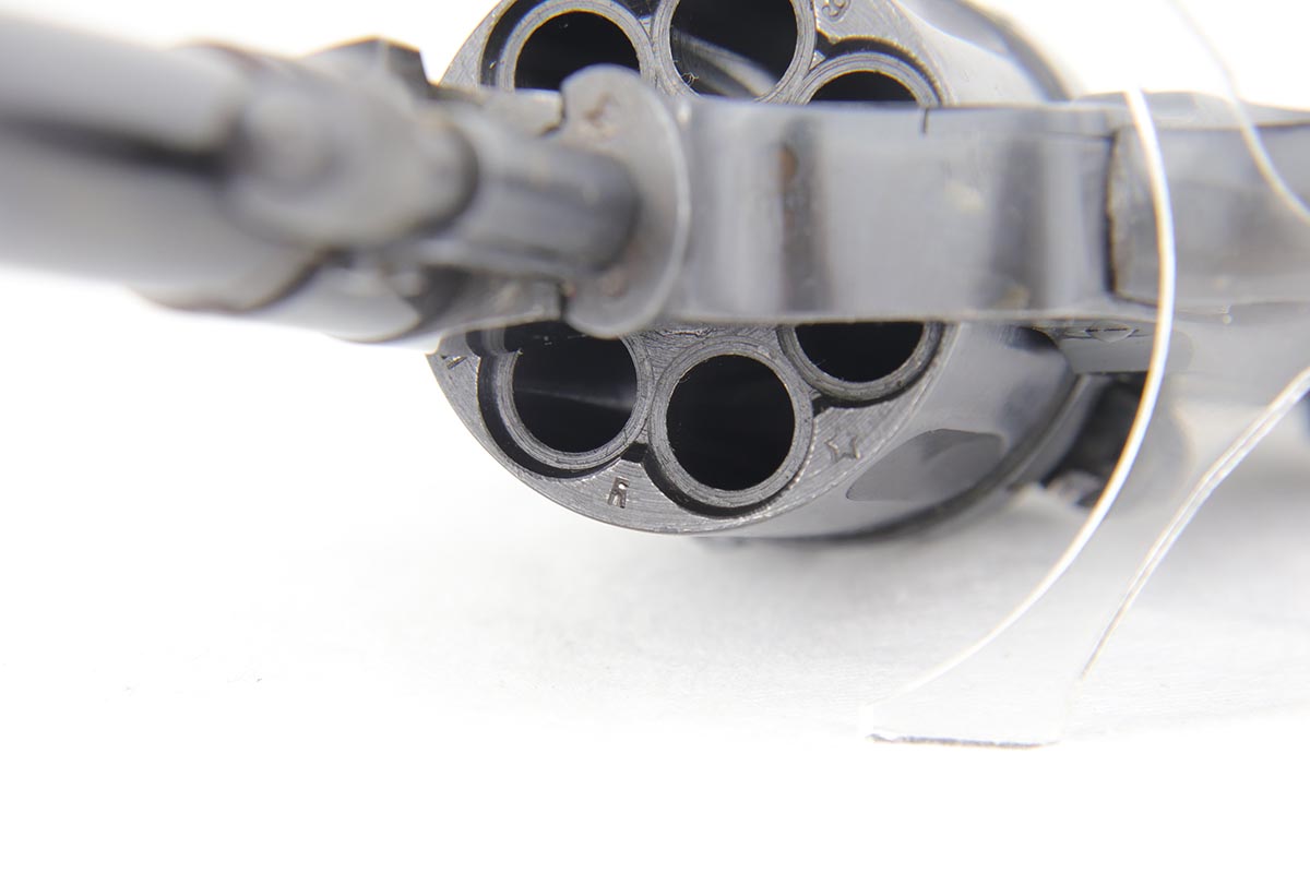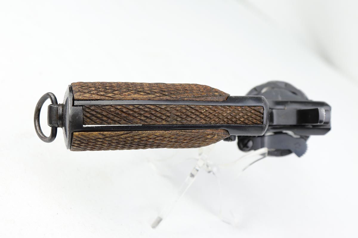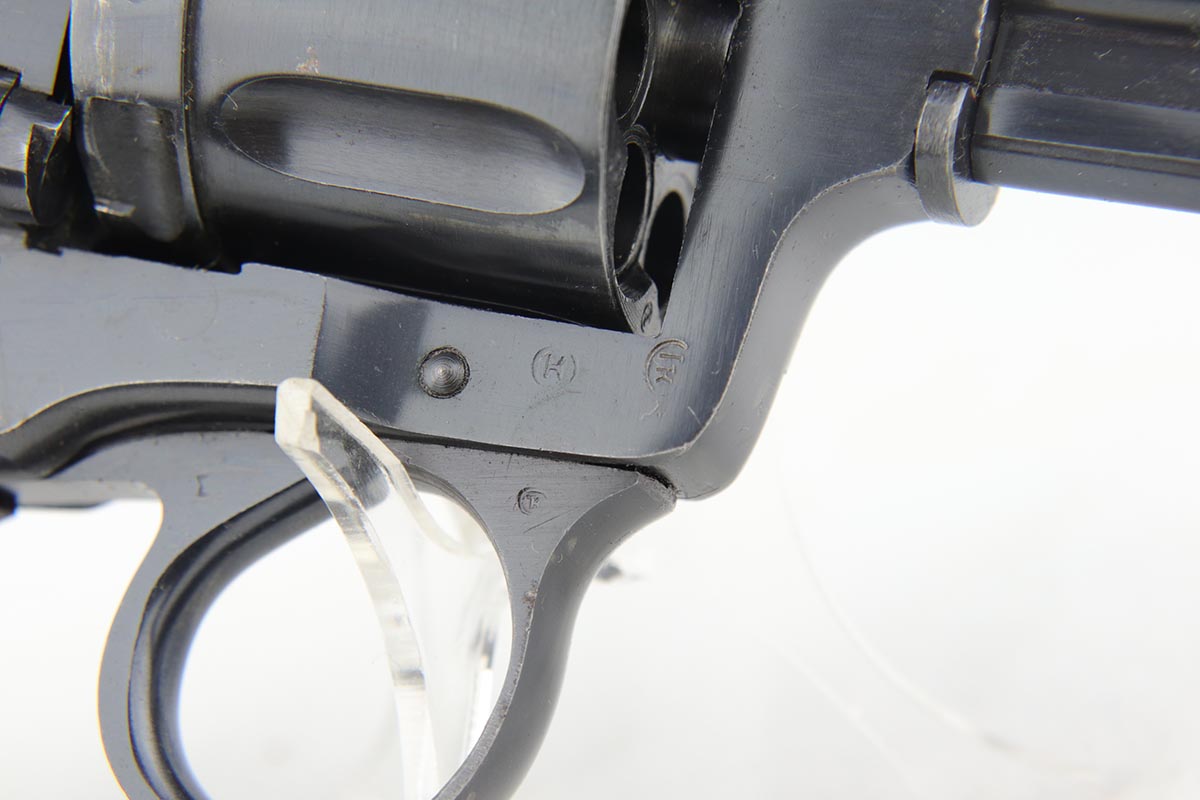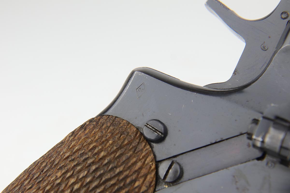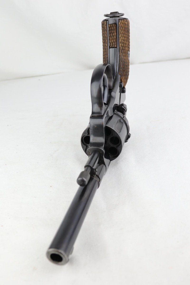2/5/20 – This is an absolutely gorgeous, all original Russian pre-war Nagant revolver, that retains nearly all of its beautiful original blue with just a few tiny spots of discoloration here and there and a few freckles on the right side of the frame right above the trigger. There is very light muzzle and cylinder wear, as well. All matching, Tula made gun, it is profusely marked with five pointed star throughout, with sharp inspector marks as well. Excellent bore and grips. It comes with superb leather holster with a scarce long shoulder strap configuration that is maker marked inside the flap. Also, comes with an original lanyard cord. Judging by the condition, it was most likely captured either by Finns during the Winter War or by the Germans in the opening days of operation Barbarosa, and finally made it into the hands of the returning American GI.