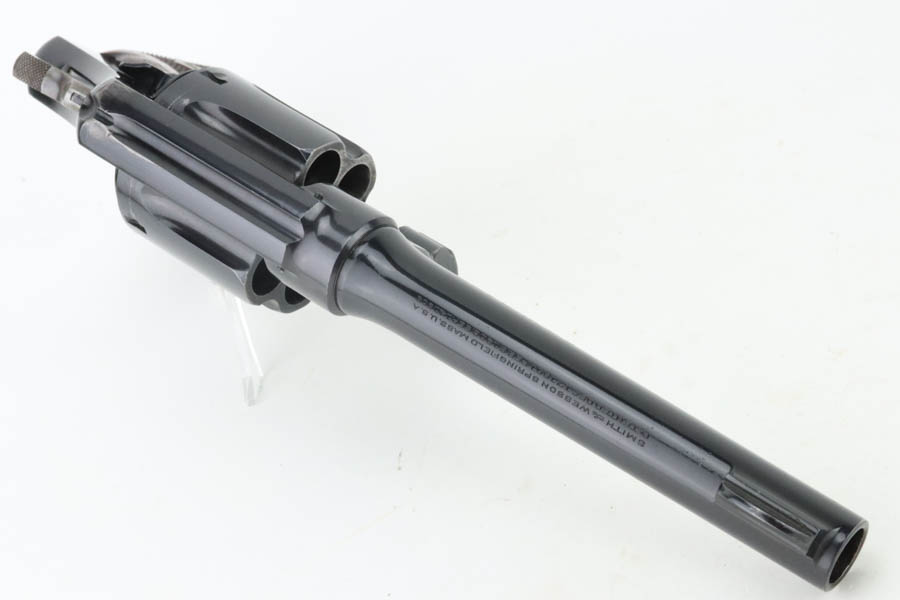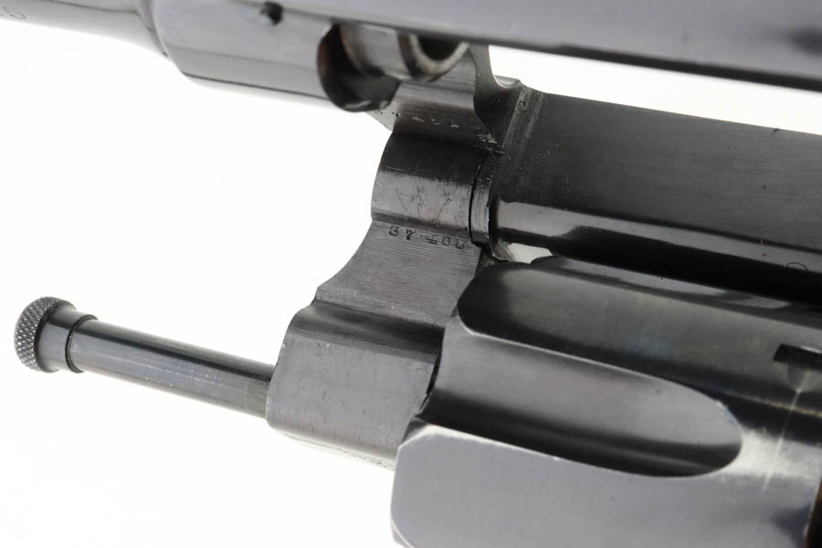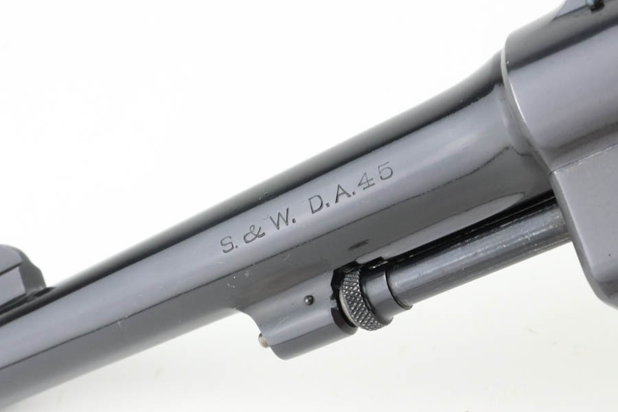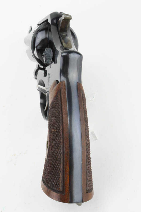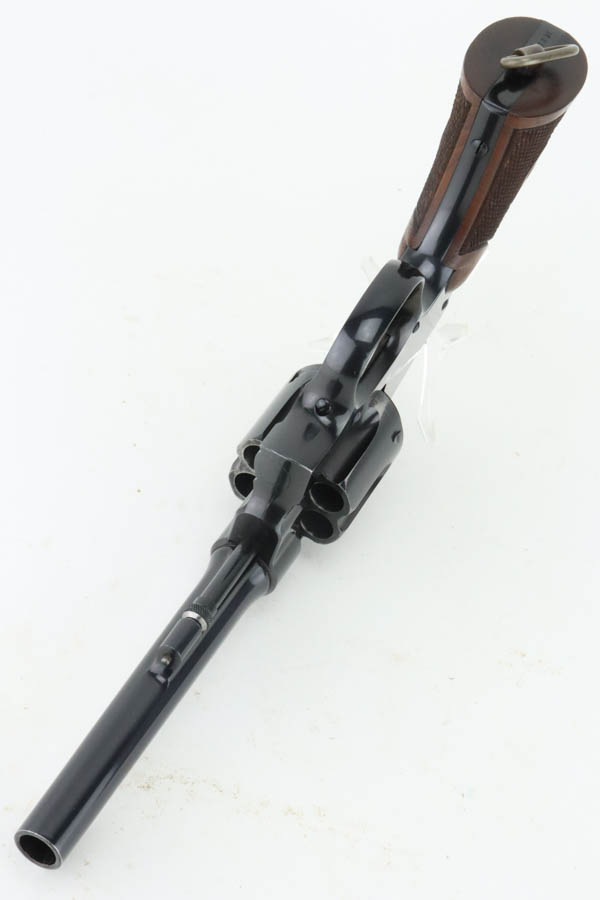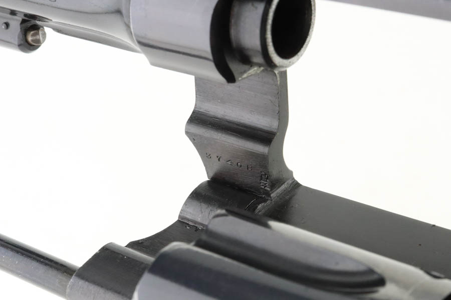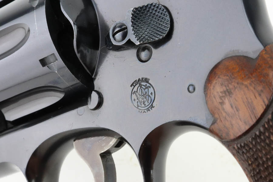 6/24/24 – This is a beautiful example of a scarce commercial S&W Model 1917 Revolver, chambered in .45 Caliber. These guns lack “US Property” markings and are much less common then the military versions. This one has retained nearly all of its original high polish finish with just minor high edge wear on the top strap and a very light roll mark on the cylinder. Excellent case-hardening on the hammer and trigger. Fitted with minty hand-checkered Walnut grips – the right panel is numbered and matching. The bore is factory-new.