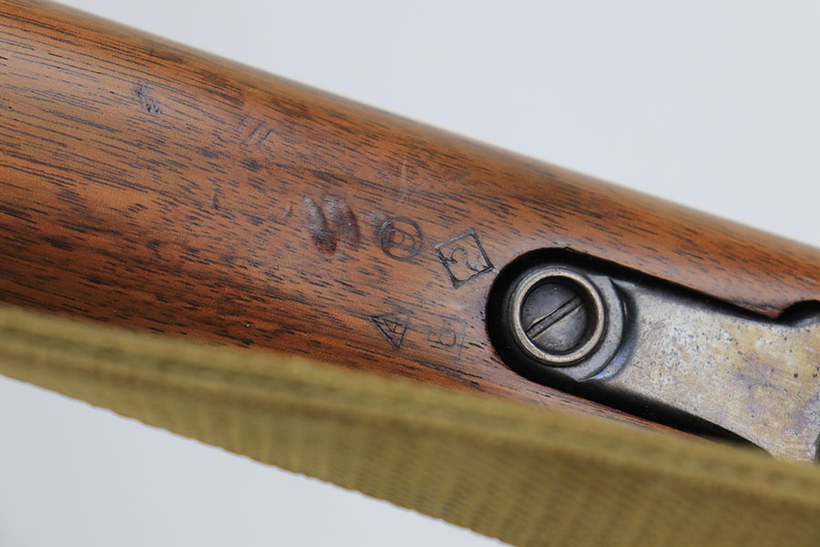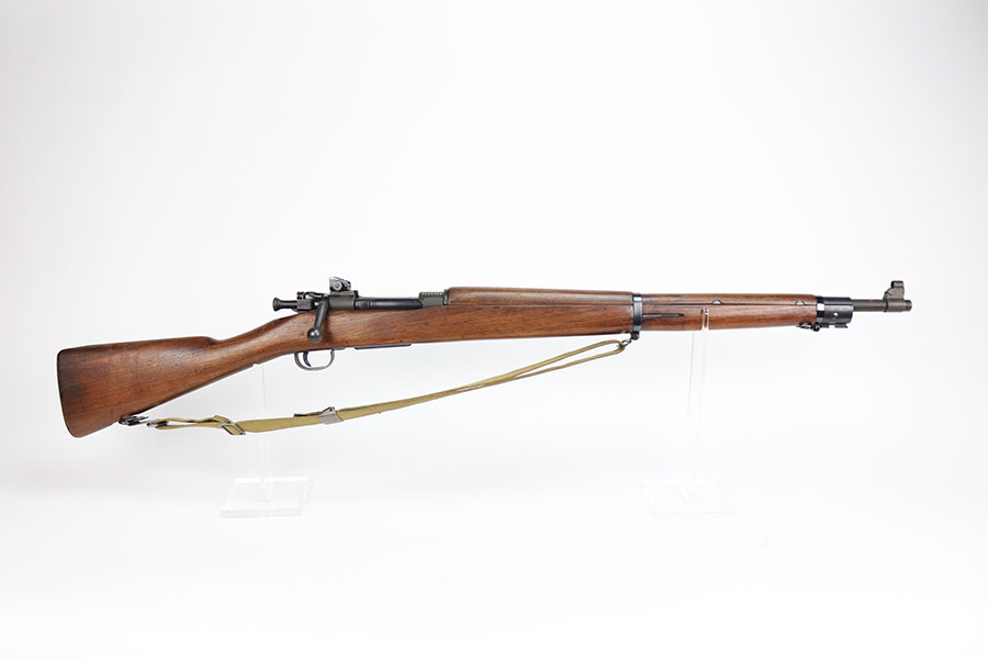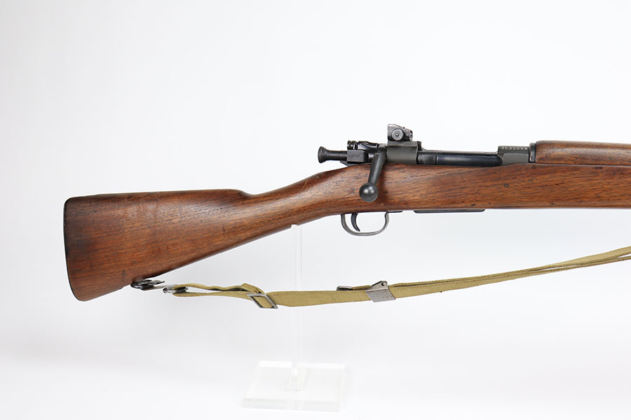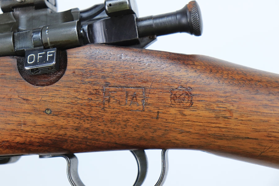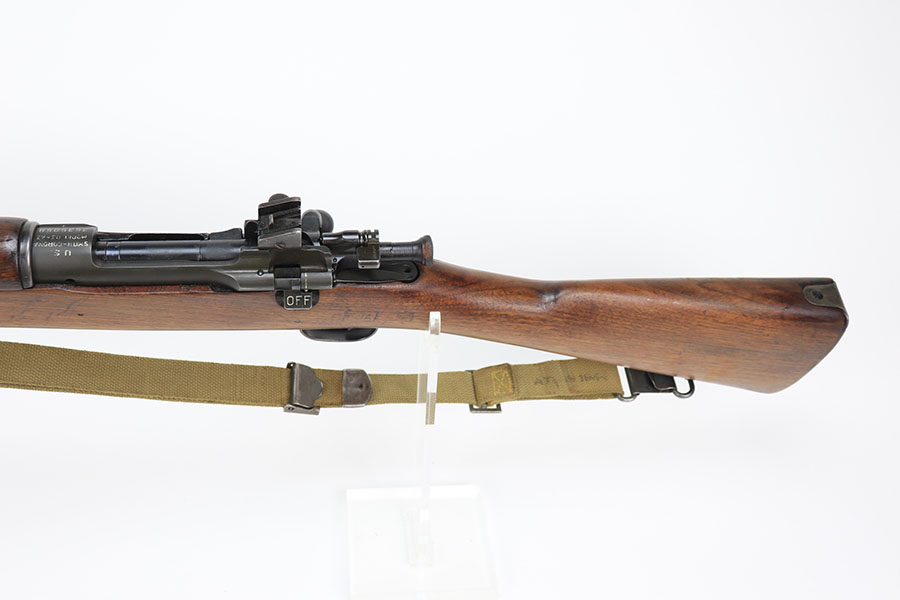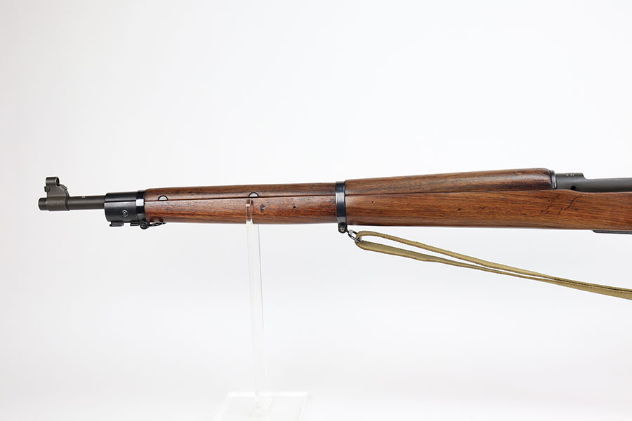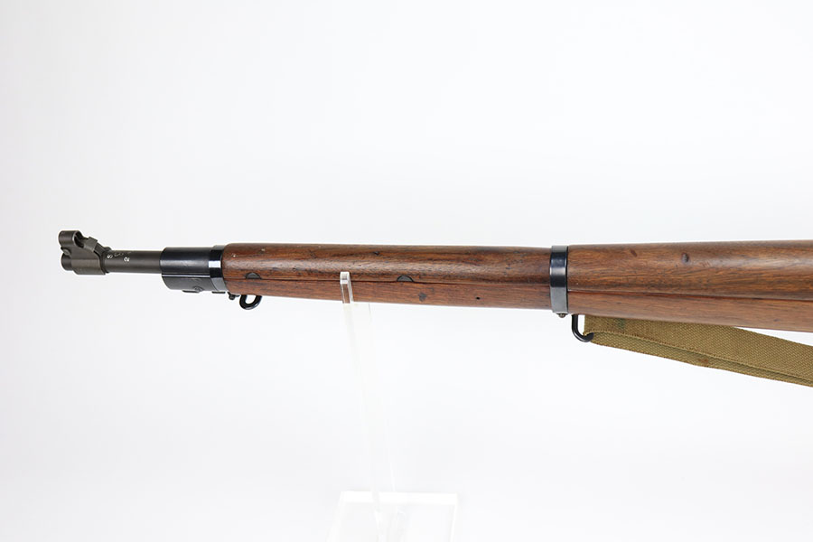 1/14/21 – This is a terrific example of a Smith-Corona 03-A3 with scarce six groove barrel, rather than the common four groove. Terrific finish throughout, with nearly all of the finish loss on the trigger group. FJA inspector mark and crossed cannons cartouche on stock. Barrel date of February, 1943. Period original canvas sling. Minty bore.