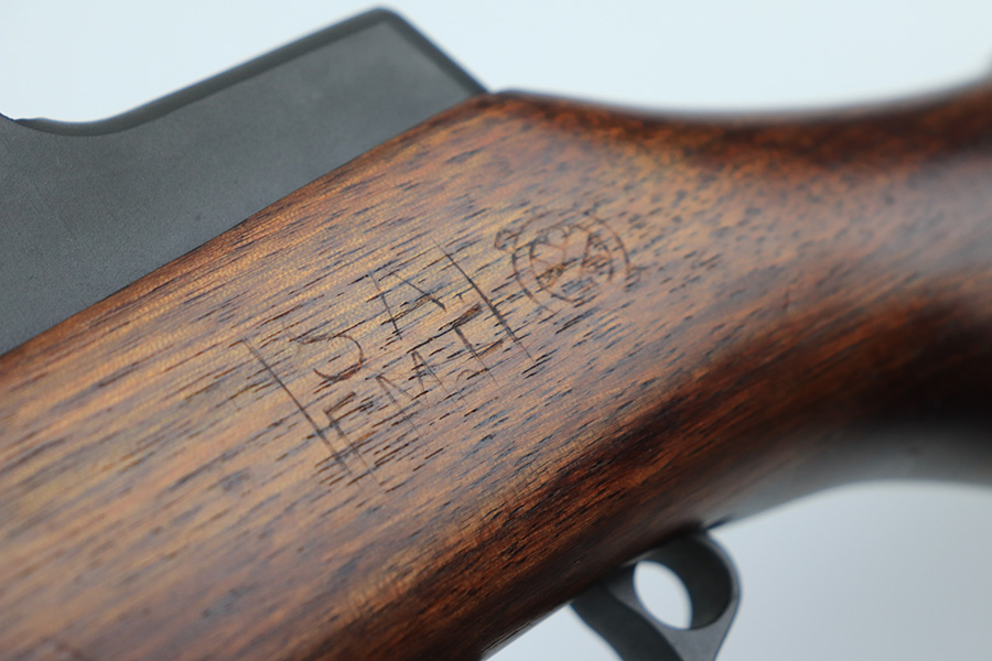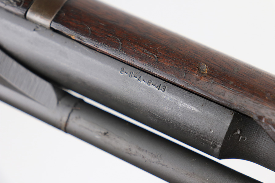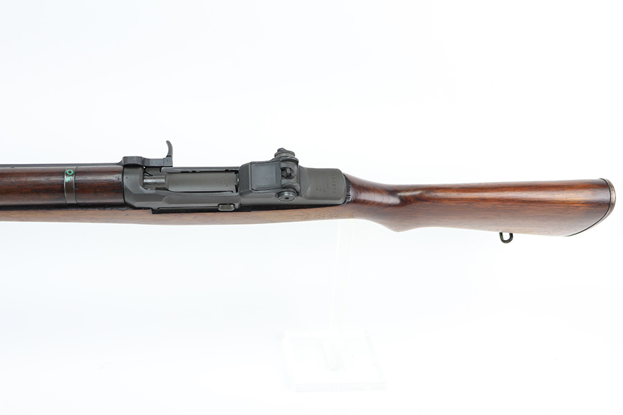 2/25/22 – This is a beautiful Springfield Armory M1 Garand from 1943. Original SA parts throughout, though the finish has been redone on all metal parts. Barrel date of 8-43 matches that of the receiver. Stock has P proof on wrist, with military cartouche/inspectors mark on left side. Bore has good rifling but some frost throughout. Muzzle reading is a 3, TE is a 2. Beautiful stock with some dings on the handguard.