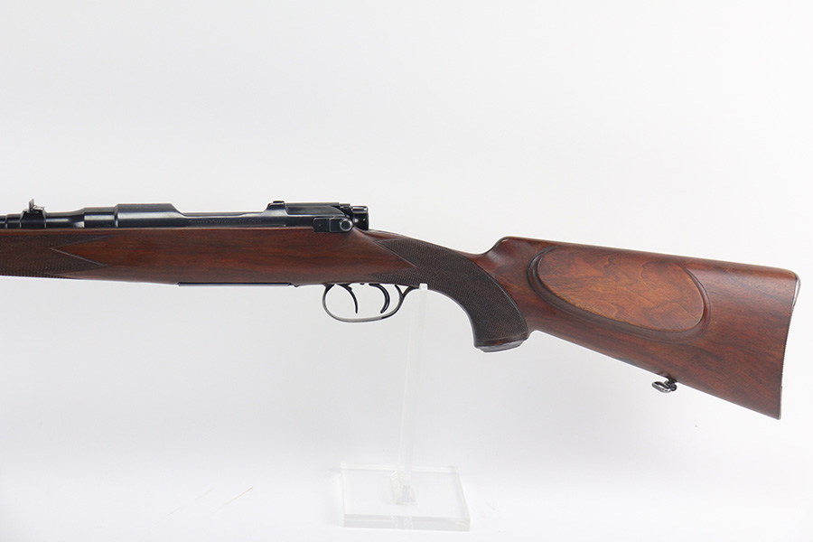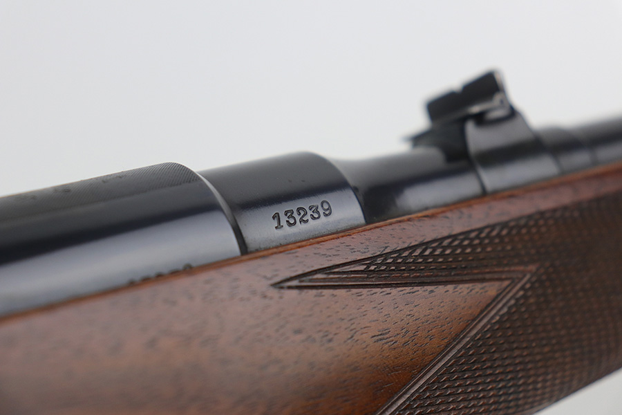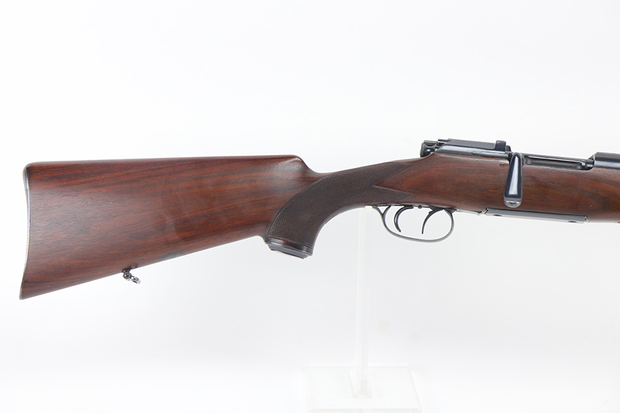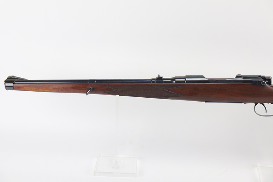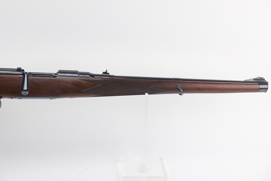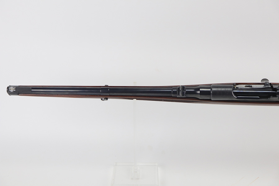 11/17/21 – This is a beautiful example of a Steyr Mannlicher Model 1903 Carbine. We aren’t sure exactly what year the gun was manufactured, but we believe sometime in the 1920’s. The gun is all correct and is in beautiful condition, retaining about 98% of its bluing. There is just a hint of wear on the edges of the trigger guard and some minor wear at the top of the butt plate. There is one very light scratch on the left side of the receiver. Some very minor brown patina on the grip cap. The stock is near-mint with a couple of very tiny handling marks here and there. The bore is mint.
