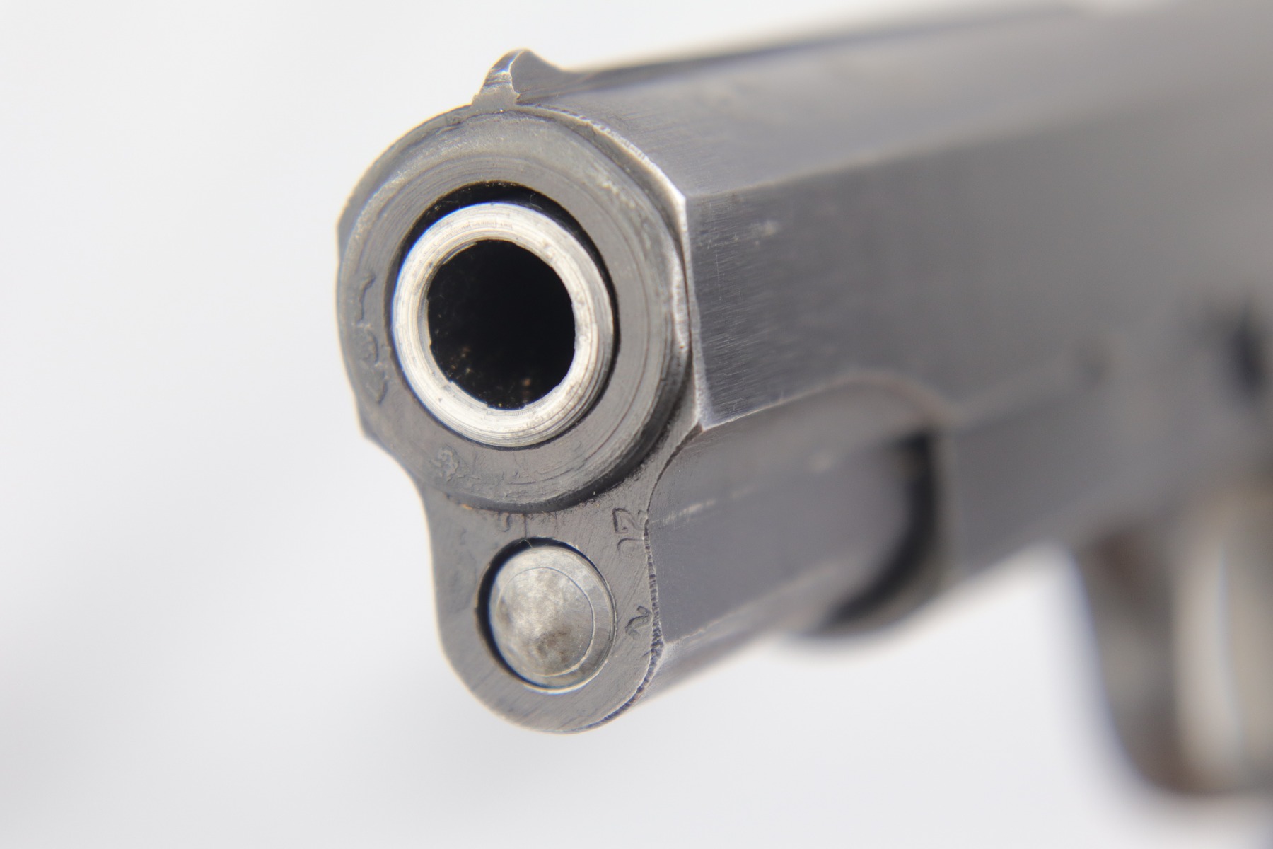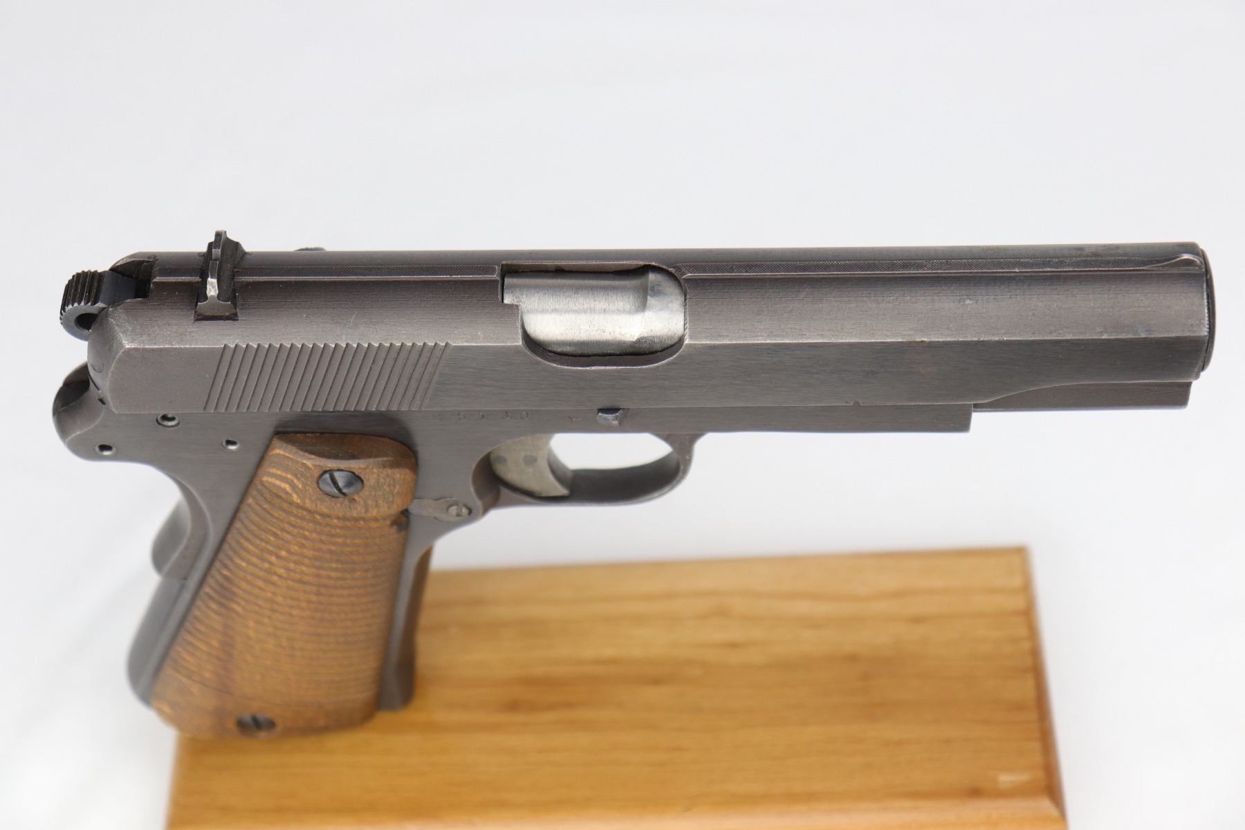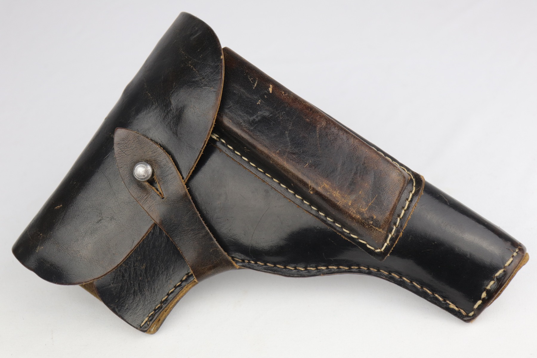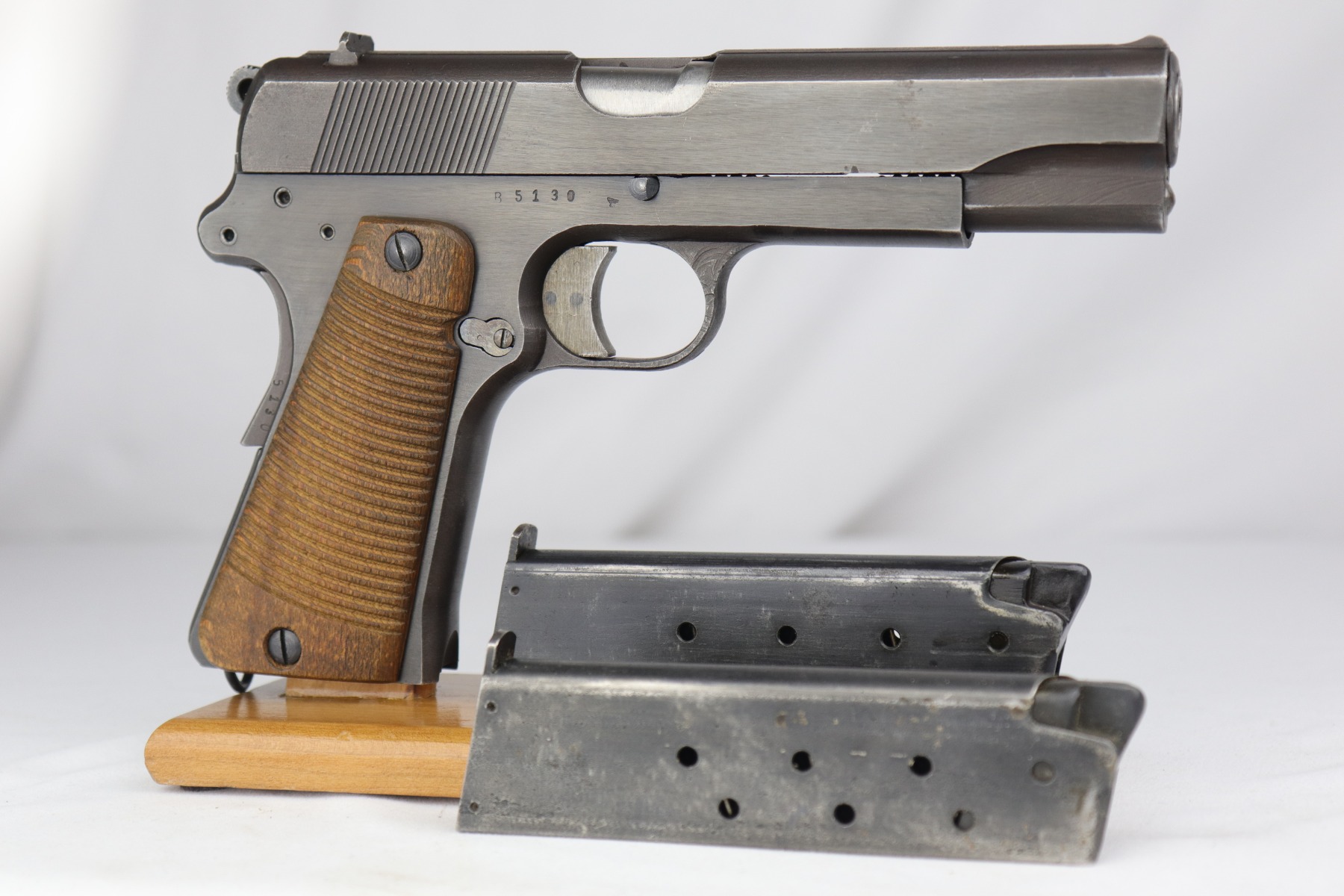 12/19/18 – This is a fantastic example of a scarce subvariation of the VIS M1935. It’s a Grade III, Subvariation 2 as it is produced by Steyr with E/623 stamp on slide and trigger guard. Also in proper serial range (B2000-B6000). There were only ~22,000 of this variation produced. The gun is all matching and original with 98% blue remaining, showing only minor high edge wear from the holster. Comes with two total magazines, both of which are waffen marked. The holster is in very good condition with minor age/handling wear, and a clear internal inkstamp. Excellent, shiny bore.
