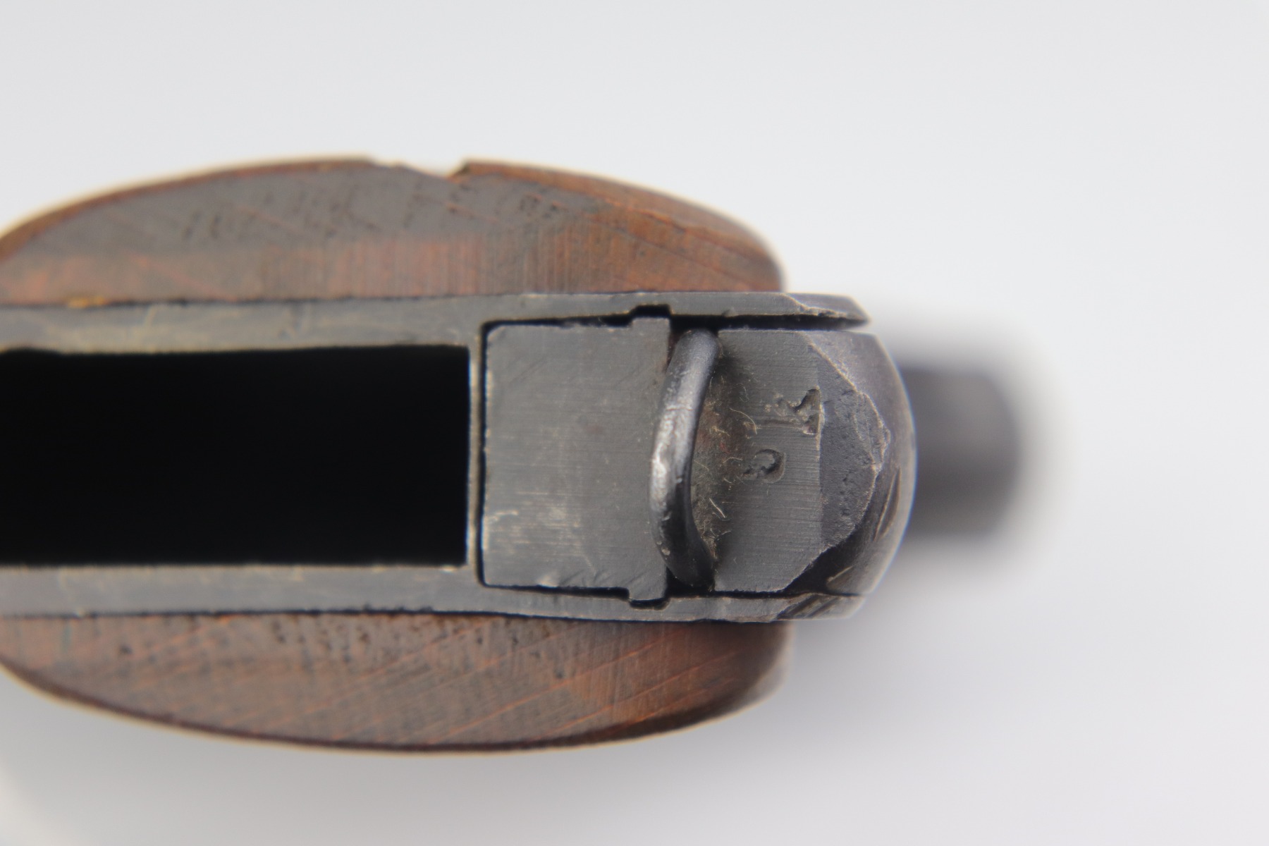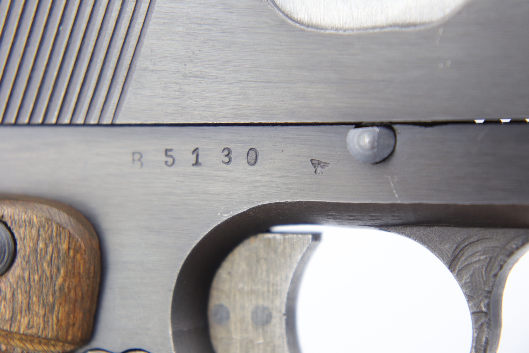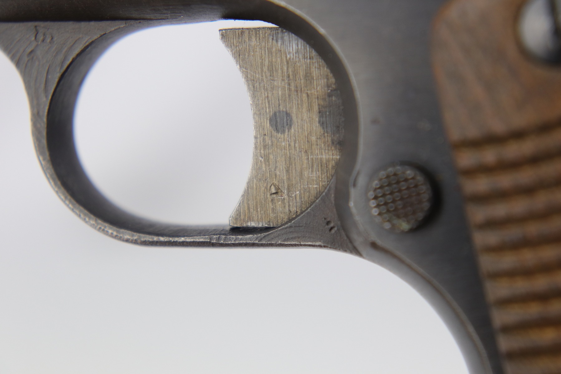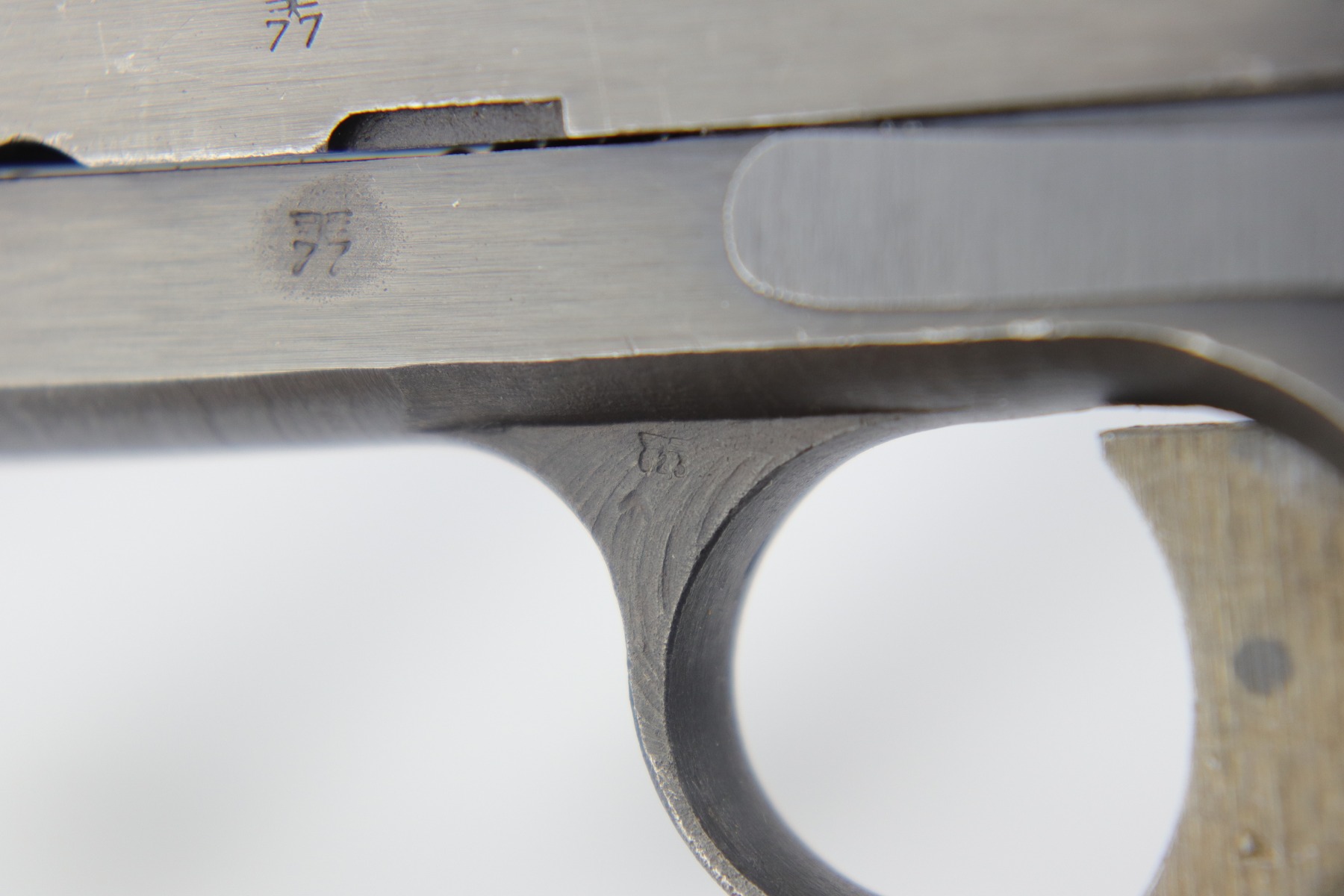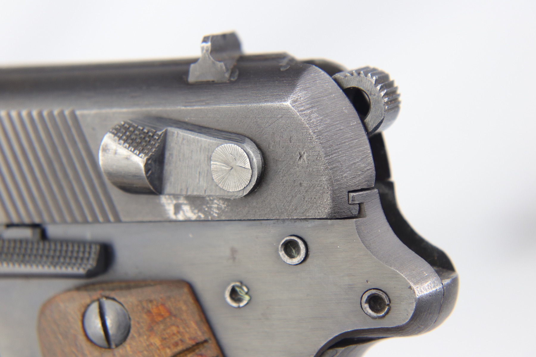 12/19/18 – This is a fantastic example of a scarce subvariation of the VIS M1935. It’s a Grade III, Subvariation 2 as it is produced by Steyr with E/623 stamp on slide and trigger guard. Also in proper serial range (B2000-B6000). There were only ~22,000 of this variation produced. The gun is all matching and original with 98% blue remaining, showing only minor high edge wear from the holster. Comes with two total magazines, both of which are waffen marked. The holster is in very good condition with minor age/handling wear, and a clear internal inkstamp. Excellent, shiny bore.