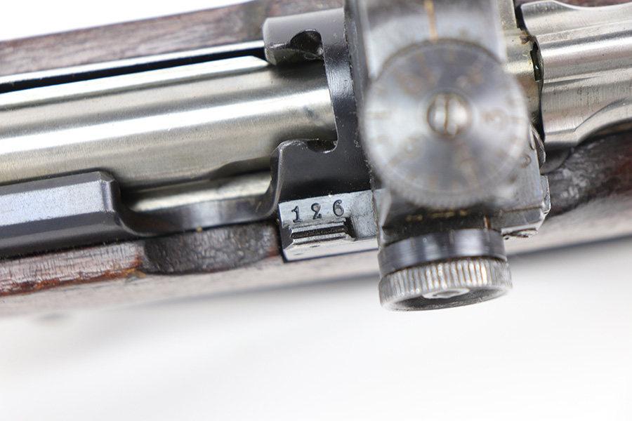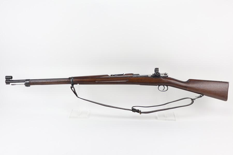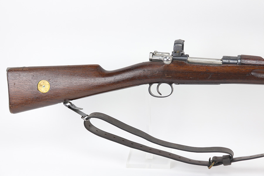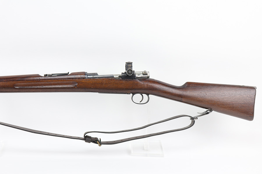 11/2/21 – This is a beautiful example of an original Carl Gustafs Stad Swedish Mauser 1896 rifle with target configuration front and rear sights. Terrific blued finish throughout, with just minor edge wear and a little thinning on the barrel. Matching serial numbers throughout except for the rear sight. Matching numbers include receiver, bolt, bands, trigger group, buttplate, safety, bolt release, etc. Stock is in great shape with no major defects. Terrific, shiny bore. Comes with sling and cleaning rod. Beautiful display example that would also be great fun to shoot.