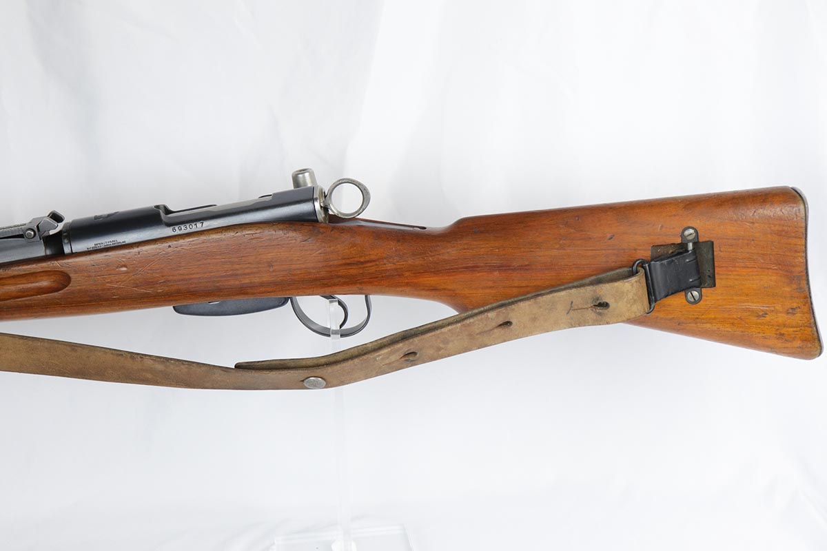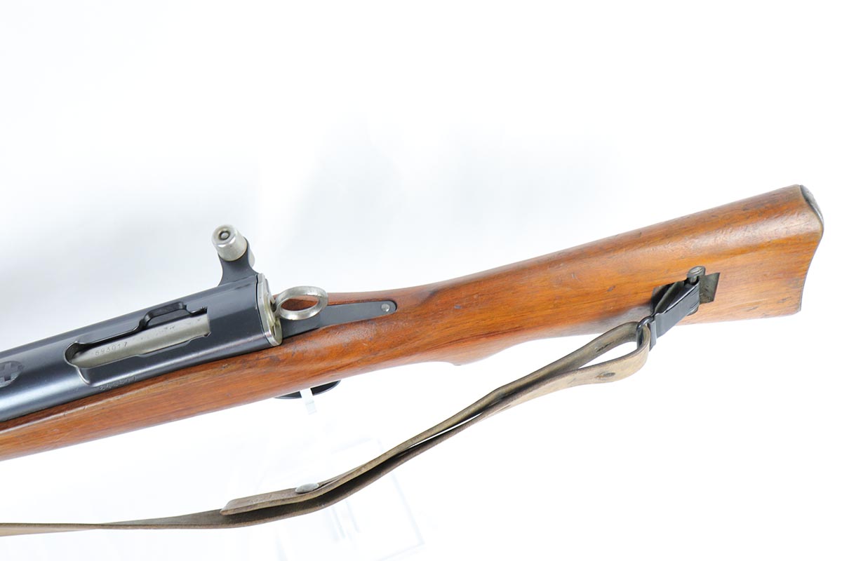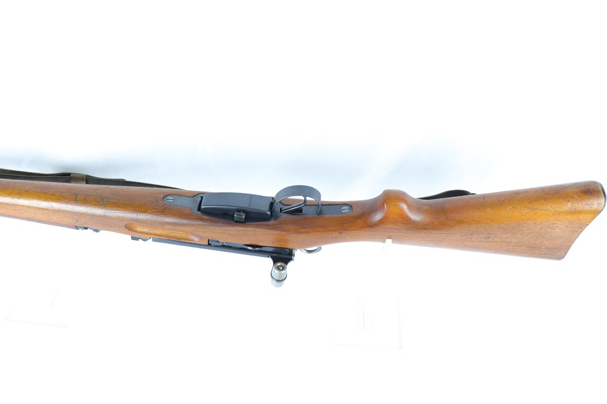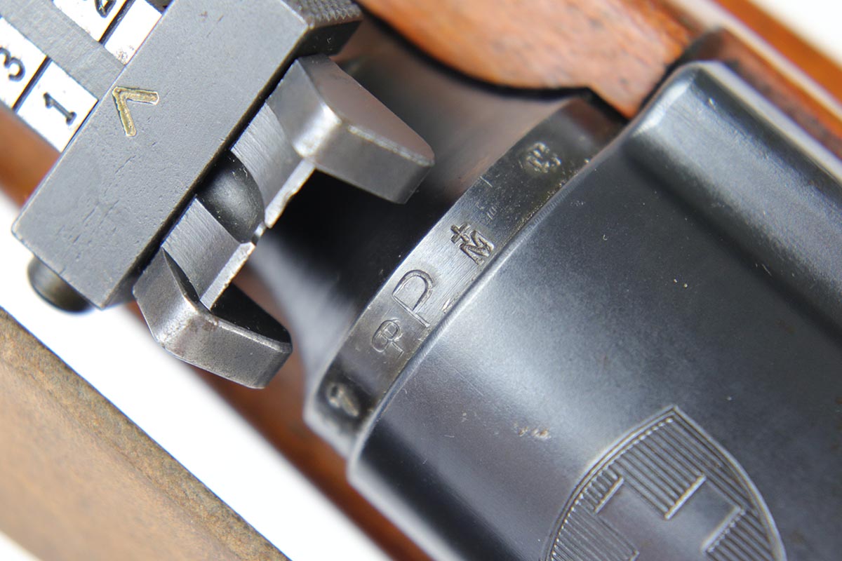8/9/18 – This is one of the best examples of a Swiss k31 rifle that you could find – a walnut stock rifle in excellent original condition, great bore and excellent wood with minimal wear. Many of these rifles were imported over the past 20 years and are considered by many to be the most accurate surplus rifle available for a collector and marksman alike. 99% of the imported guns saw heavy use by Swiss Army and show significant wear. Others were rearsenaled to near new condition. This gun has NOT been rearsenaled and shows very little field wear. All the numbers match including bolt and the magazine. Sharp Swiss cross in shield cartouche on the right side of the stock. Metal retains around 97-98% of its original blue with the wear found on the barrel. The walnut stock is yet another bonus. There’s a very discreet import mark on the left side of the receiver. A great example of K31 battle rifle.