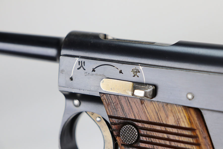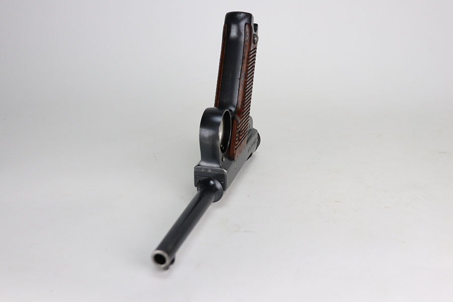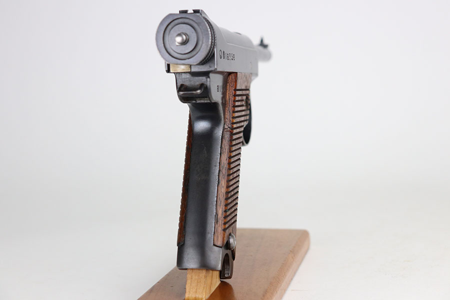 4/22/21 – This is an all matching and original Type 14 Nambu that was made in February of 1936 at the Kokubunji factory. It has one of the original matching magazines, and about 96% of the original blue remaining. Minor spots of finish loss here or there, probably most evident on the trigger guard/front strap. Excellent grips but left panel is hand numbered and mismatched. Minty bore.