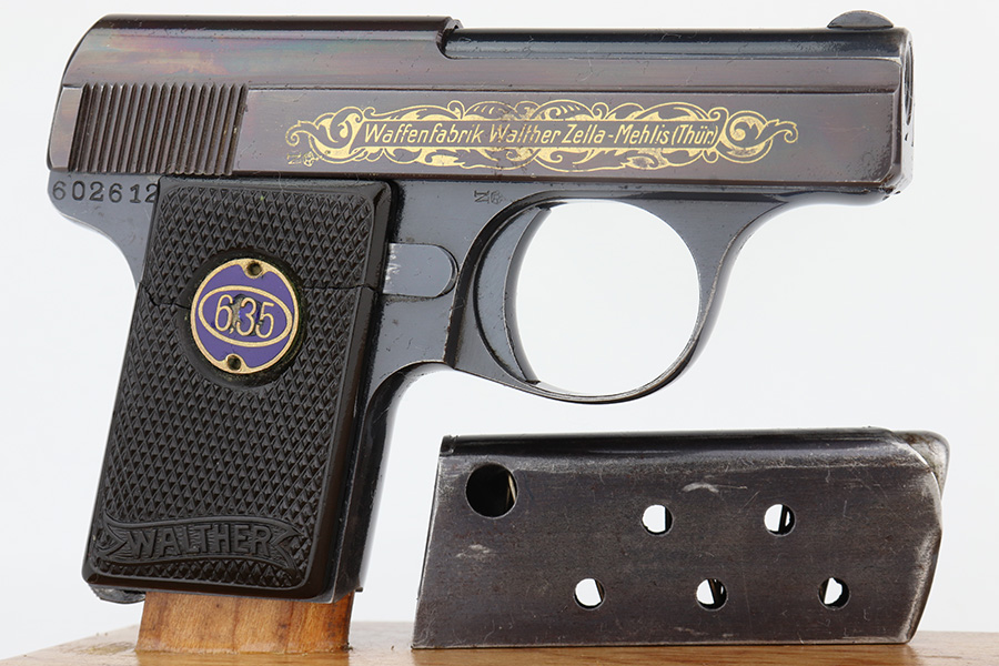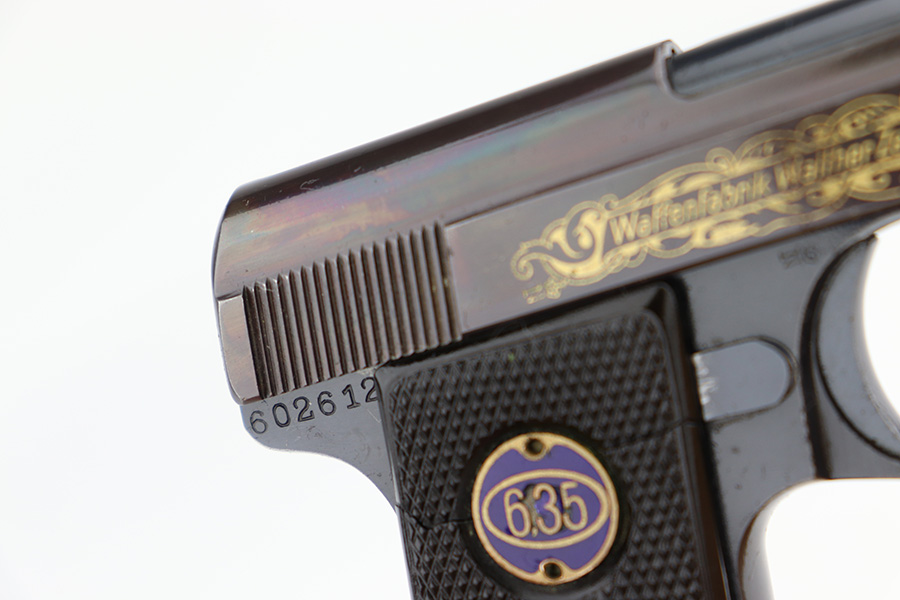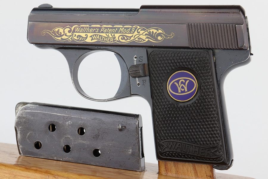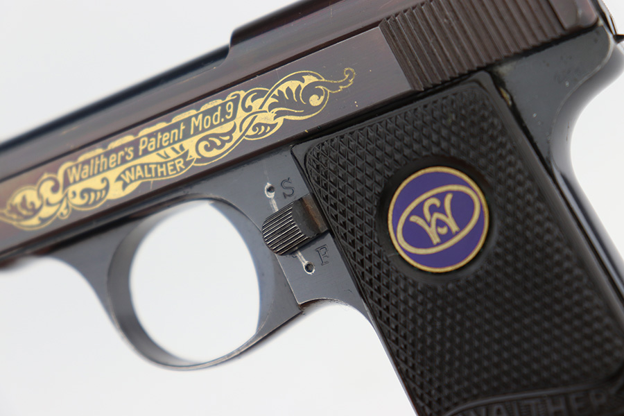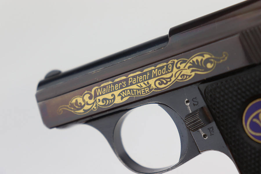 SOLD – Beautiful Walther Model 9 – Gold Inlay