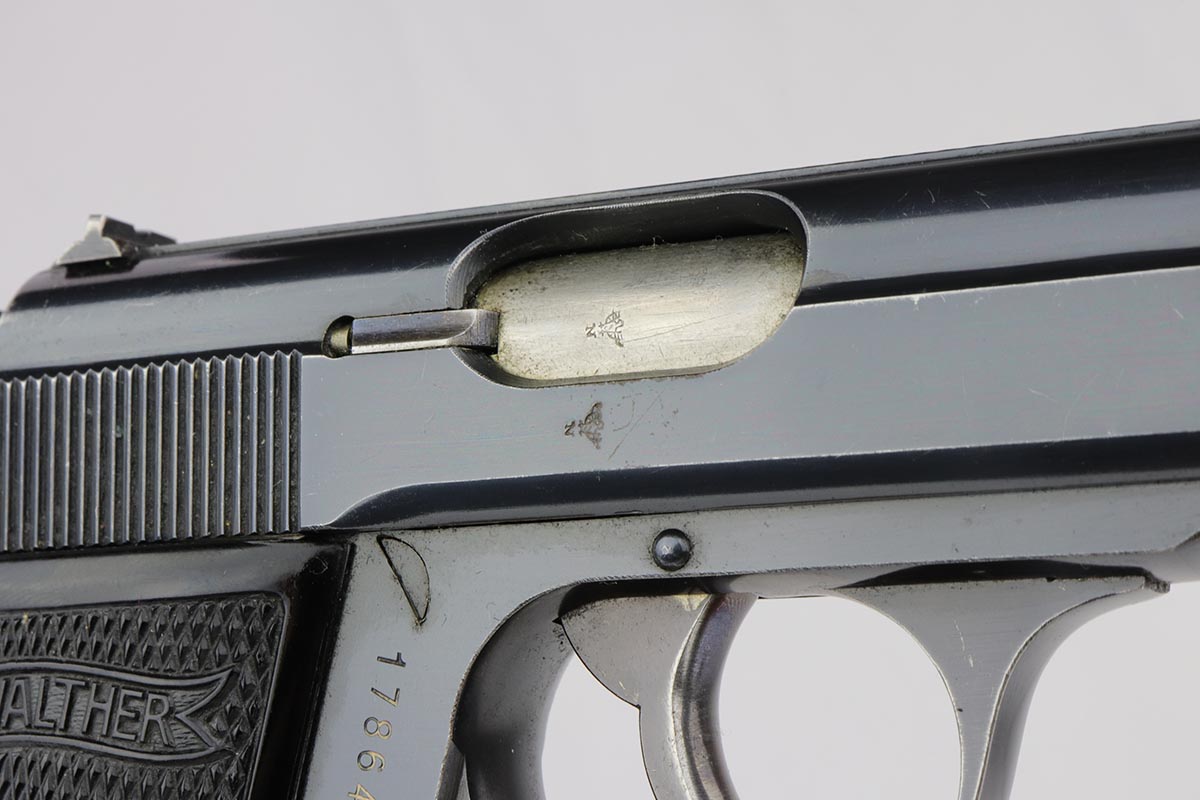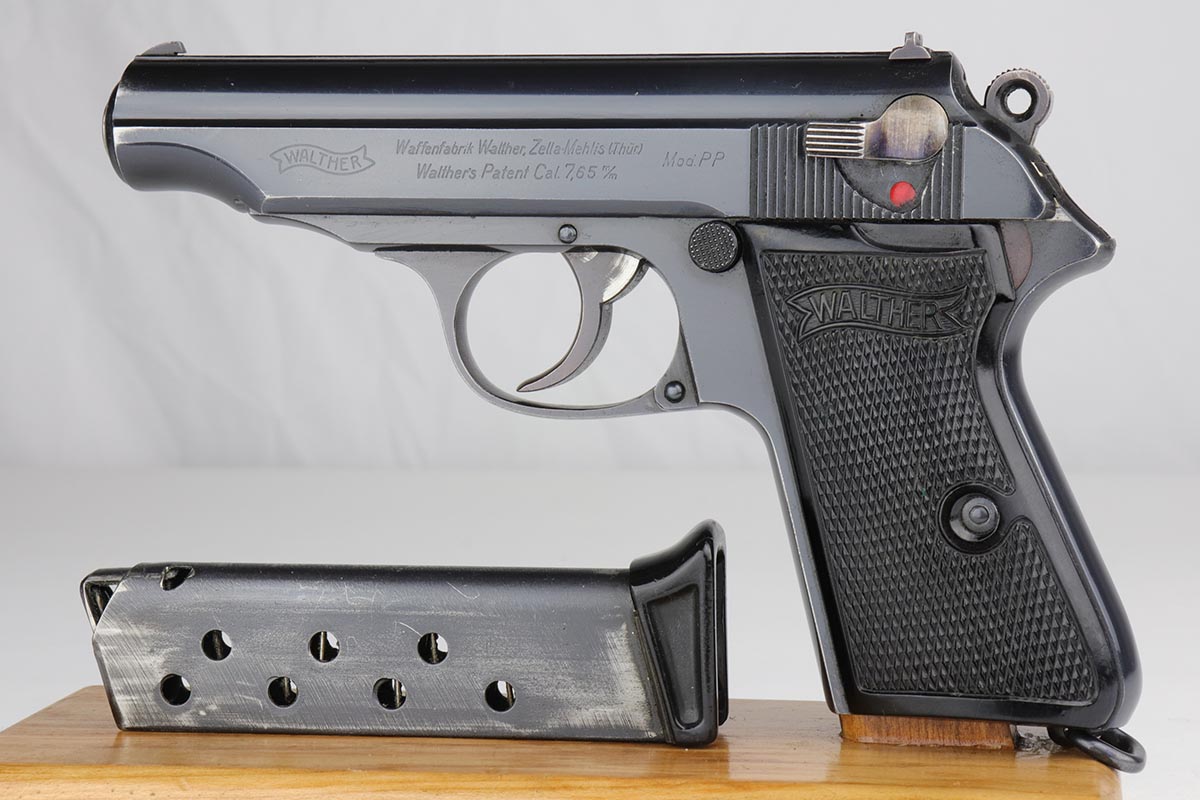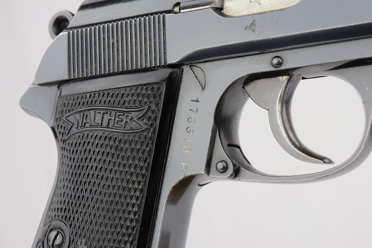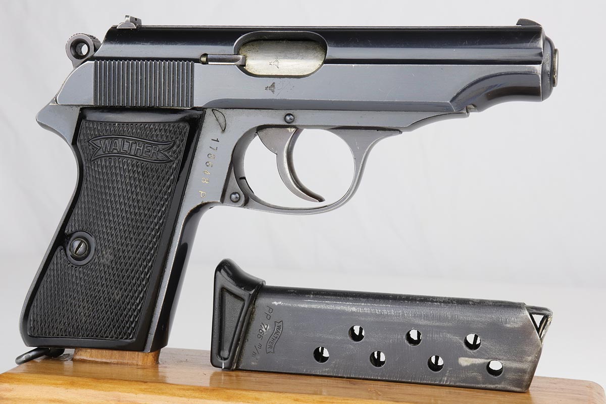 5/31/19 – This is a beautiful Walther PP that was produced in 1940 for the German commercial market. All matching and original with 98% high-polish blue, showing minor muzzle wear and slight thinning on the straps. Terrific bore, grips and finger extension magazine. Factory lanyard ring on frame.