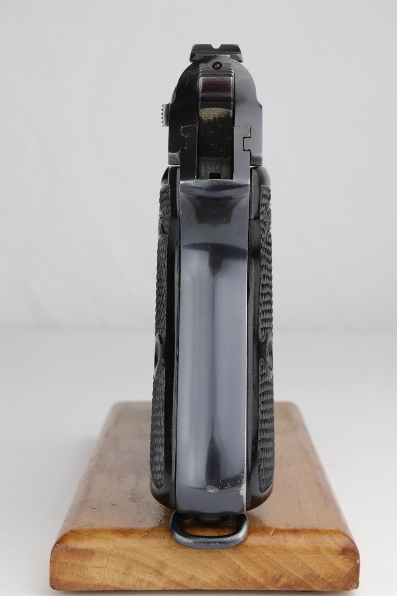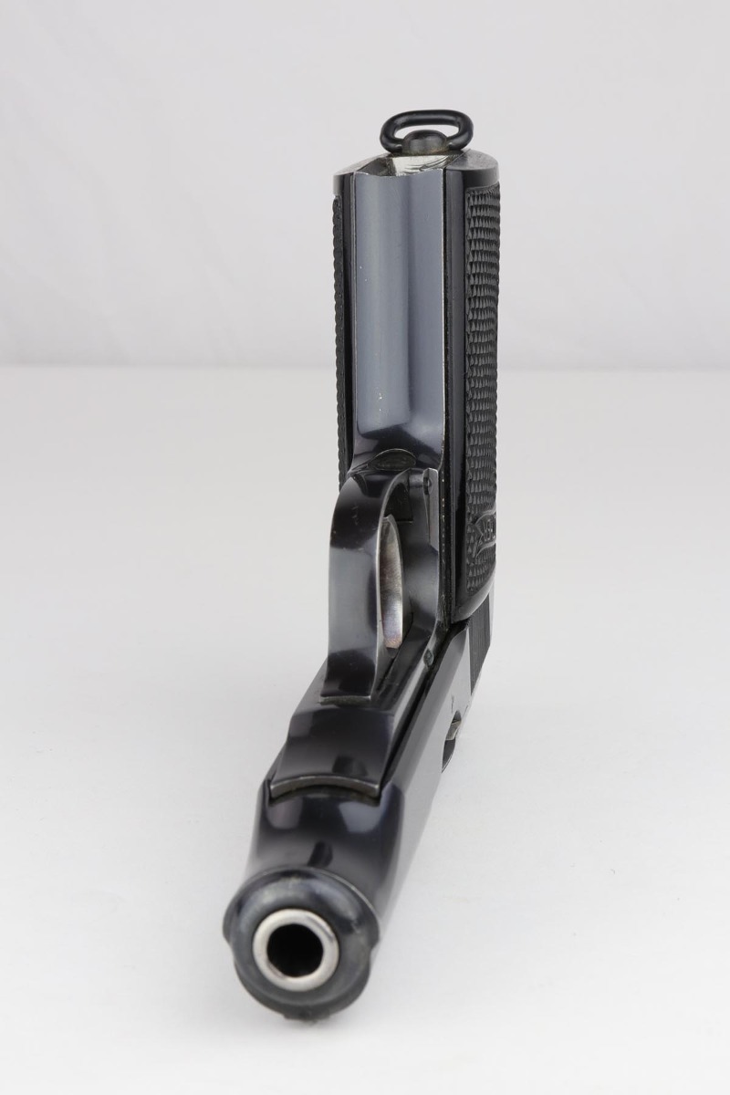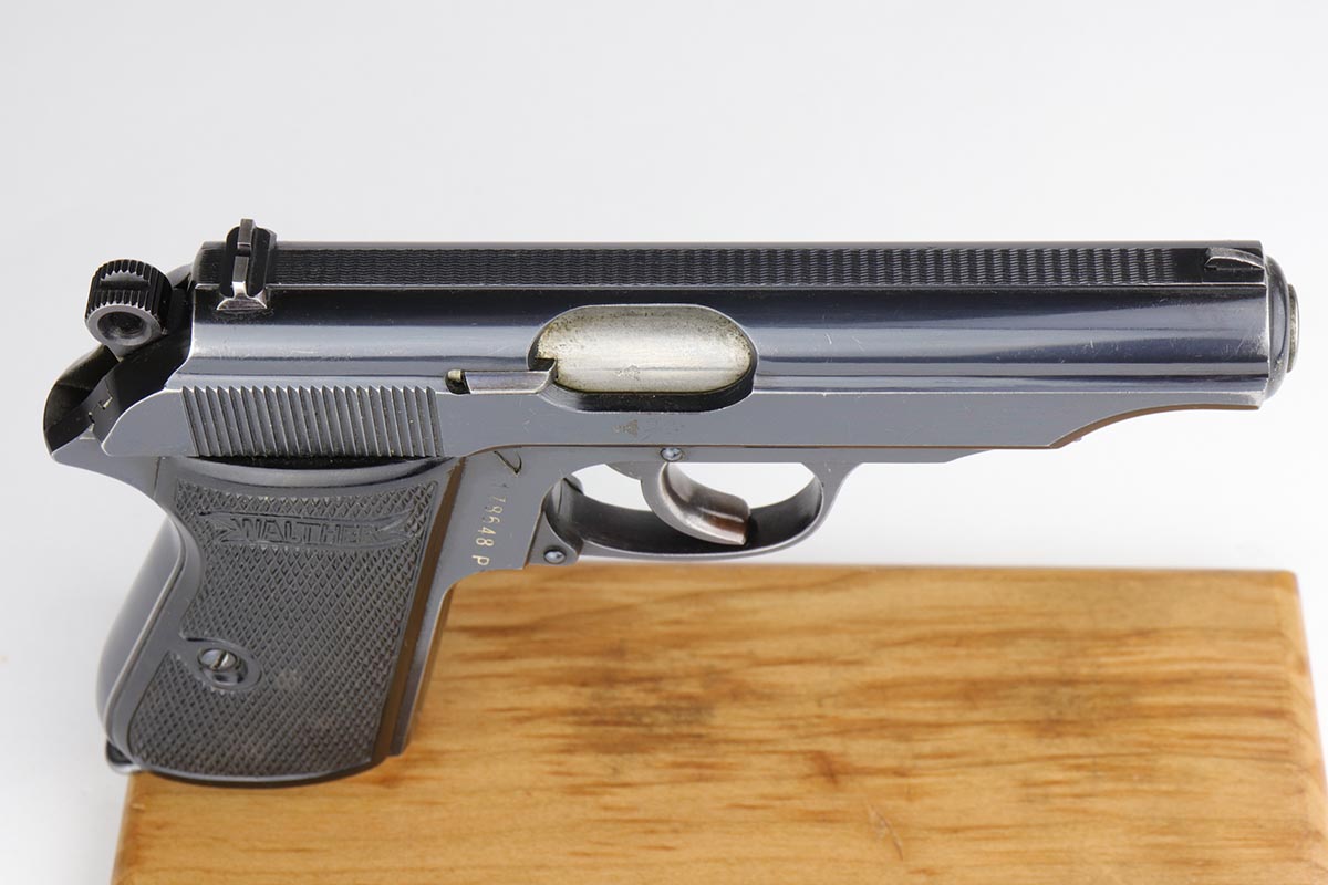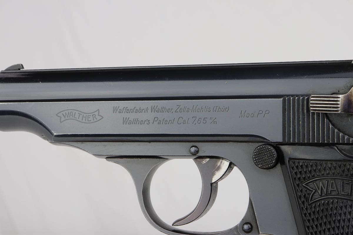 5/31/19 – This is a beautiful Walther PP that was produced in 1940 for the German commercial market. All matching and original with 98% high-polish blue, showing minor muzzle wear and slight thinning on the straps. Terrific bore, grips and finger extension magazine. Factory lanyard ring on frame.